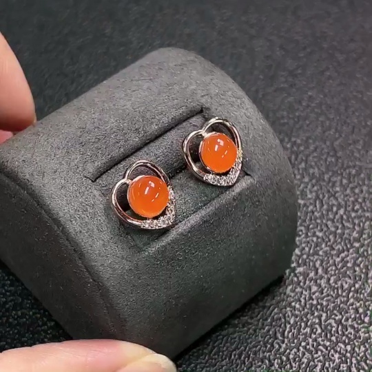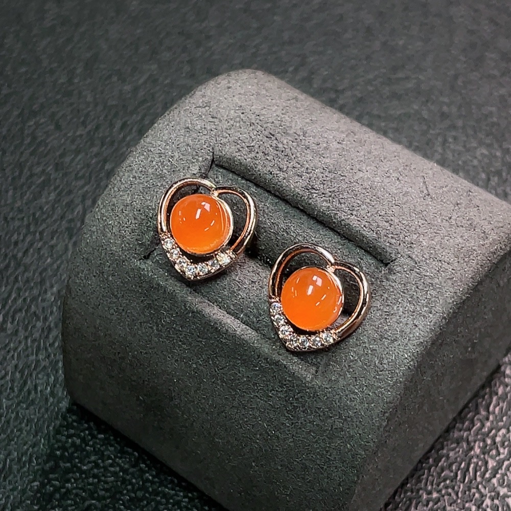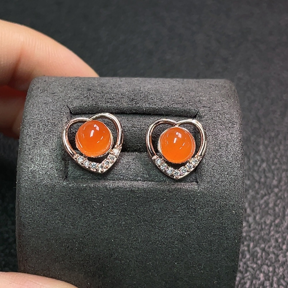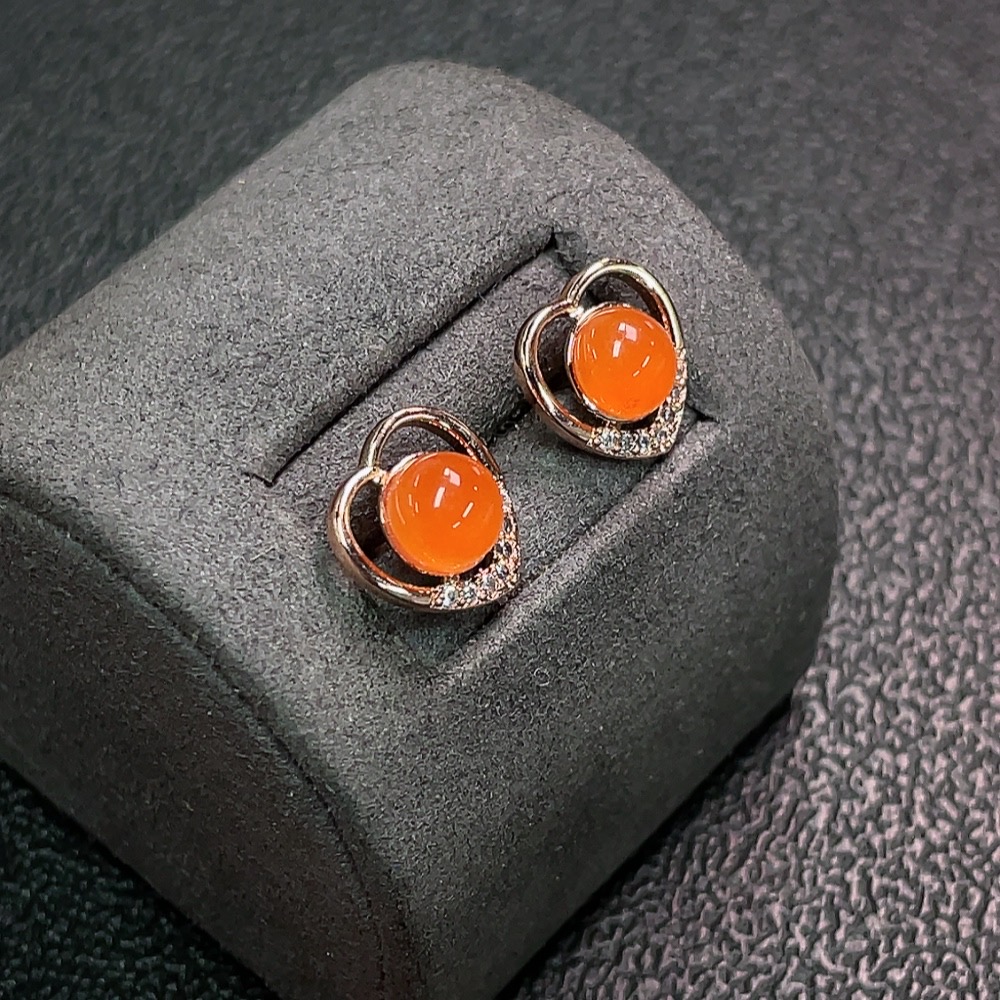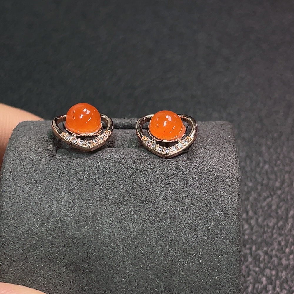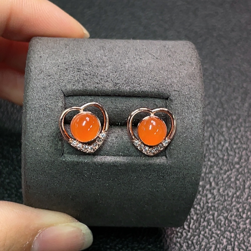 South Red Agate Earrings Non-Gold Total Weight Approx. 1.82g Size about 5.8mm