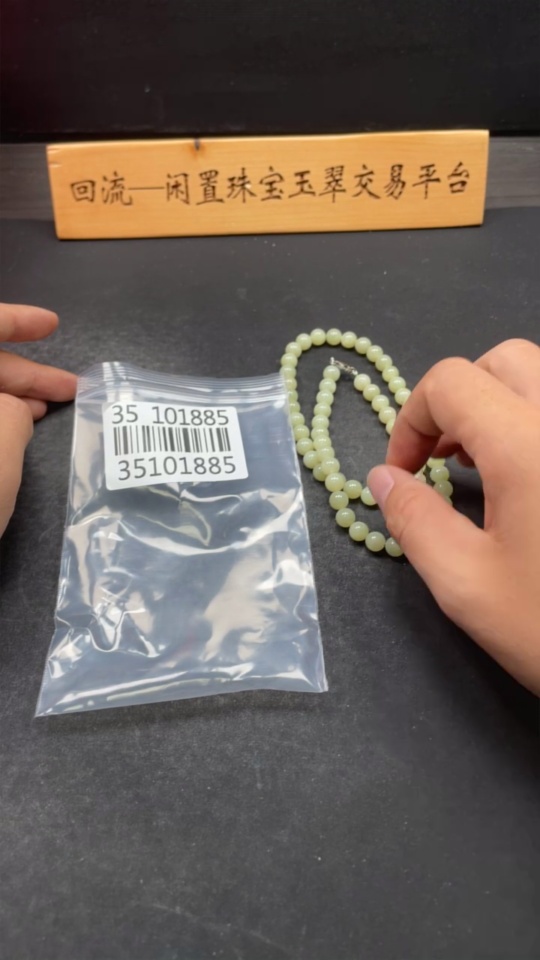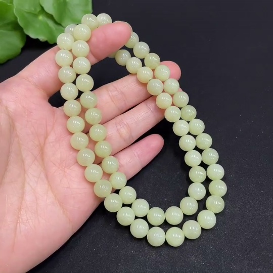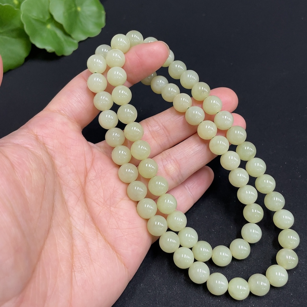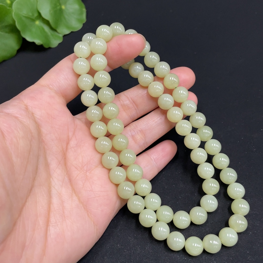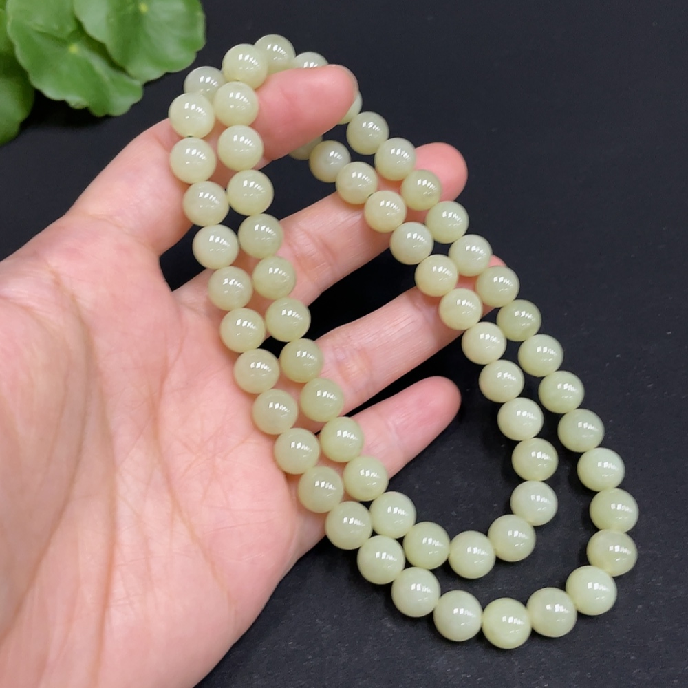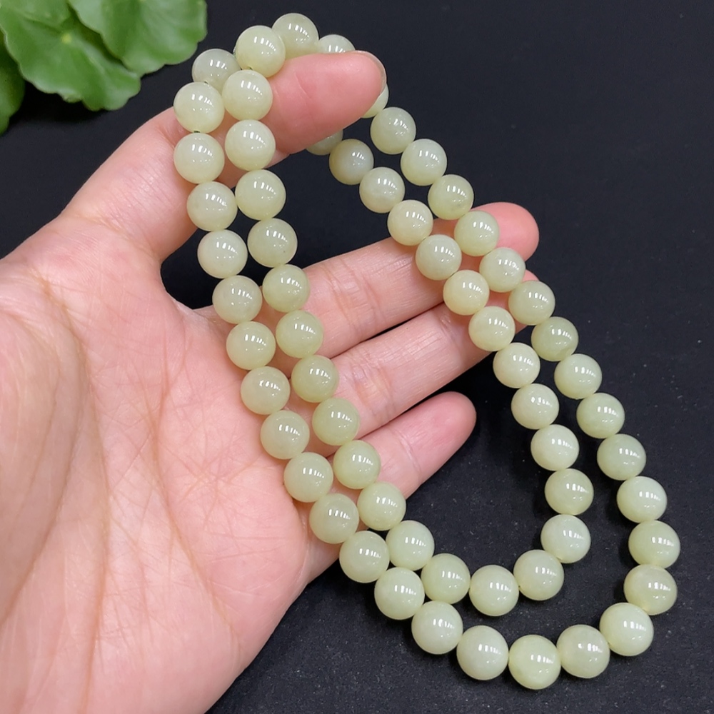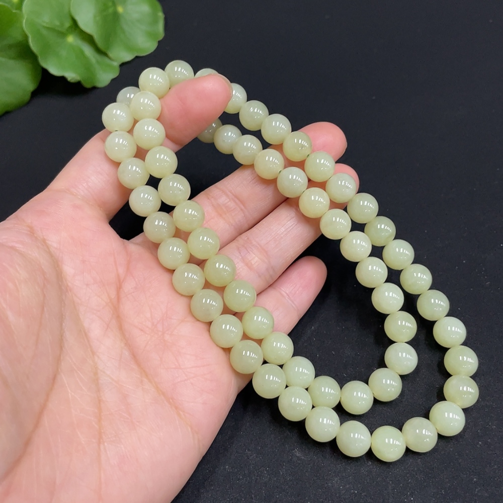 Hetian Jade Bead Necklace, approx. 8mm, non-gold inlaid, total weight approx. 48.4g
