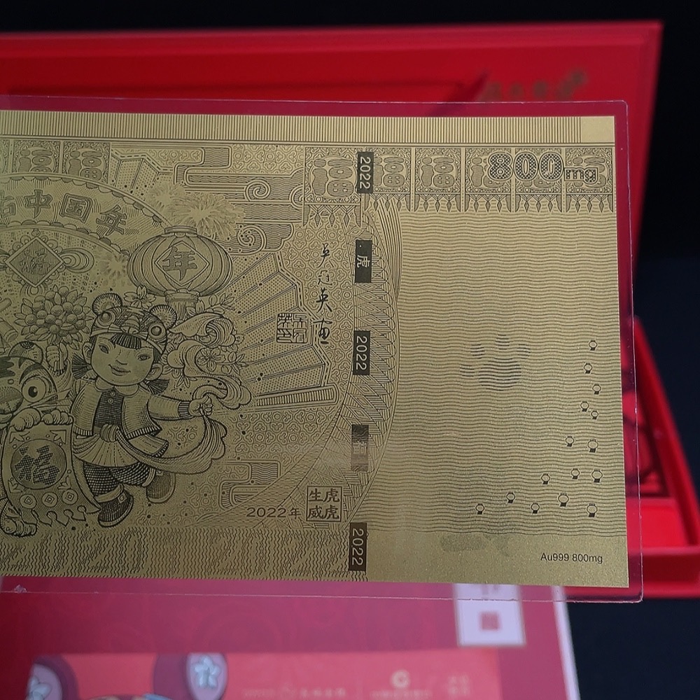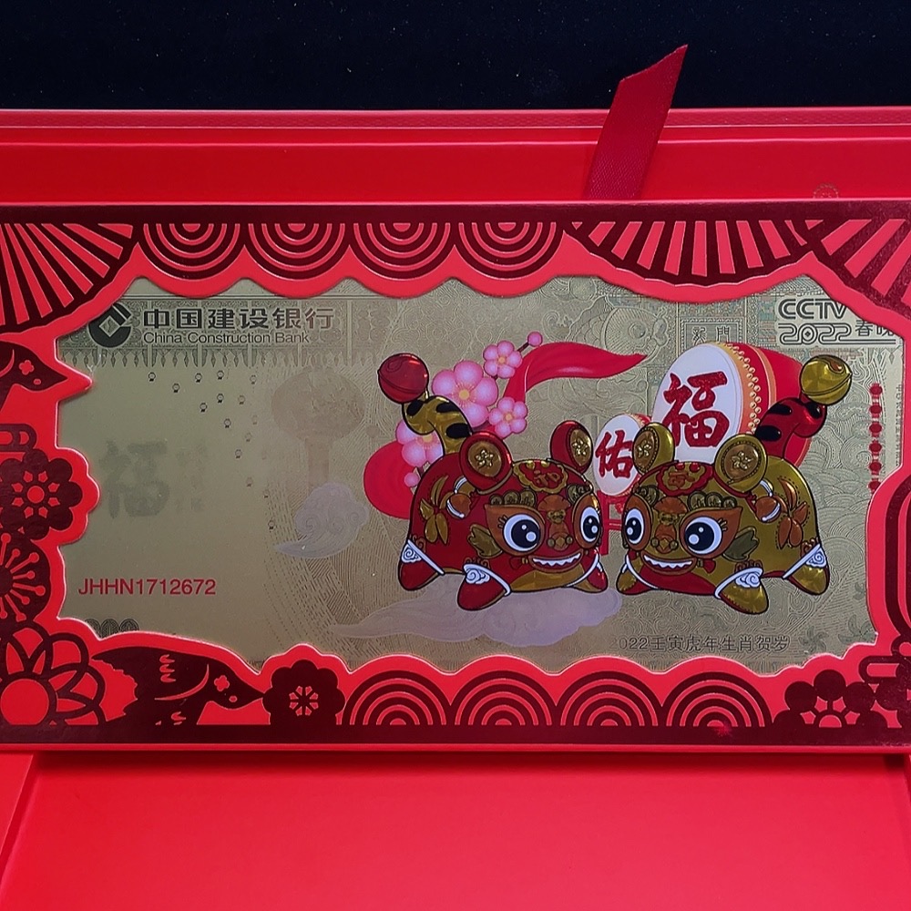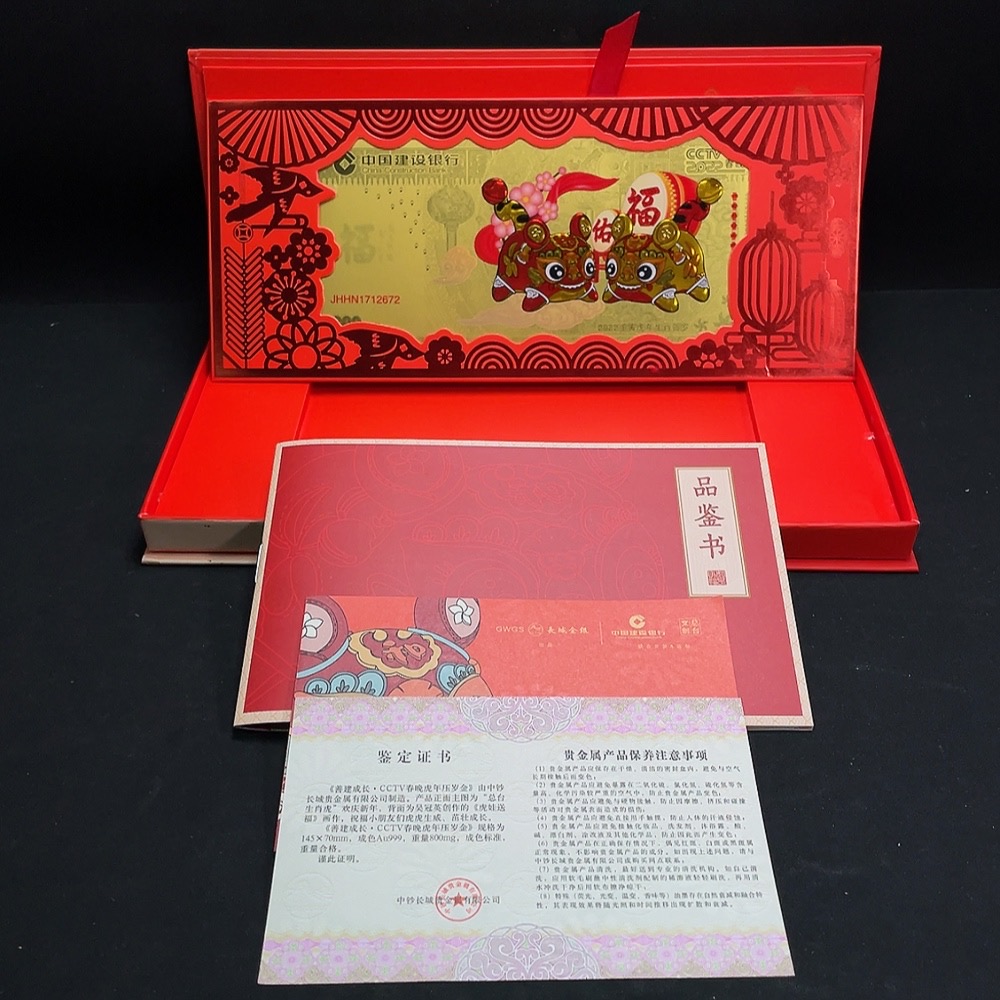 2022 CCB Year of the Tiger New Year Gold Note 0.8g Pure Gold 999 Fine Quality Exquisite Gift Box