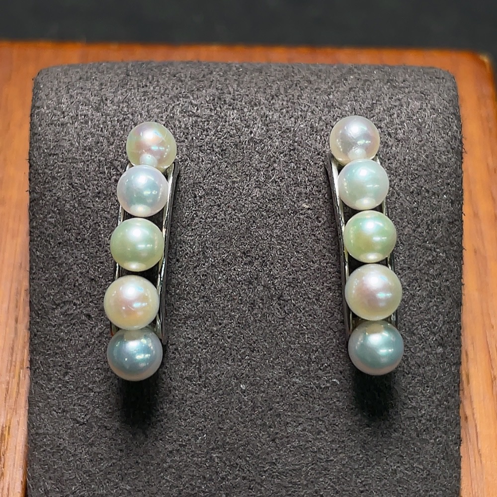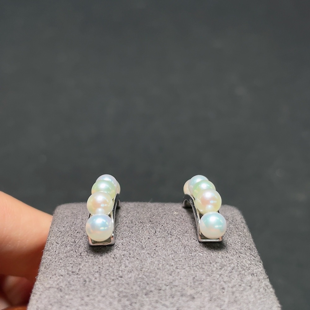 Seawater Pearl Earrings, Color Origin Undetermined, Non-Gold, Total Weight Approx. 2.11g, Size Around 3.9mm