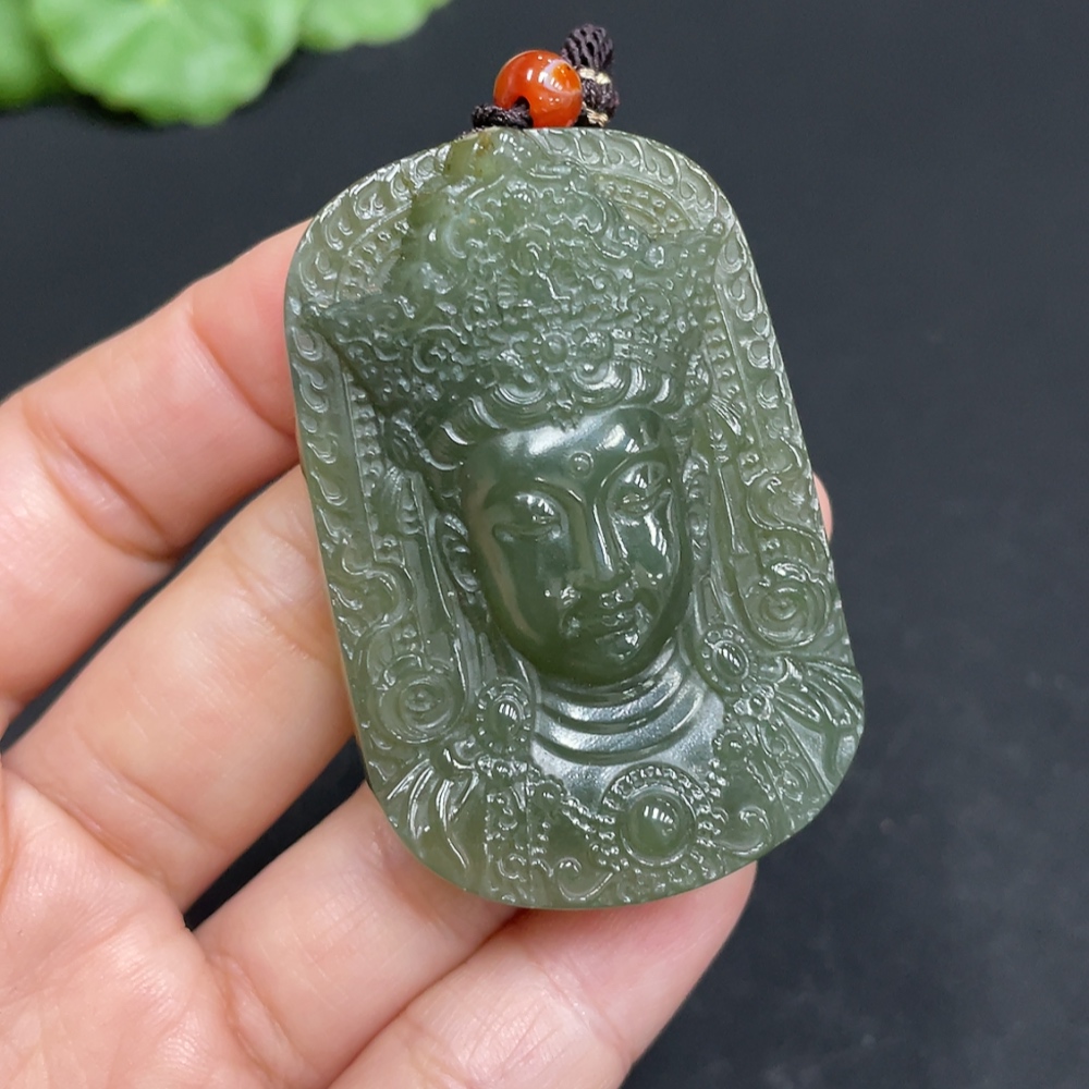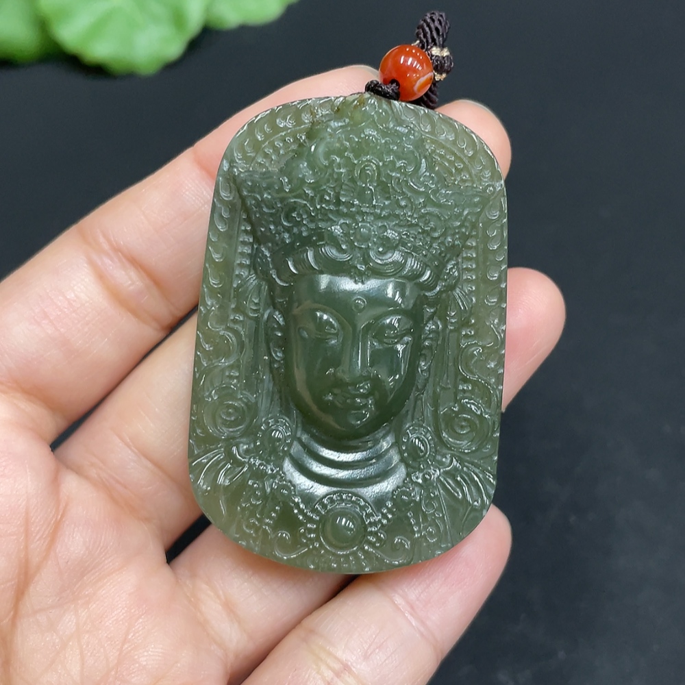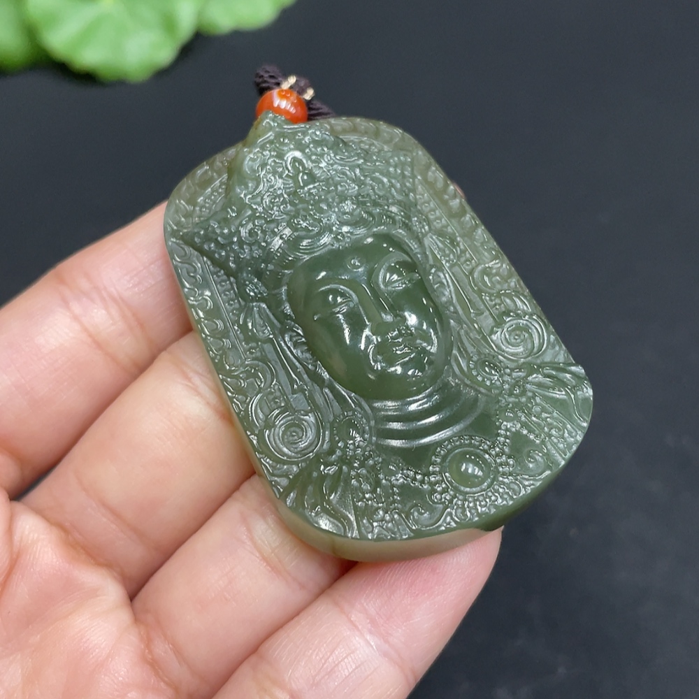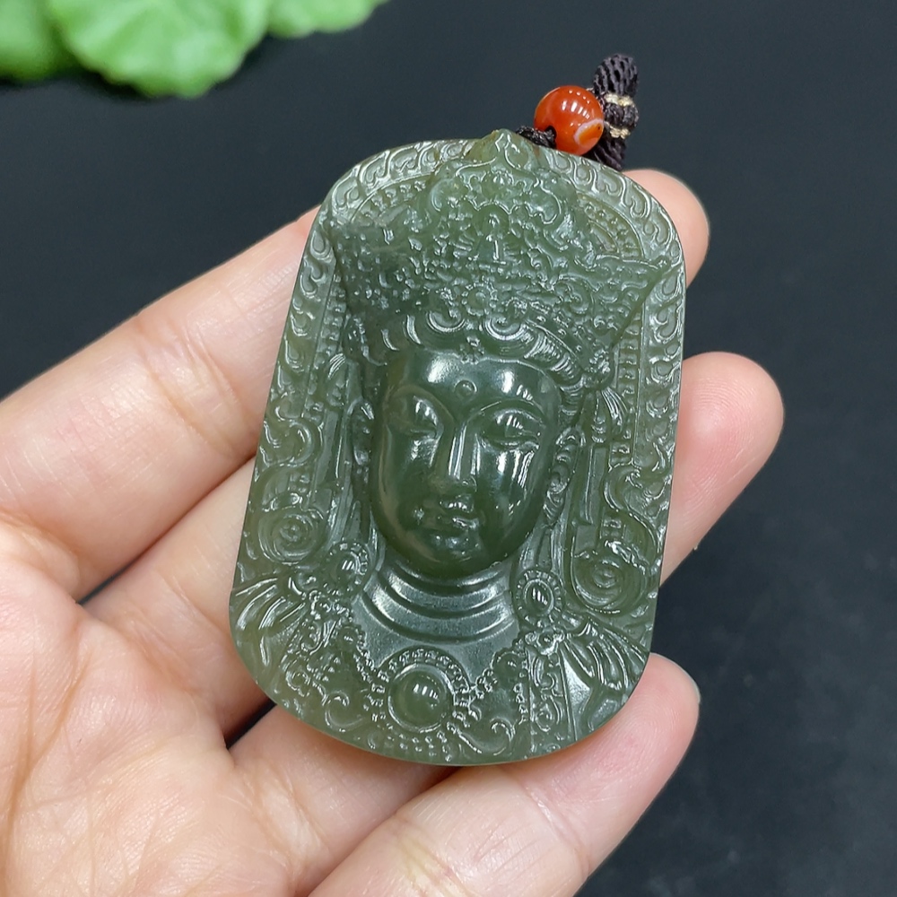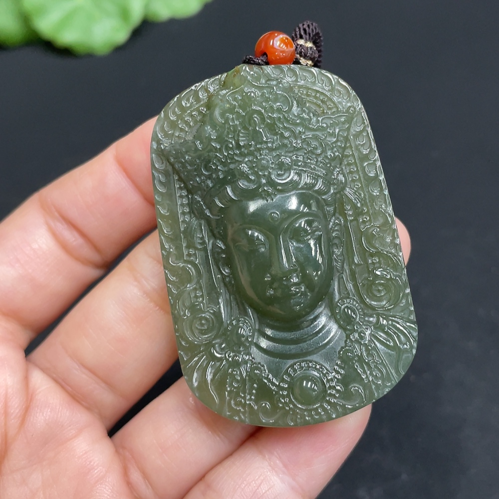 Hetian Jade Pendant Guanyin Total Weight Approx. (Including Rope) 36.5g