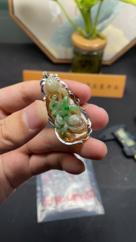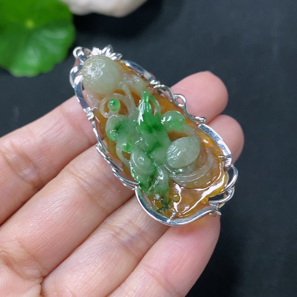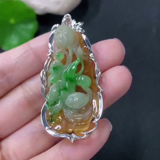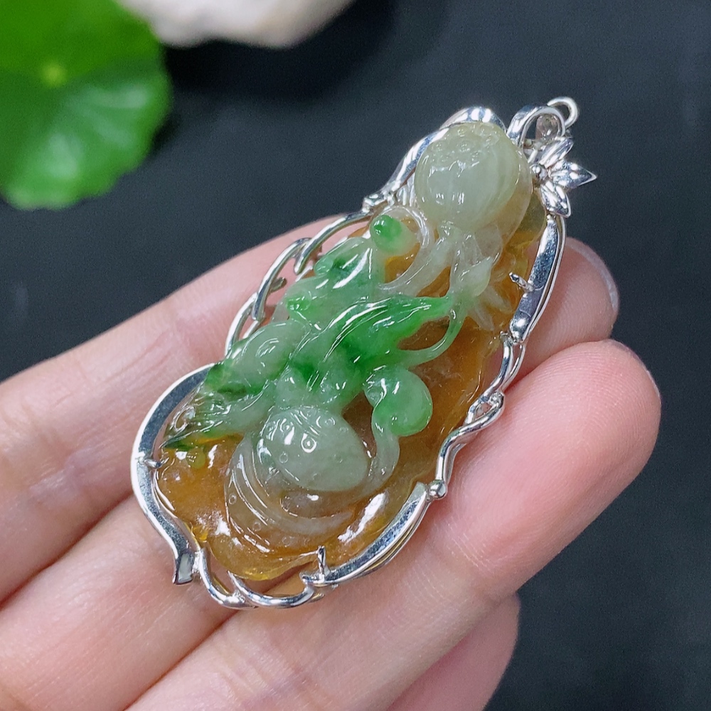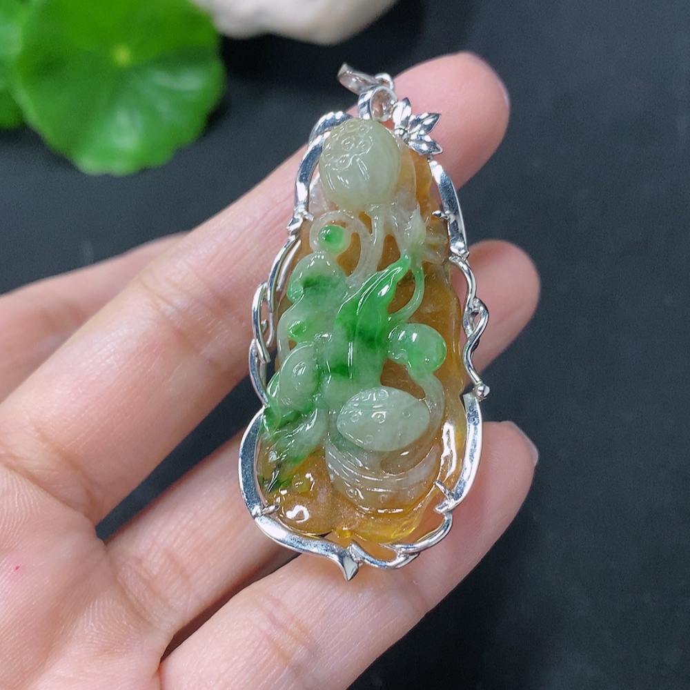 Jadeite inlaid lotus pendant with 18k clasp, main body Au68%, total weight approximately 10.92g