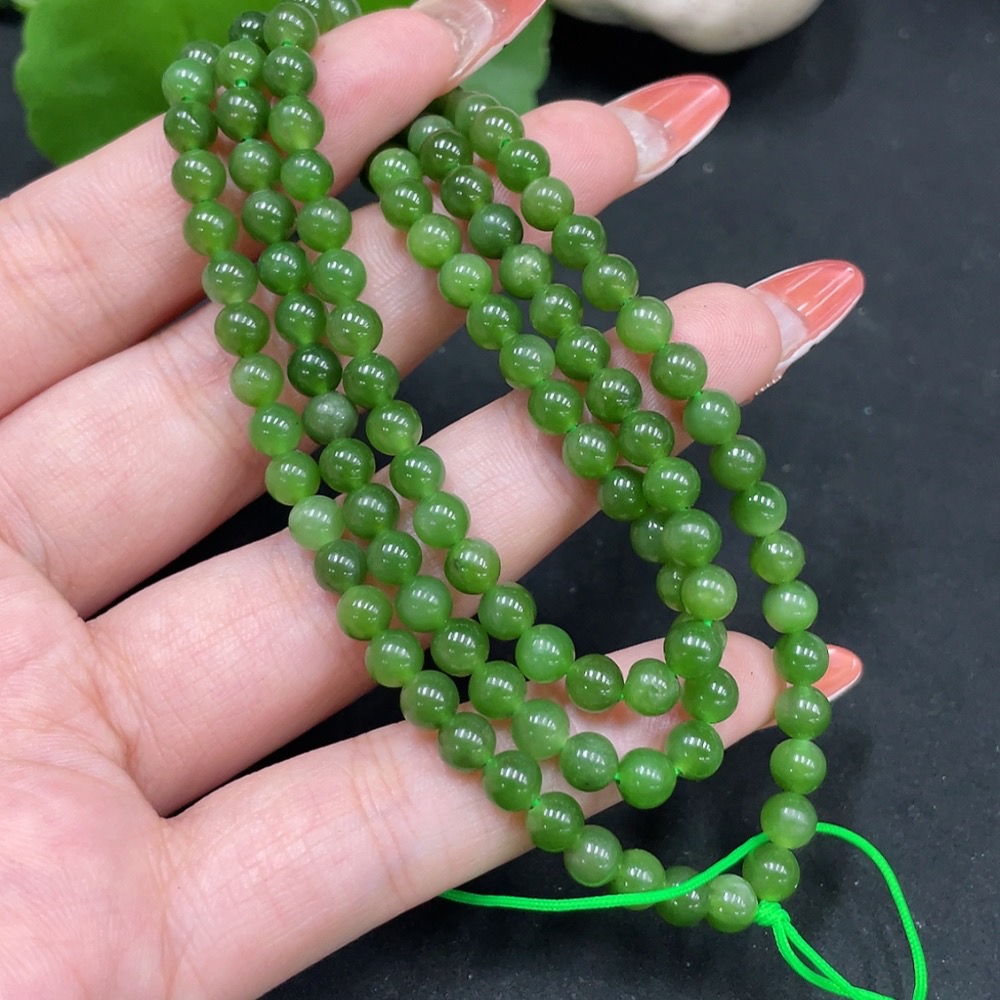 Hetian Jade Beaded Necklace, approx. 4.8mm, total weight approx. 22.1g