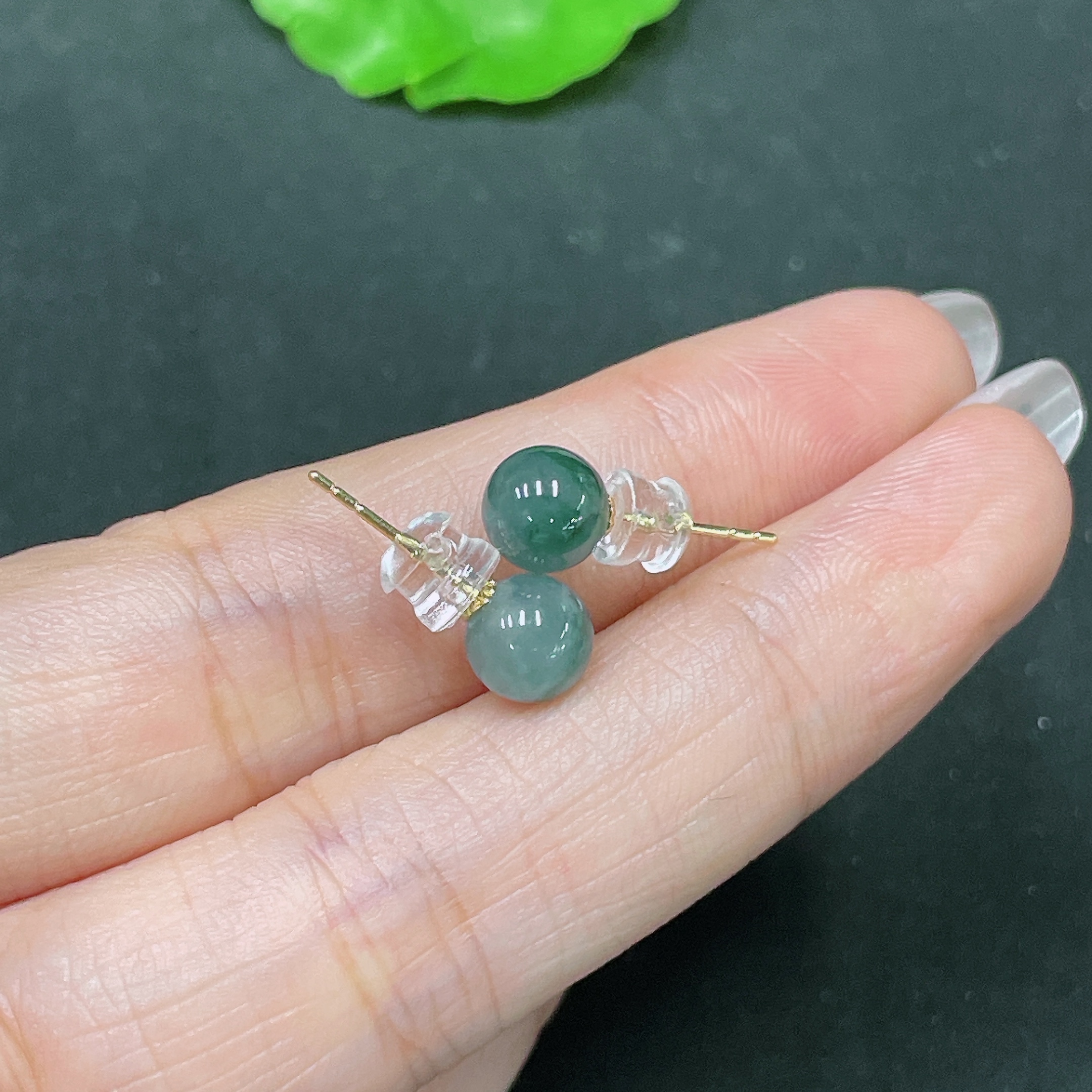 Jadeite Inlaid Earrings 18k Gold Inlaid Including Ear Caps Total Weight Approximately 1.23g