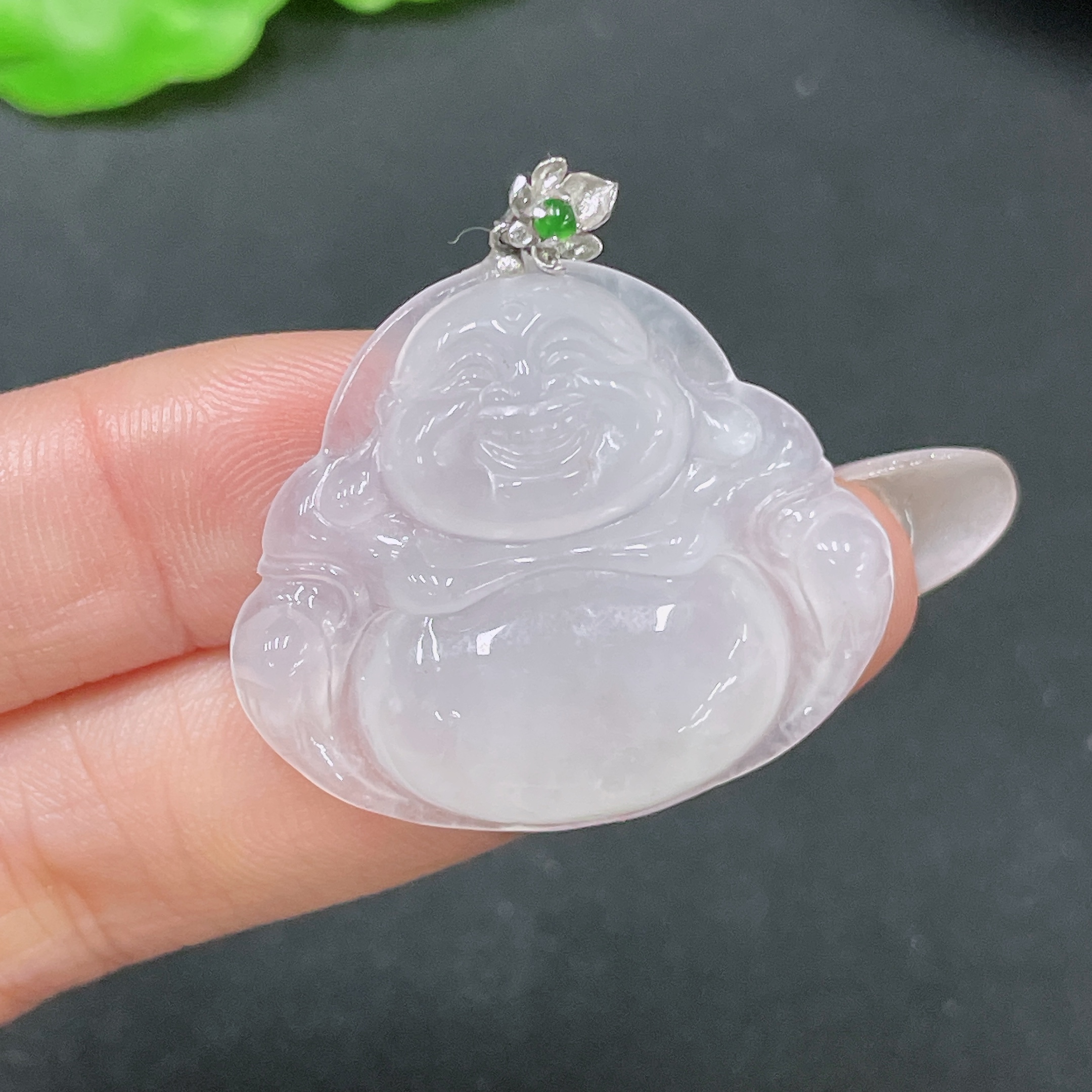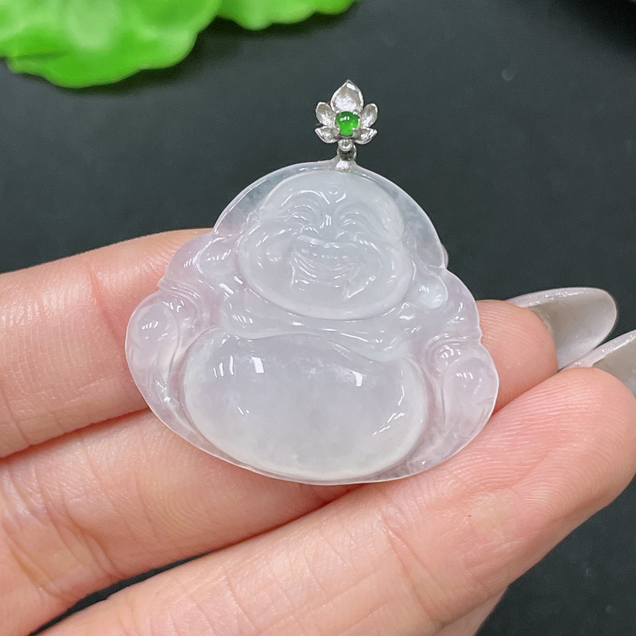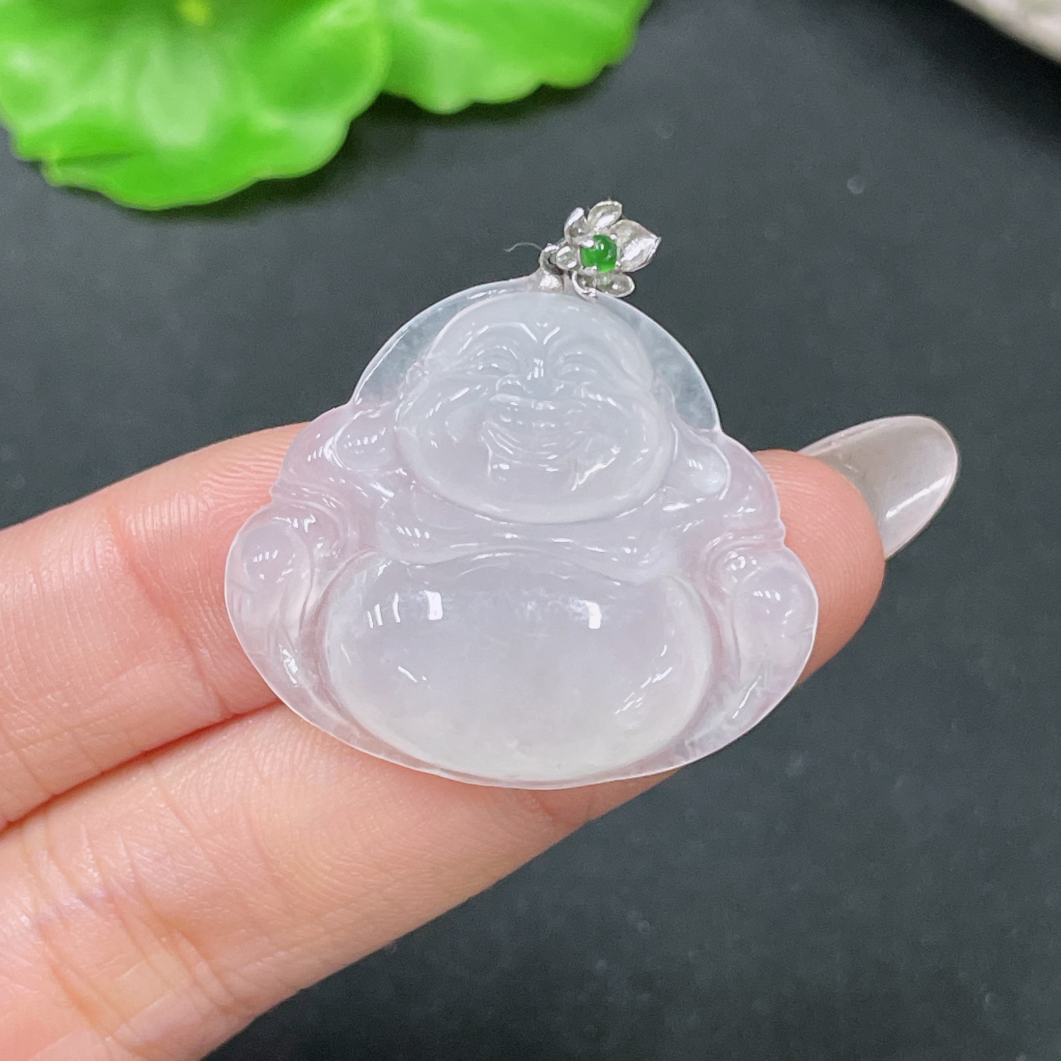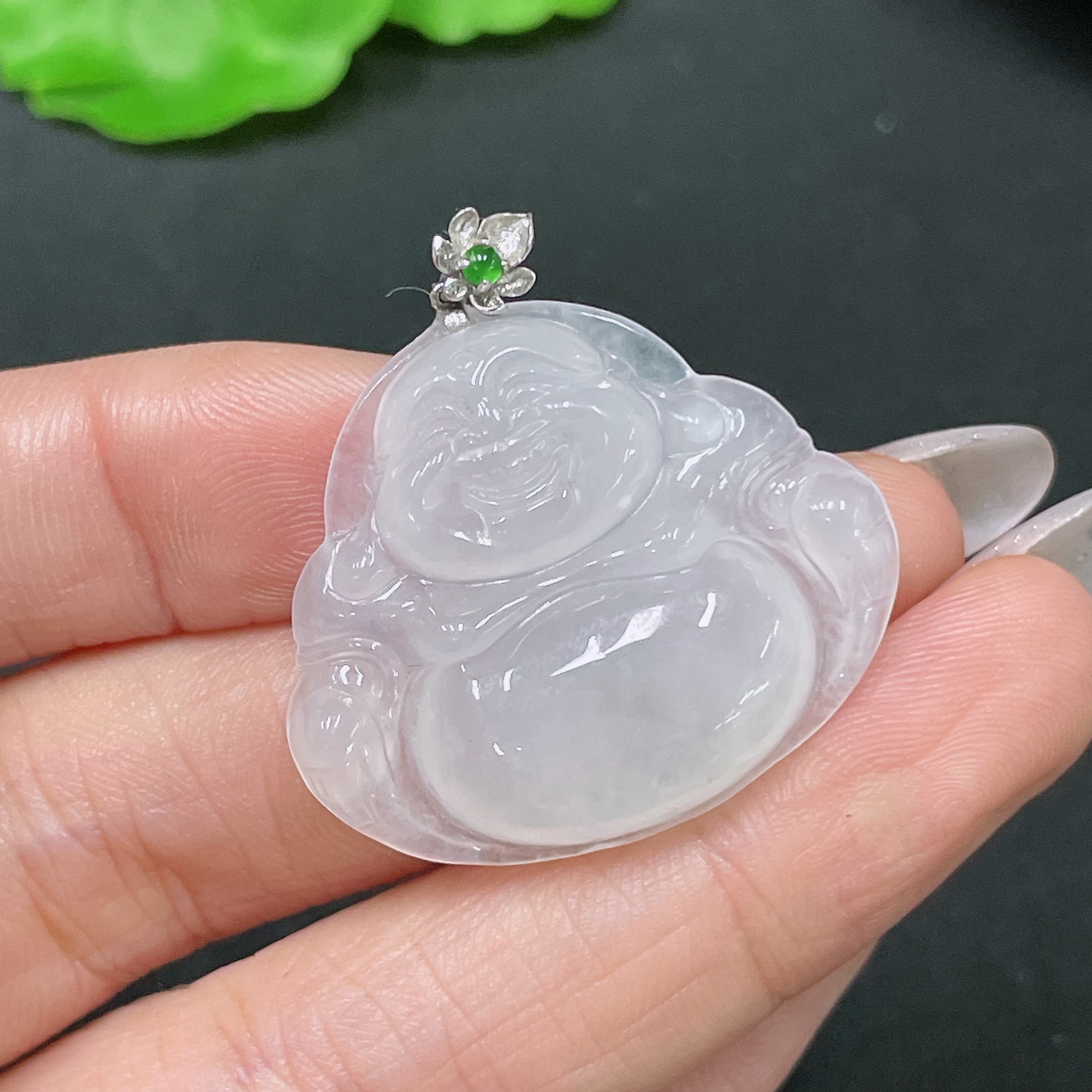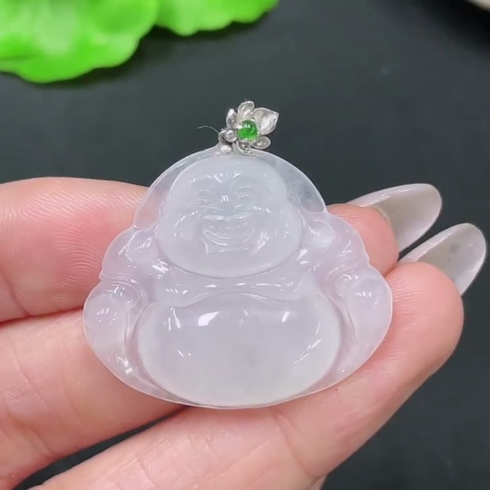Jadeite Pendant Buddha with 18k Clasp Total Weight Approx. 7.58g