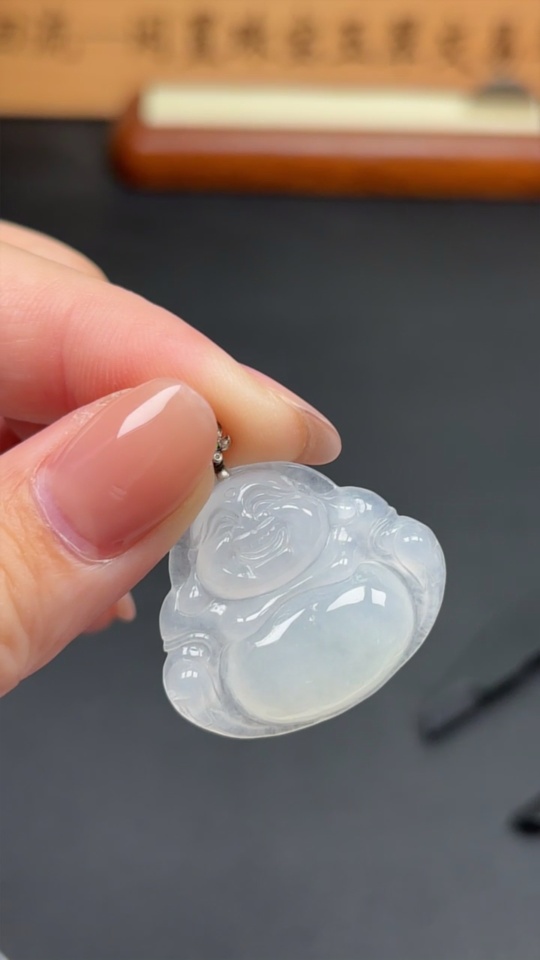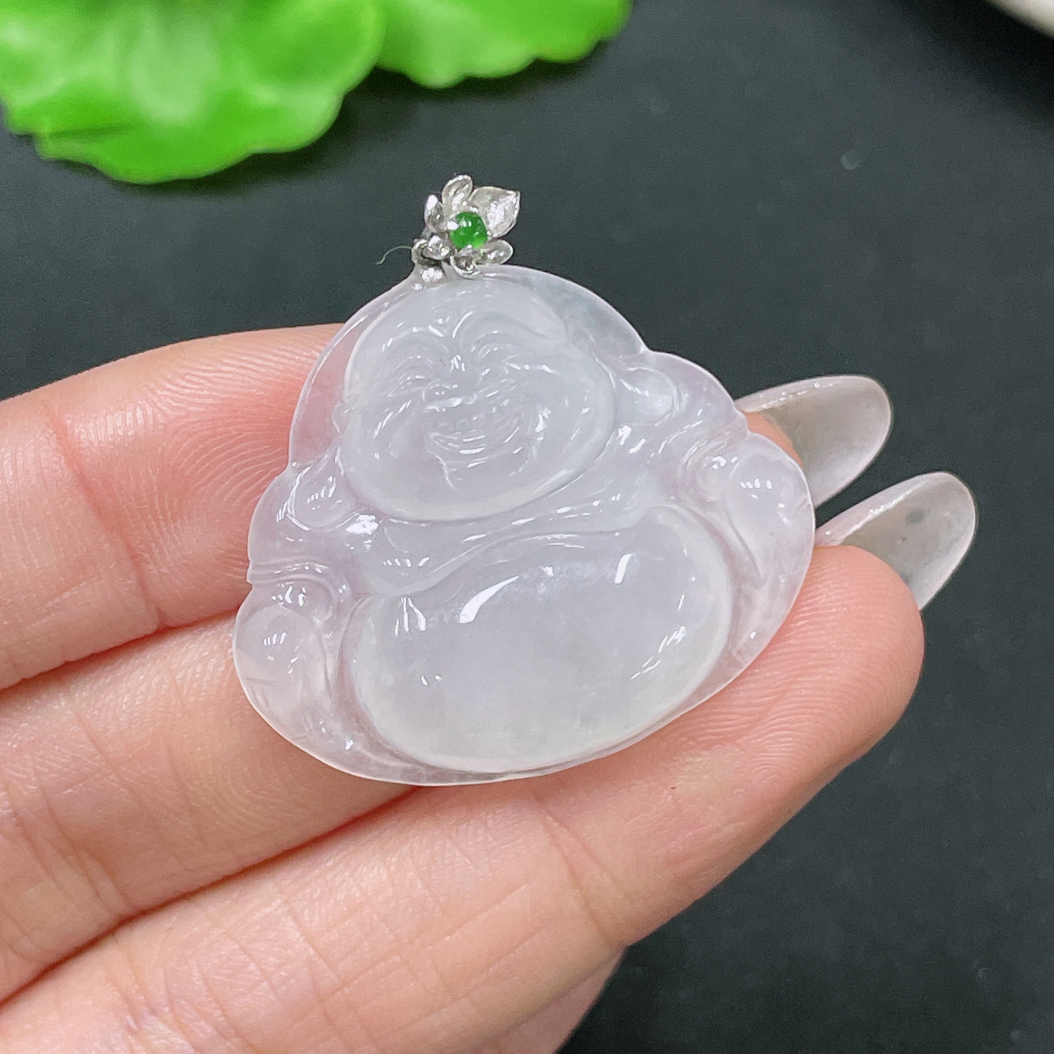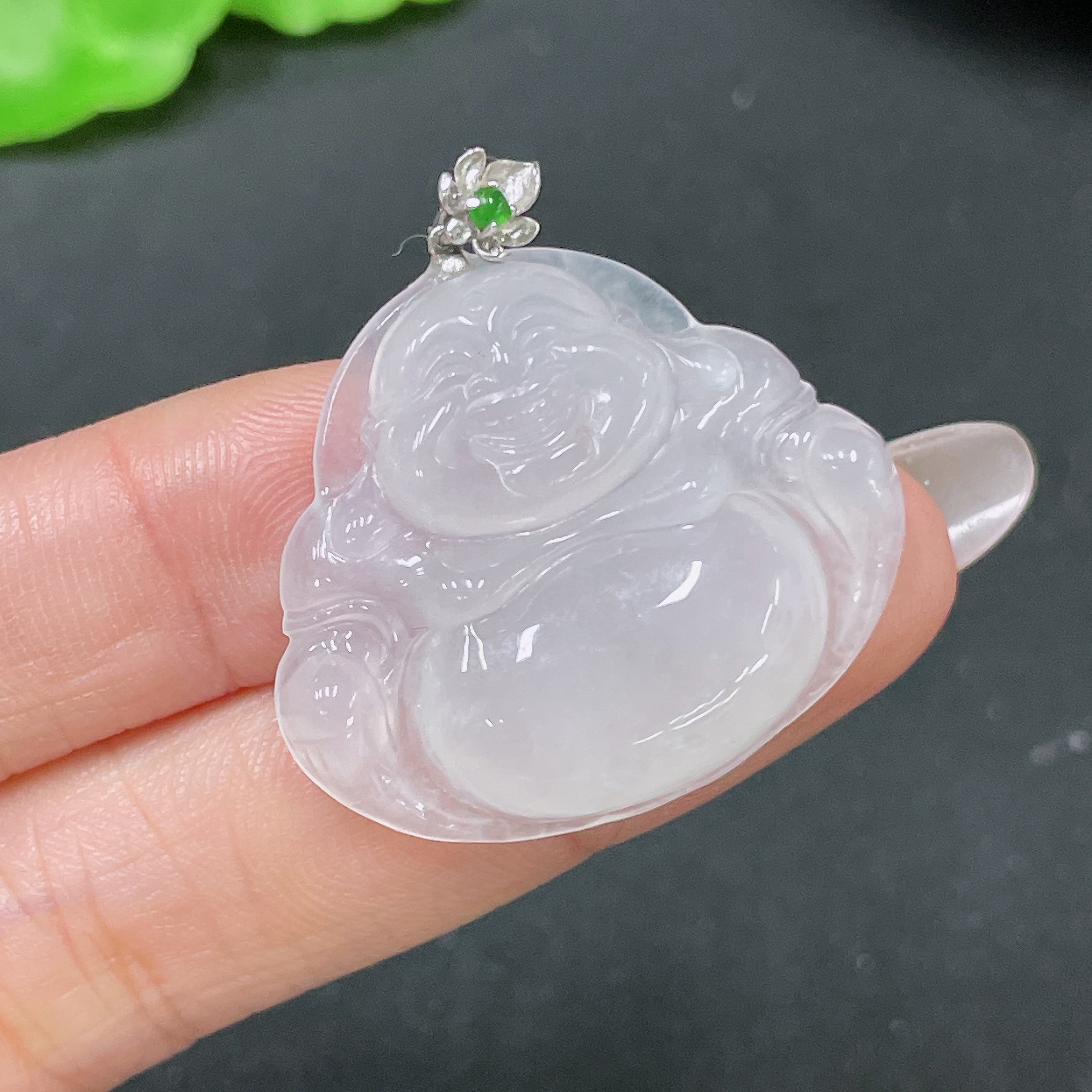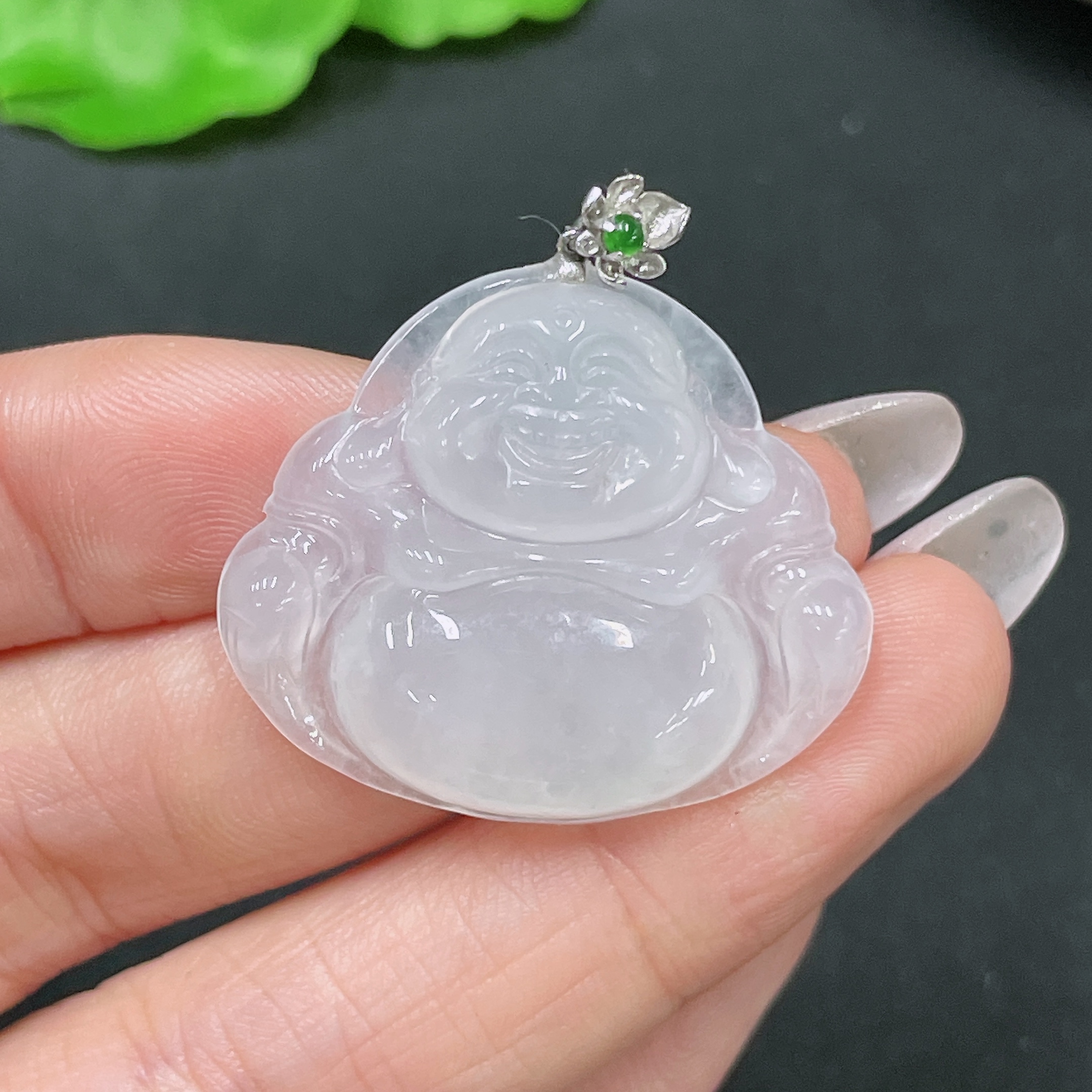 Jadeite Pendant Buddha with 18k Clasp Total Weight Approx. 7.58g