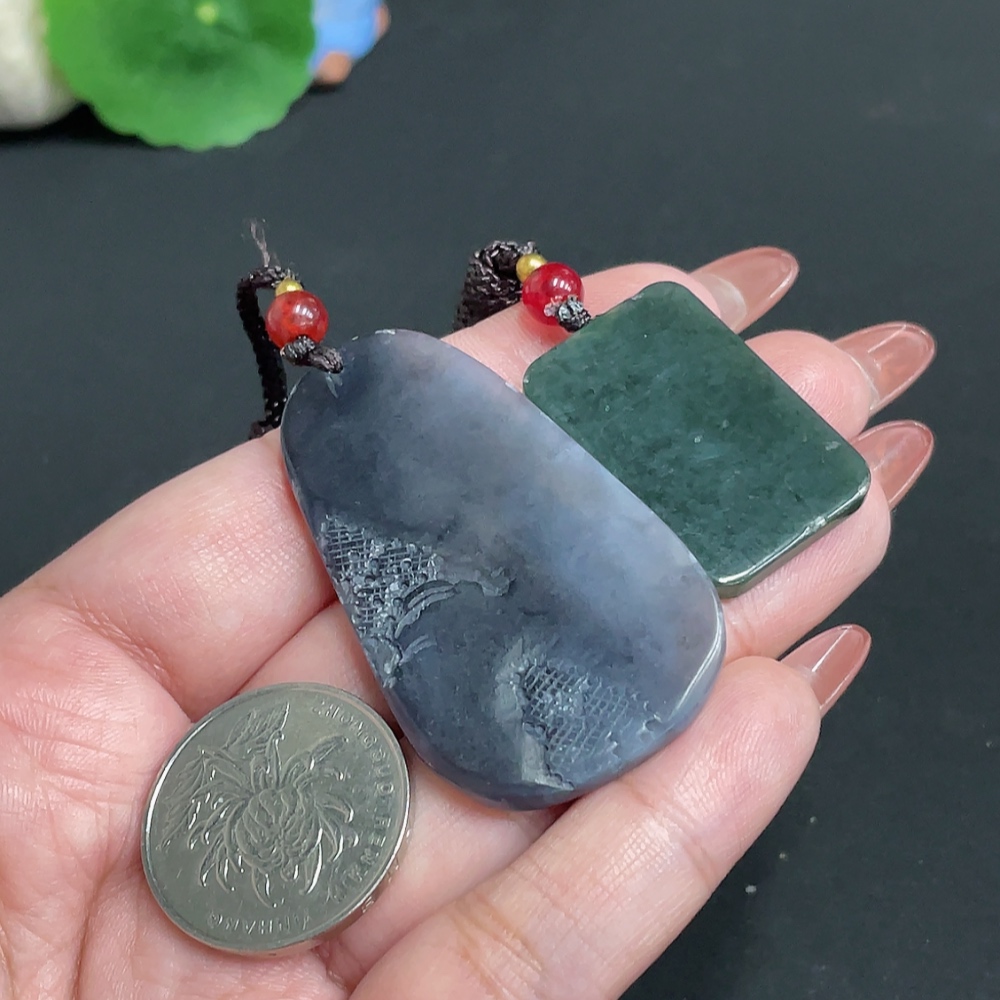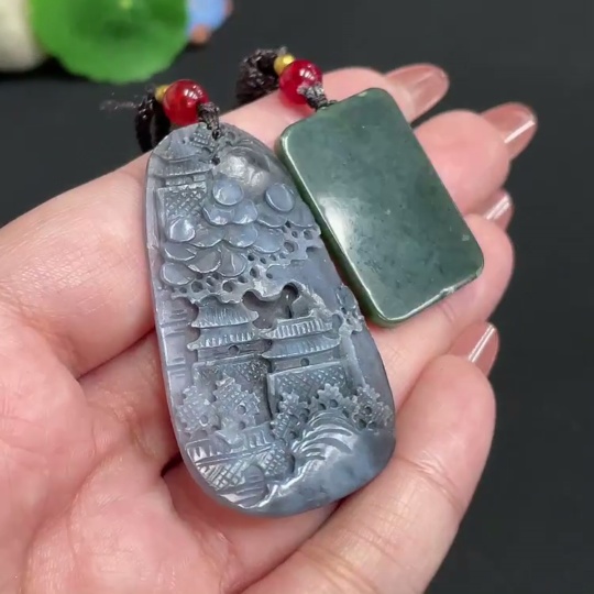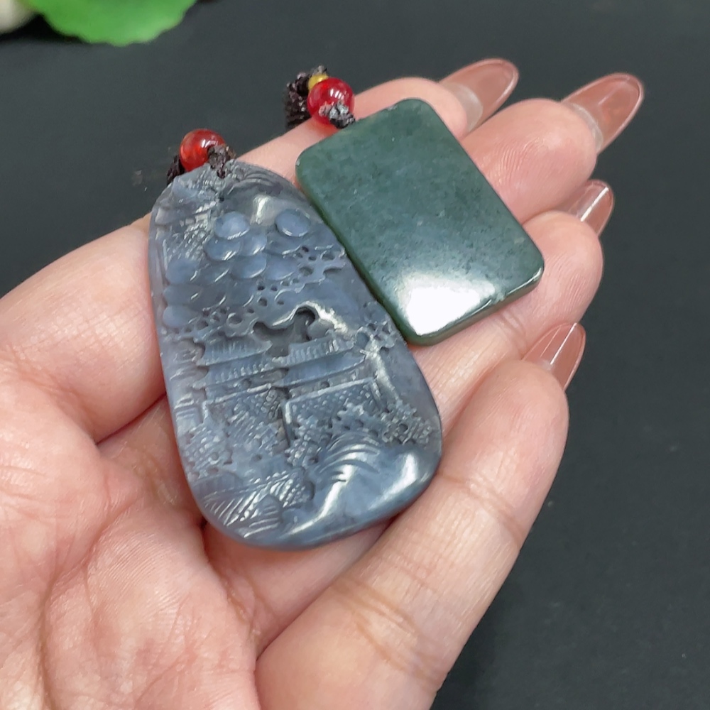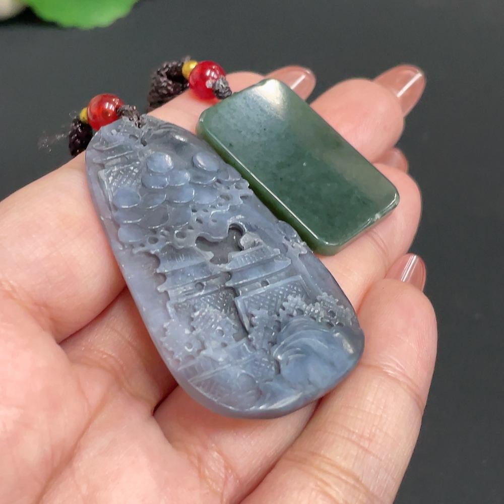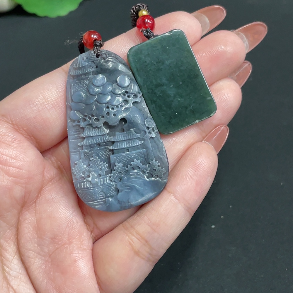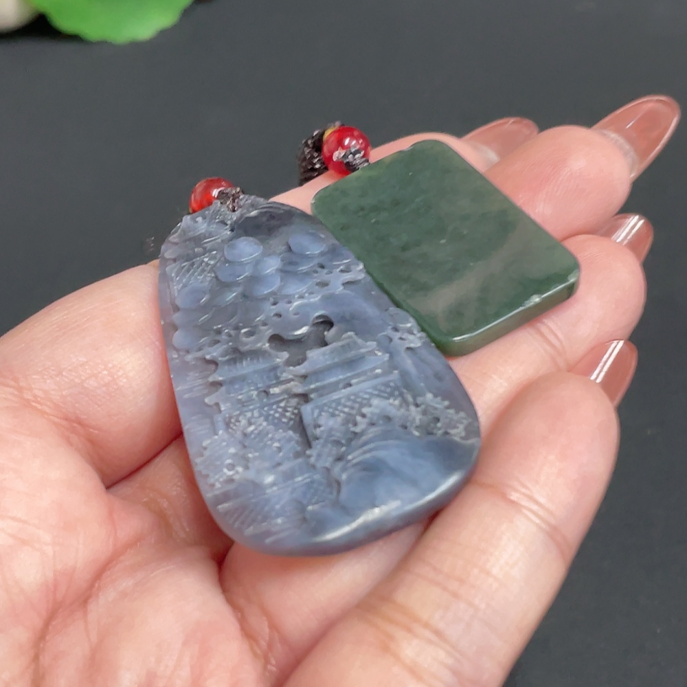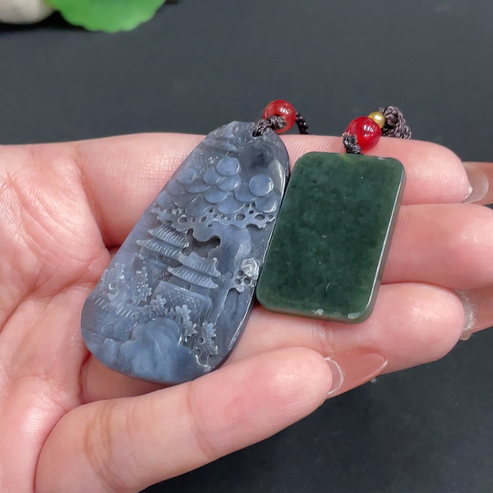 Hetian Jade Pendant Landscape Plain Pendant Total weight approx. [including rope] 20.6g