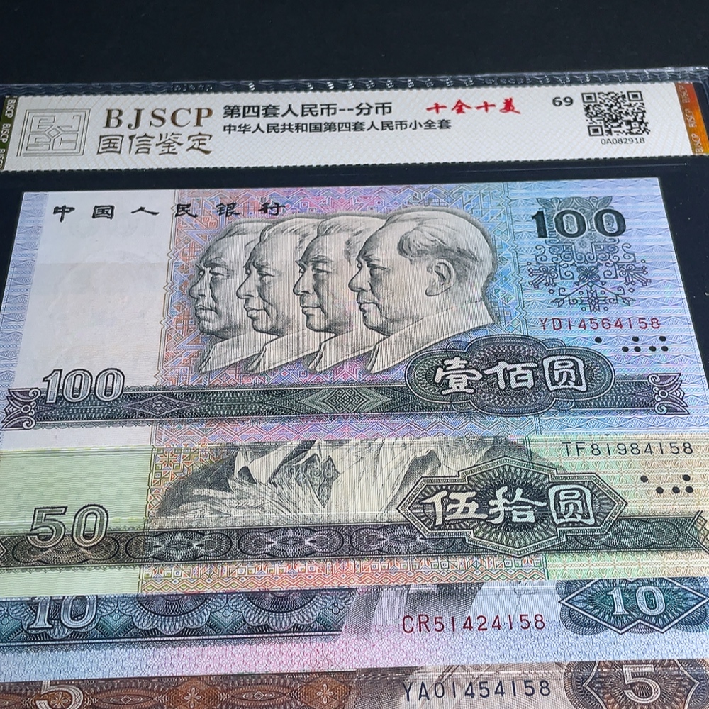 The Fourth Set of RMB 10-Piece Small Complete Set with Matching Last Four Digits Graded Collection Banknotes
