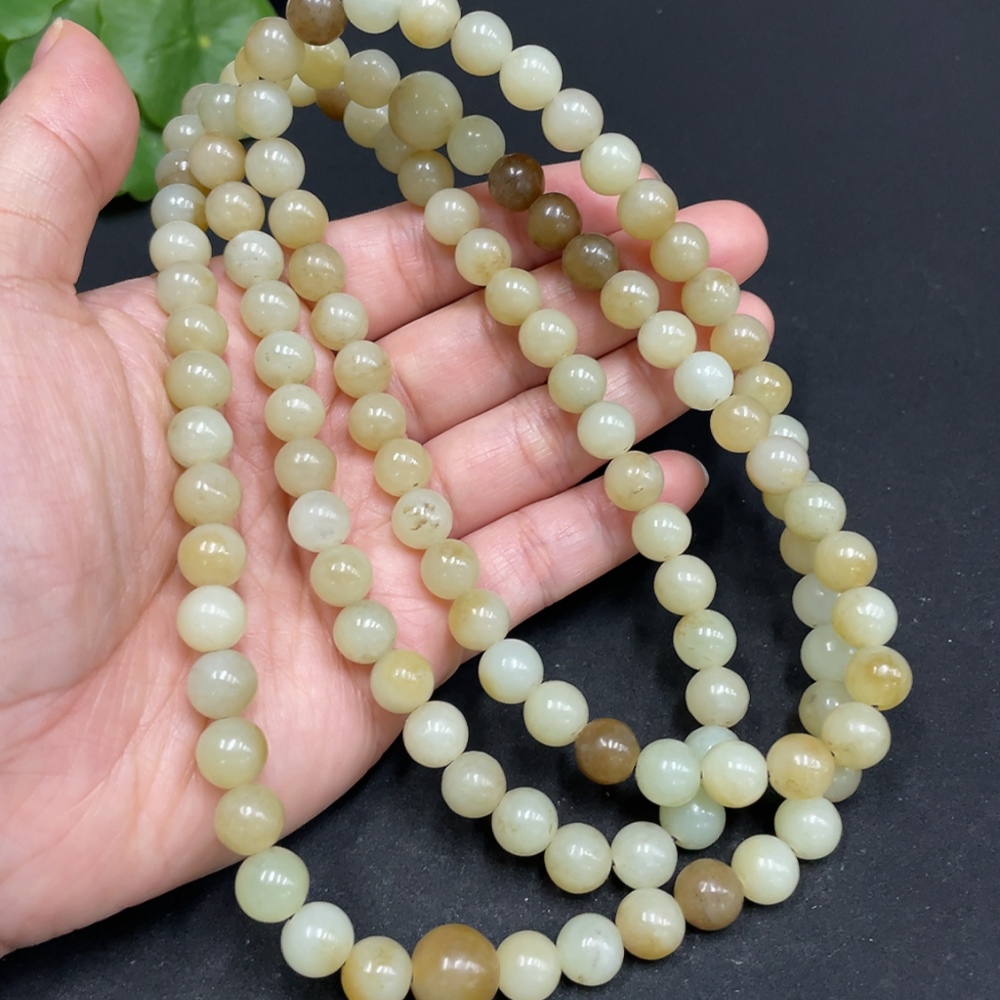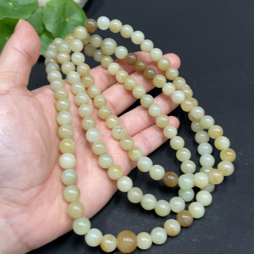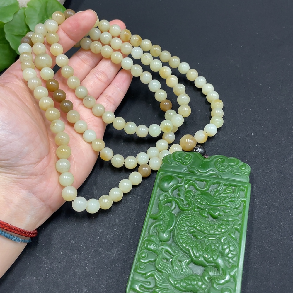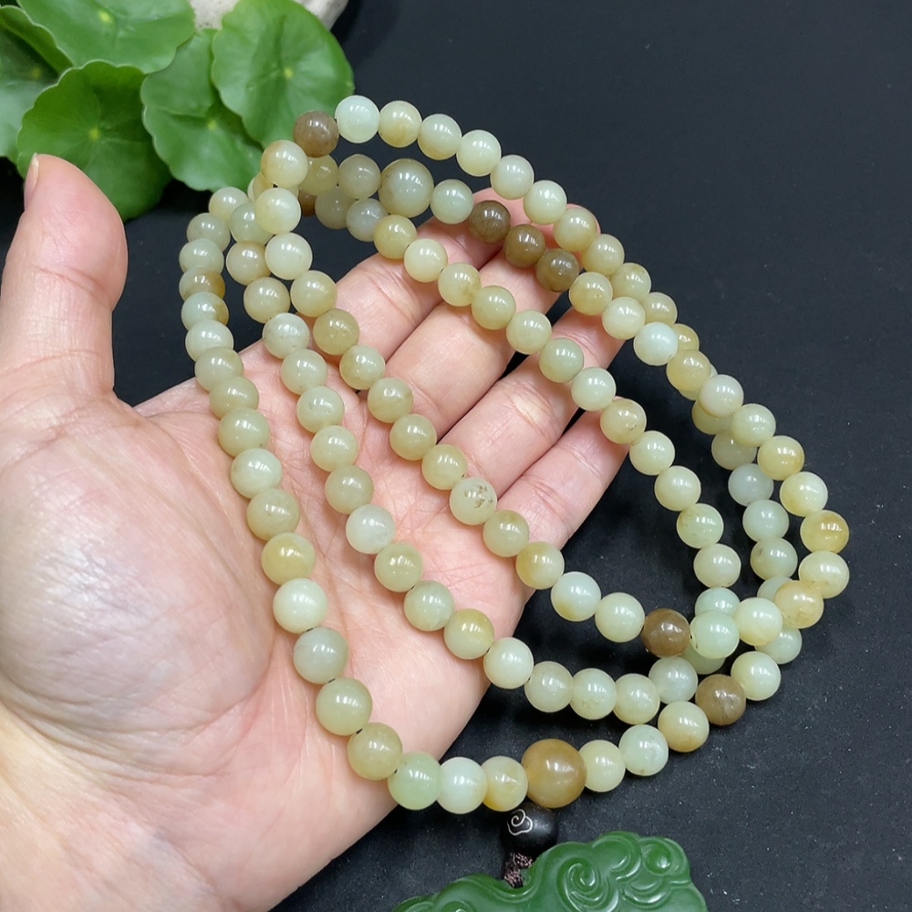 Hetian Jade Bead Necklace, approx. 7.8mm, total weight approx. 229.7g, pendant not Hetian Jade