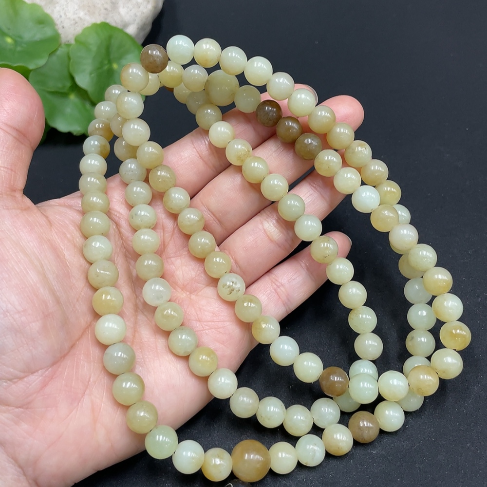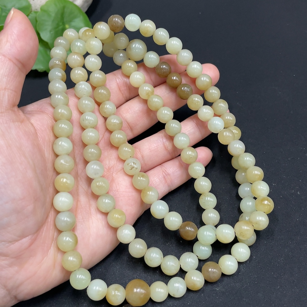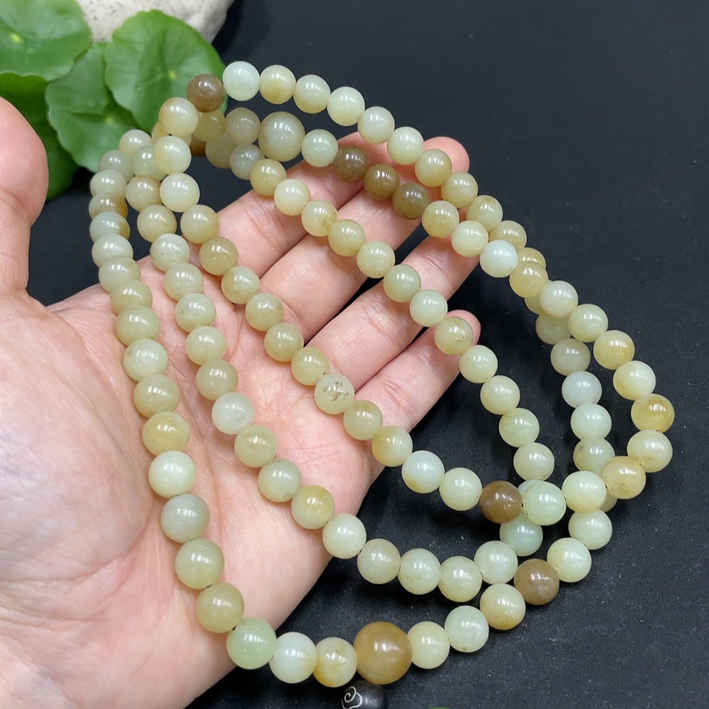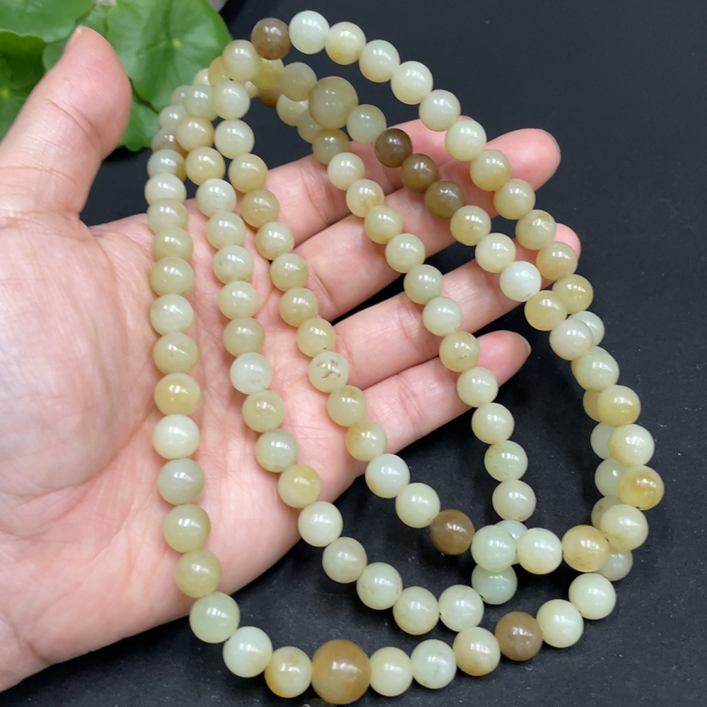 Hetian Jade Bead Necklace, approx. 7.8mm, total weight approx. 229.7g, pendant not Hetian Jade