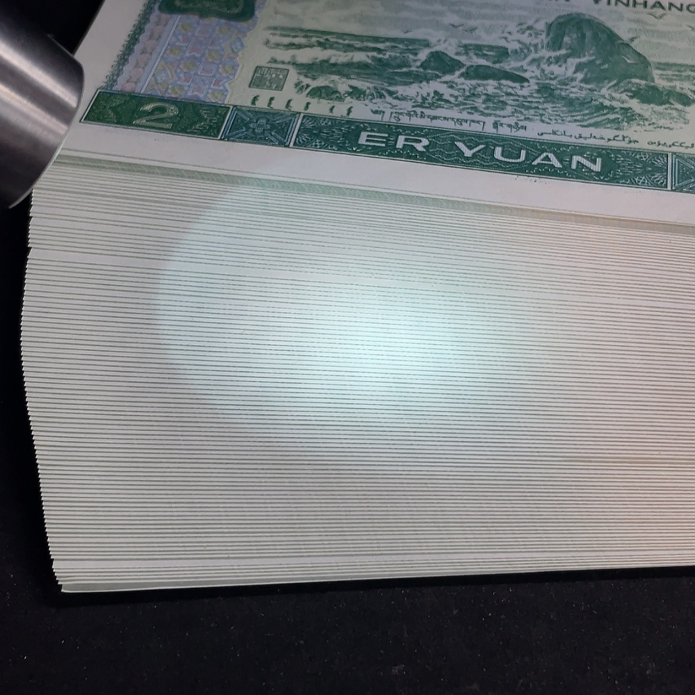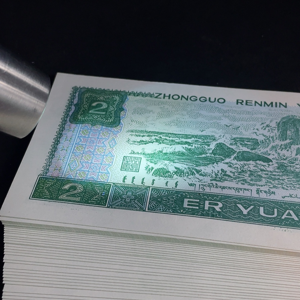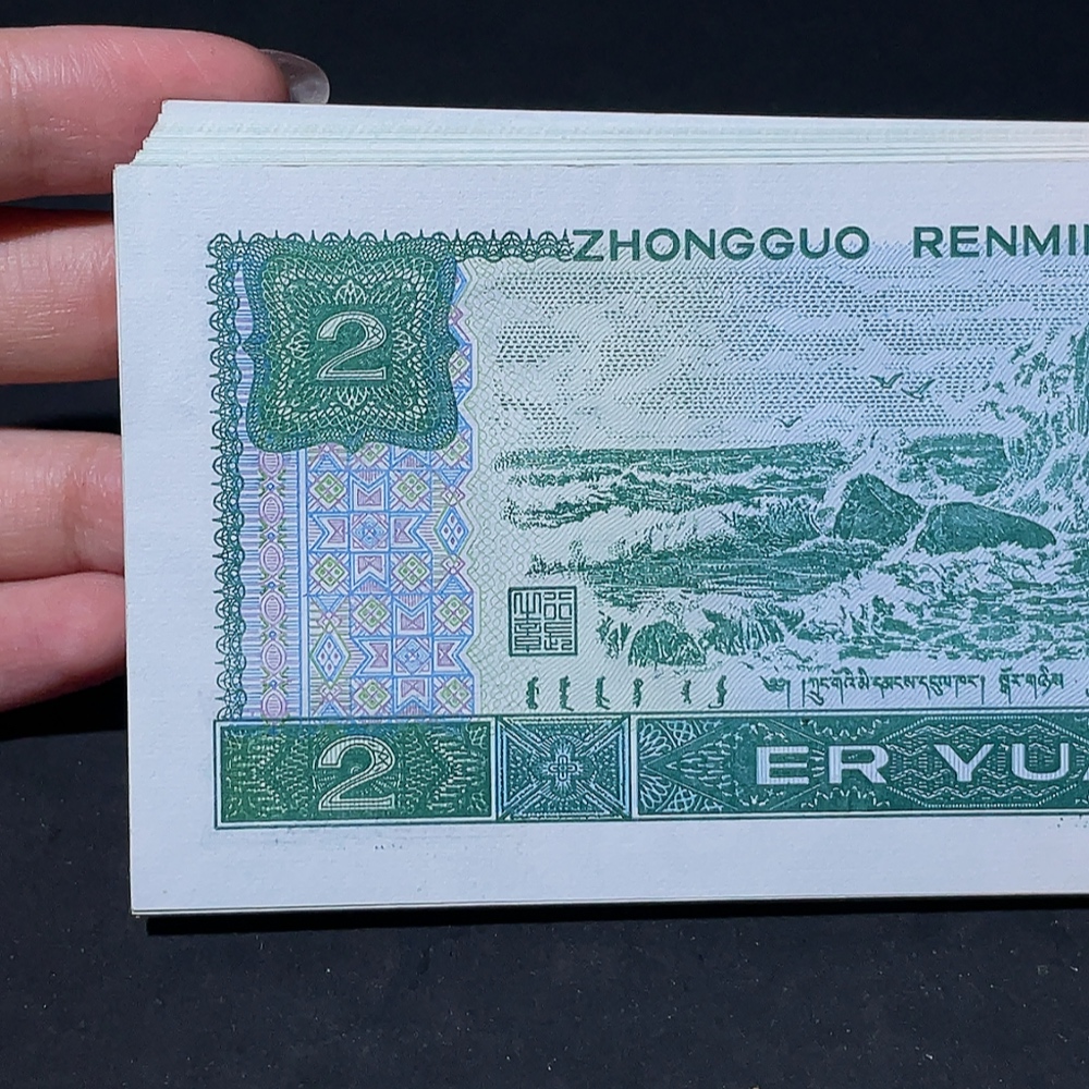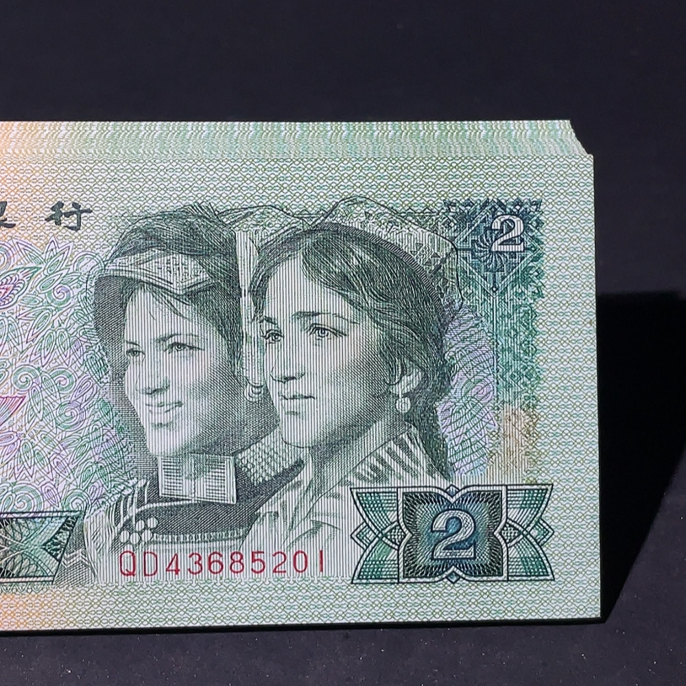 Four sets of 1990 edition 2-yuan bills in consecutive hundreds, pristine condition without spots or oil stains, with a random snake number, uncut sheet of banknotes