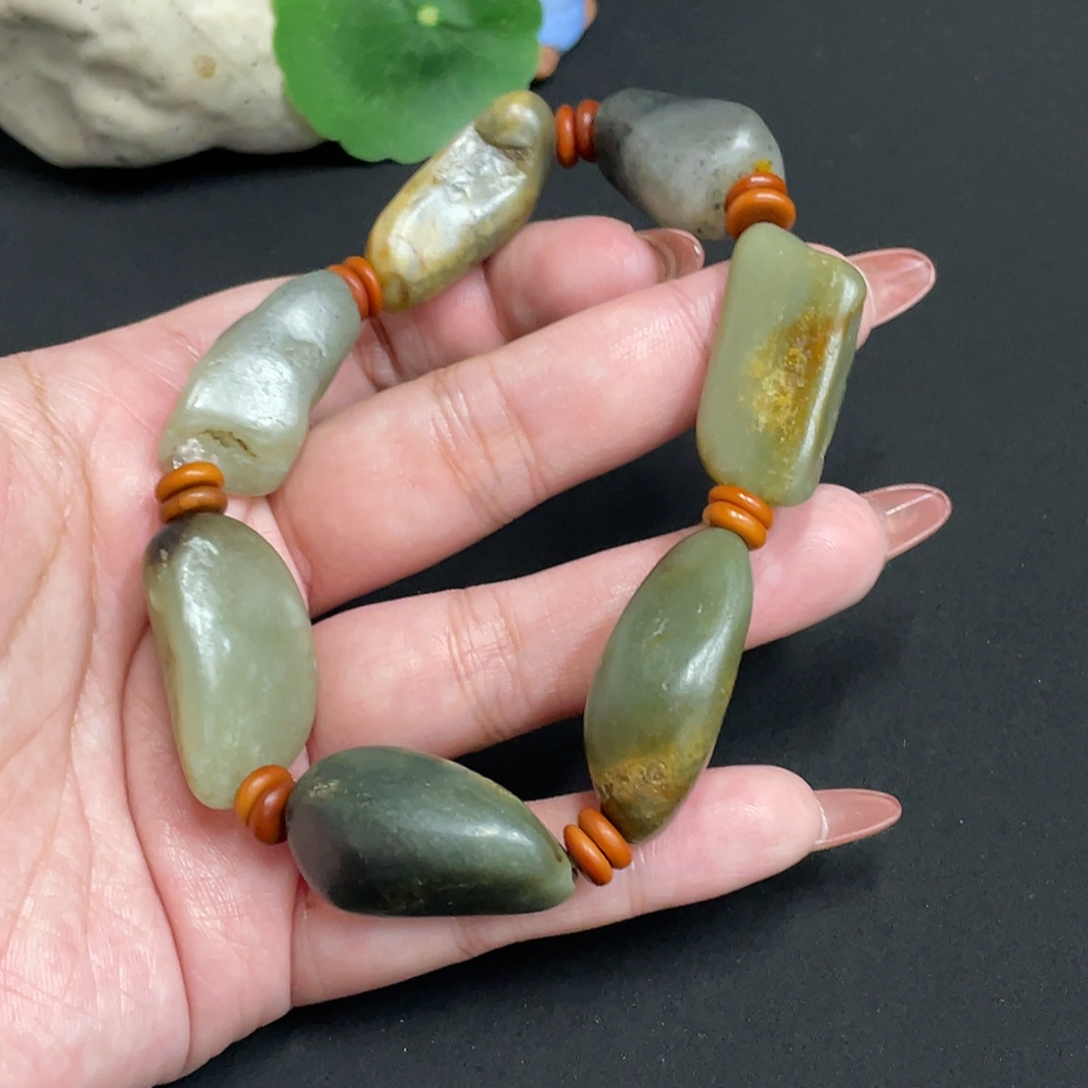 Hetian Jade Bracelet, Undetermined Skin Color Cause, Contains Other Mineral Components, Total Weight Approximately 67.8g