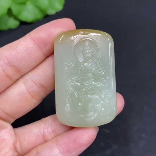 Hetian Jade Pendant Samantabhadra Total Weight Approx. 27.7g