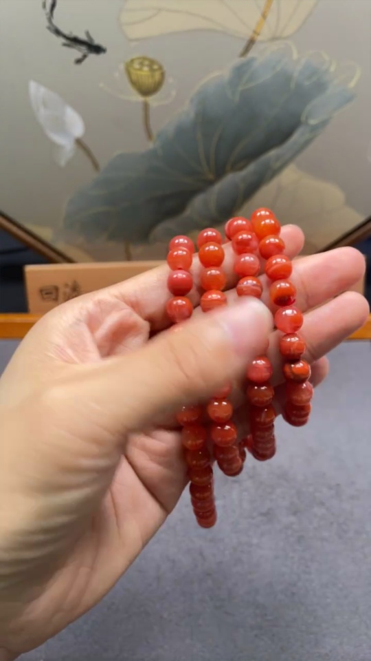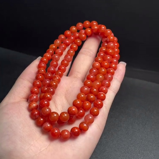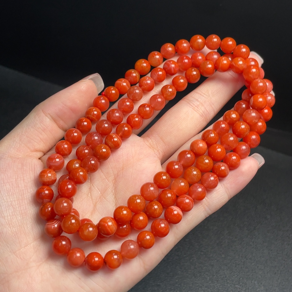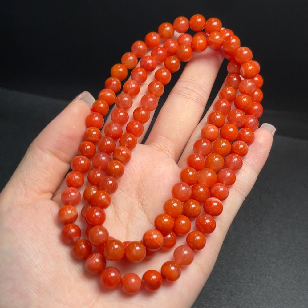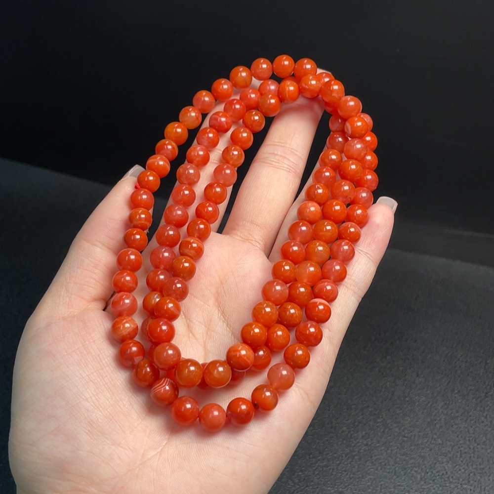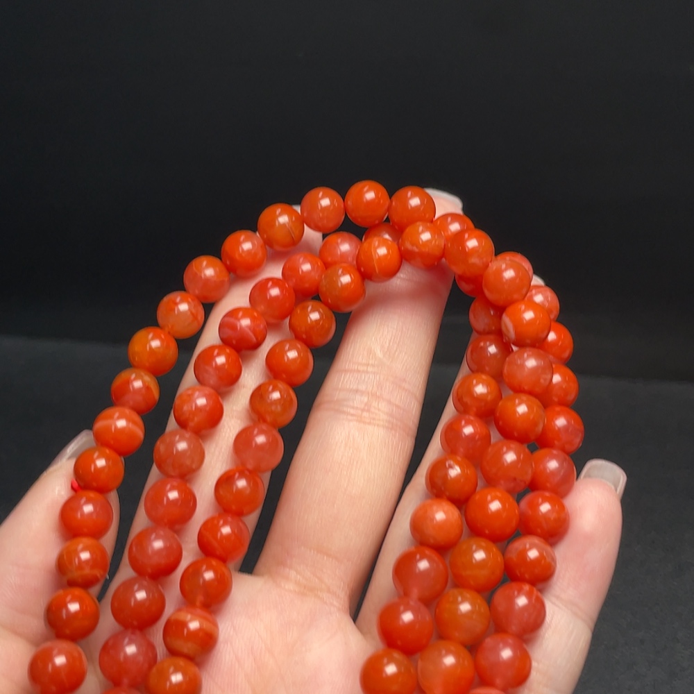Red Agate Beaded Necklace with Visible Organic Matter, Total Weight Approximately 66.43g, Size About 7.8mm