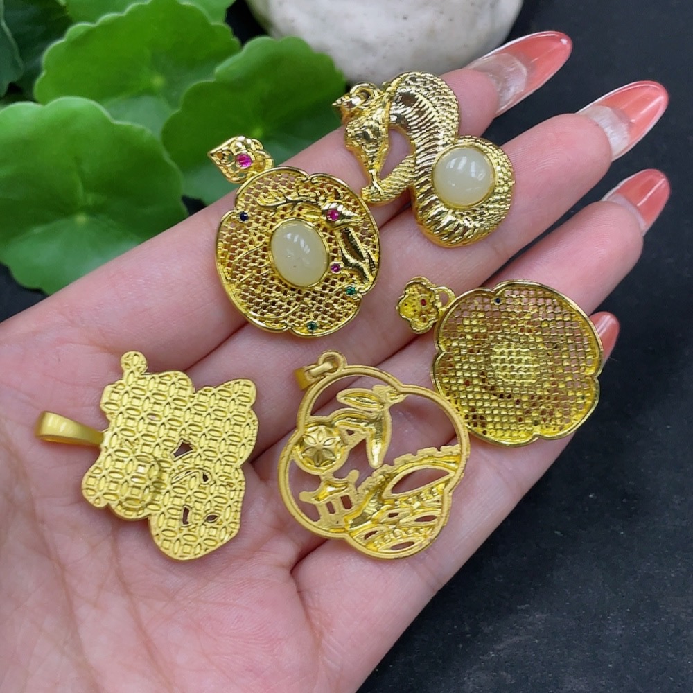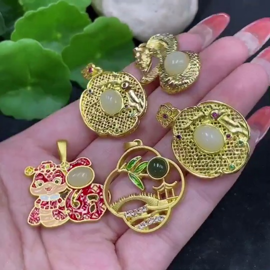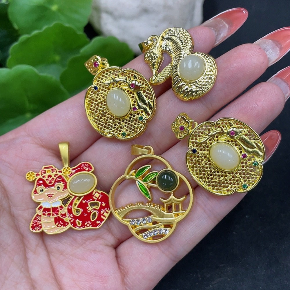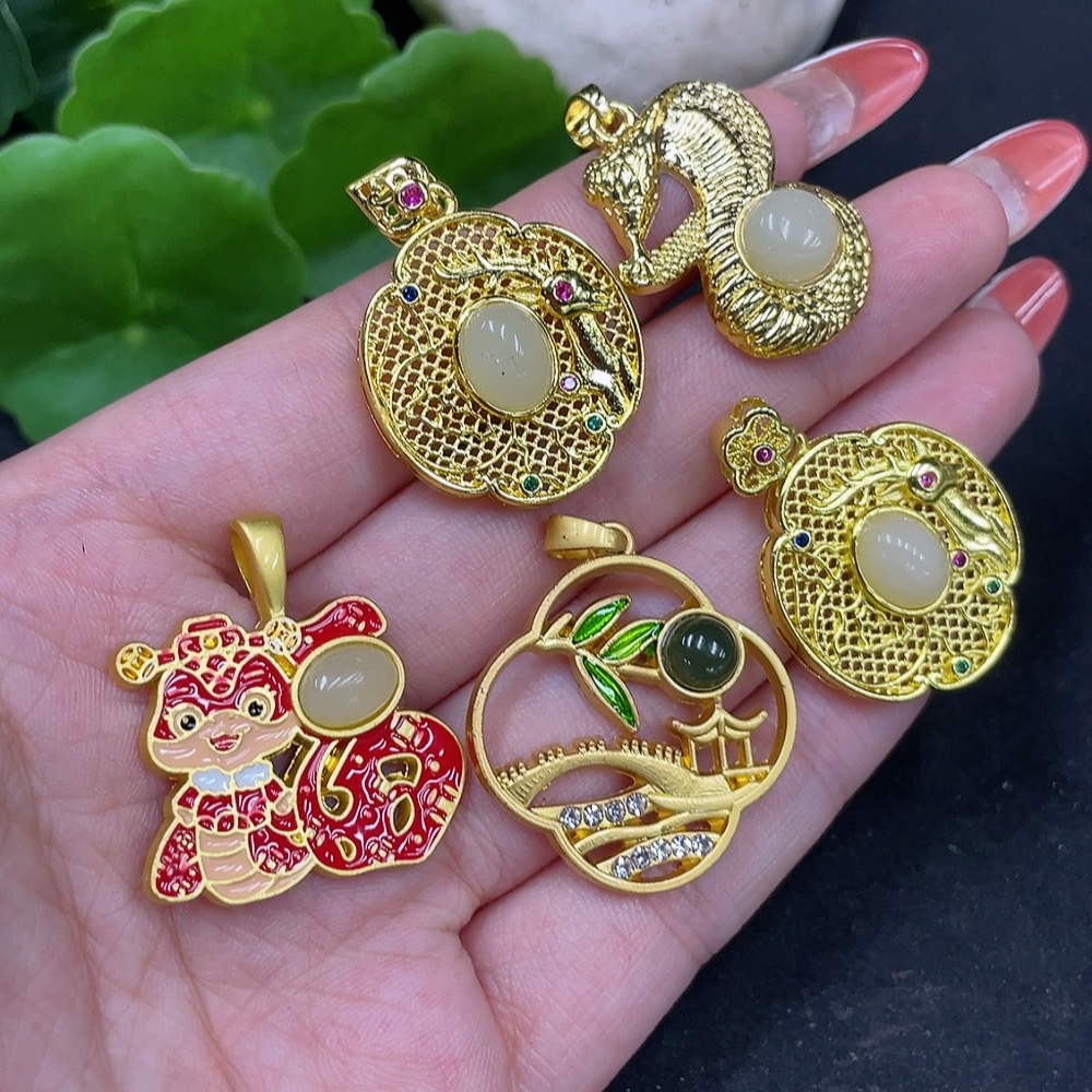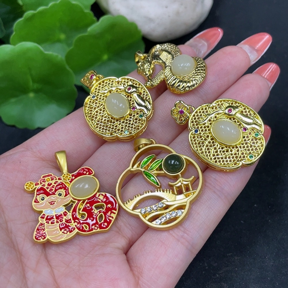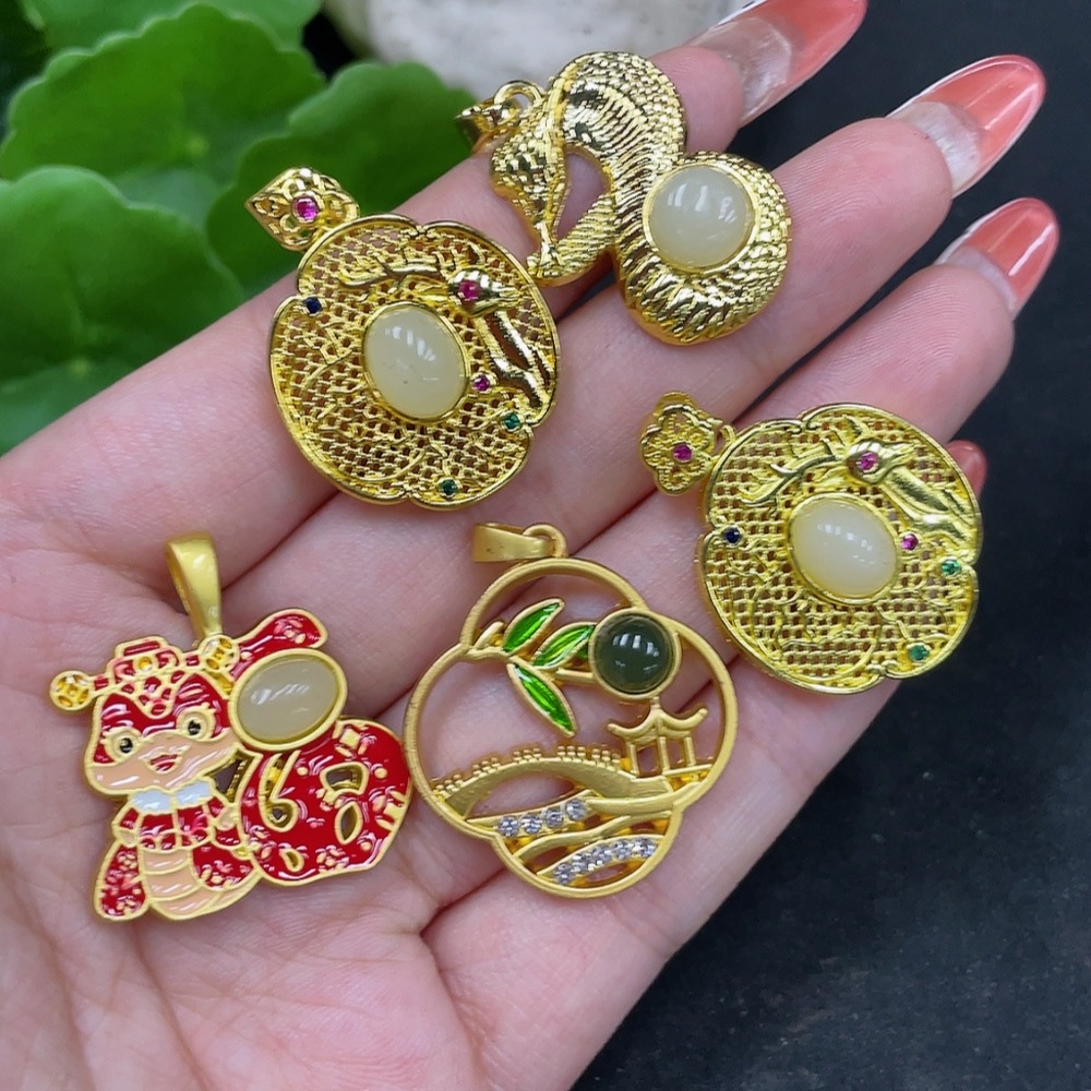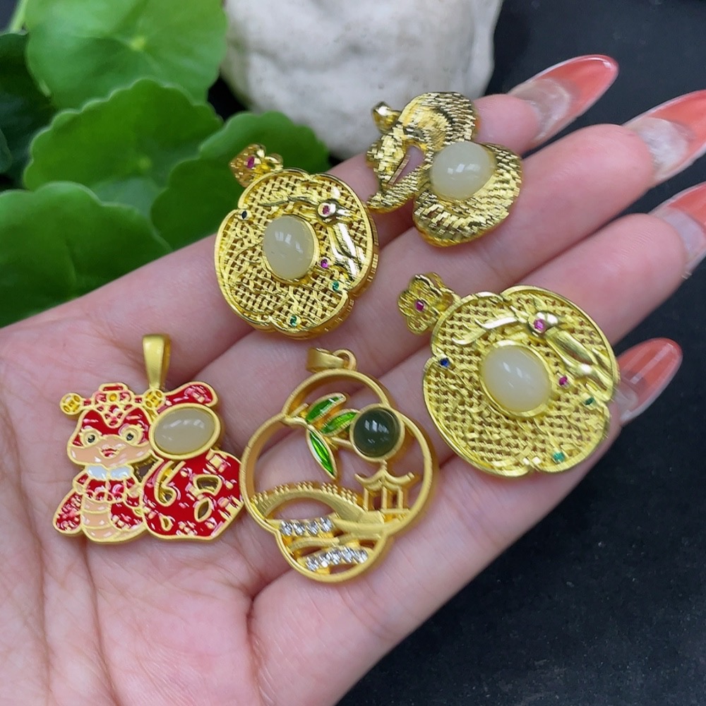 Hetian Jade Inlaid Pendant Non-Gold Total Weight Approx. 21.1g