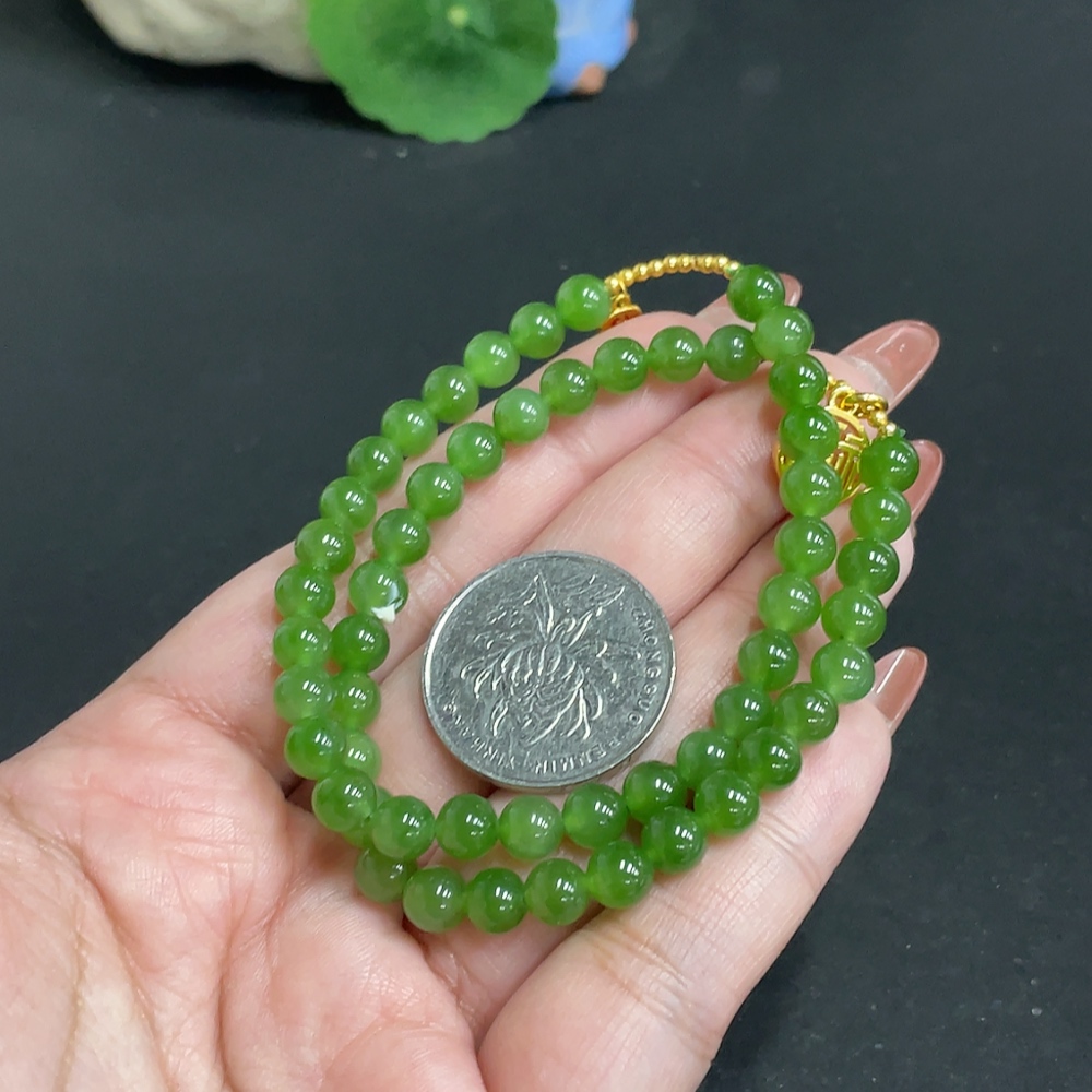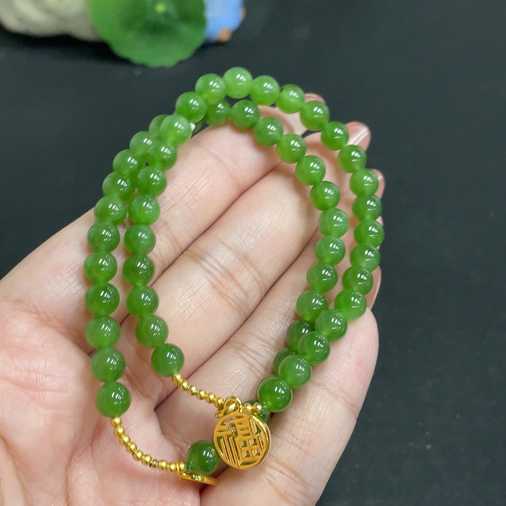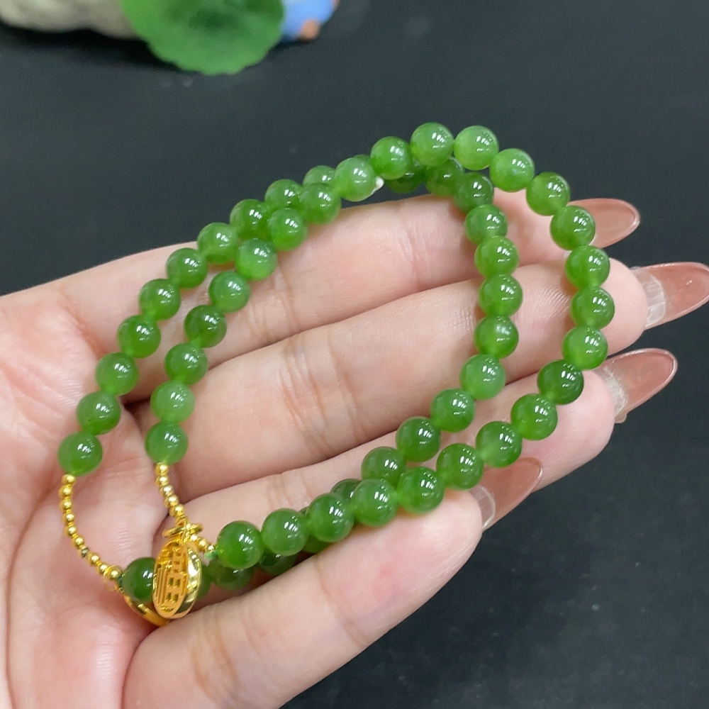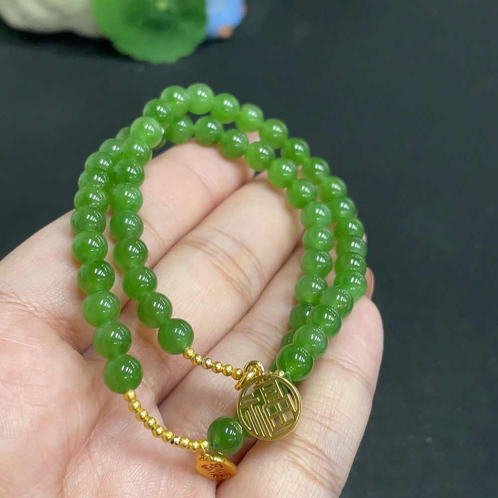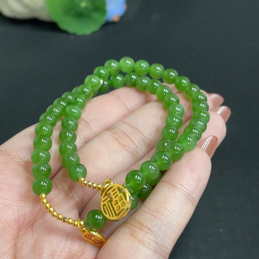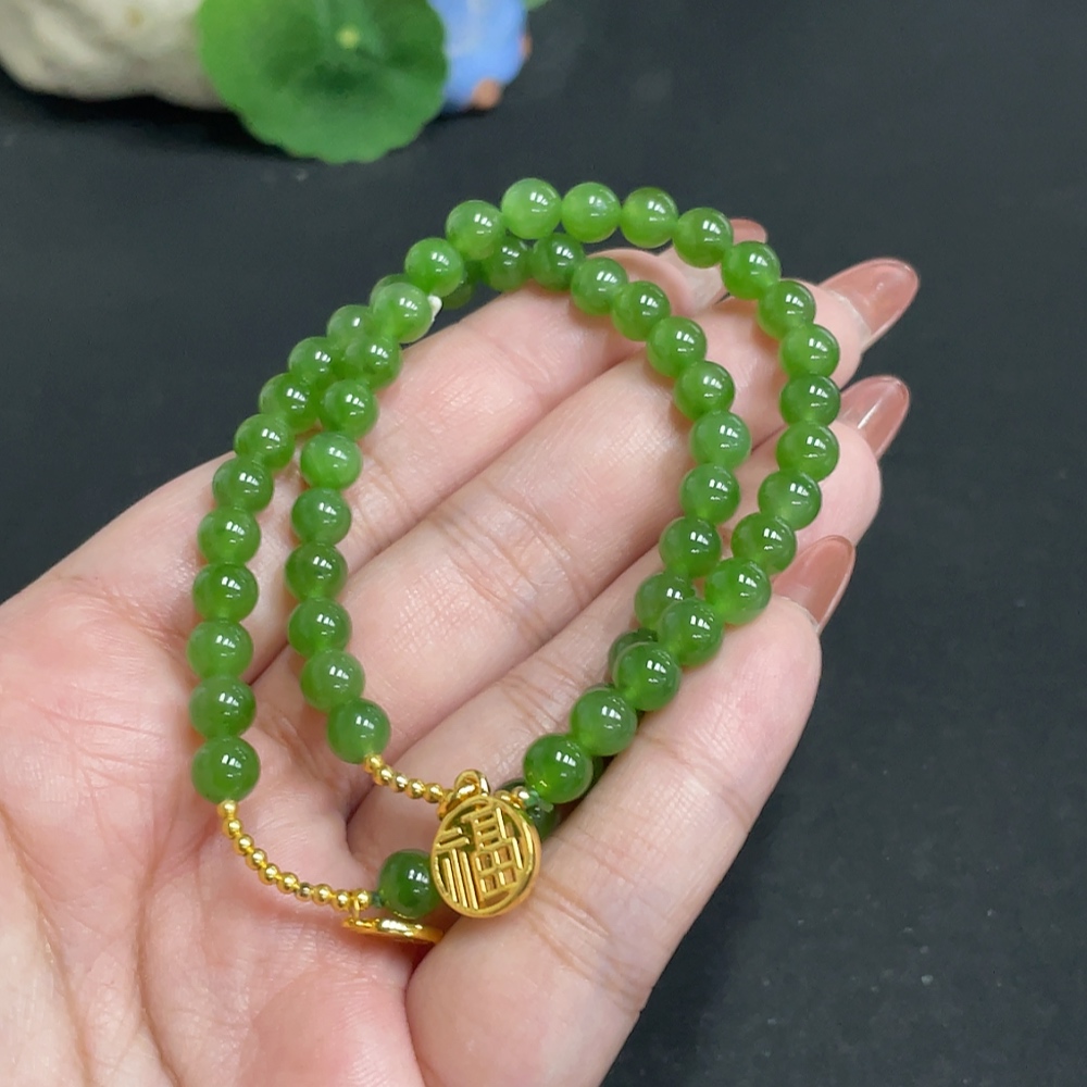Hetian Jade Jasper Bracelet, approx. 5.8 mm, total weight about 19g, no imprint, pendant gold content suspected to be gold-plated, rest 18k