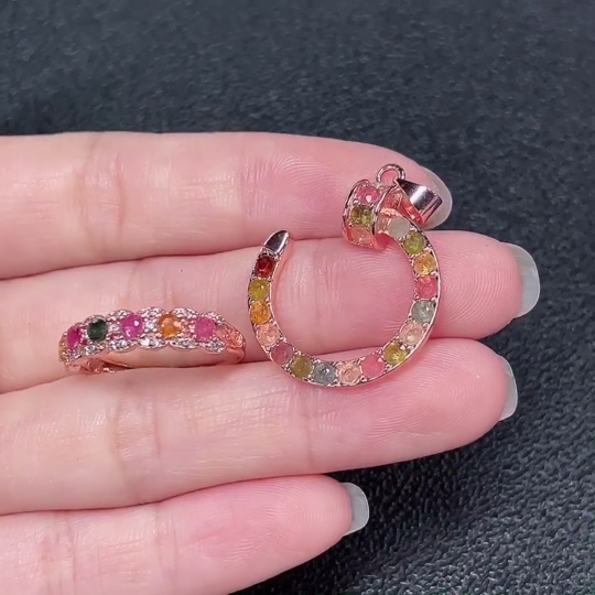 Tourmaline Pendant + Ring Adjustable Non-Gold Total Weight Approx. 4.07g Sell as a Lot