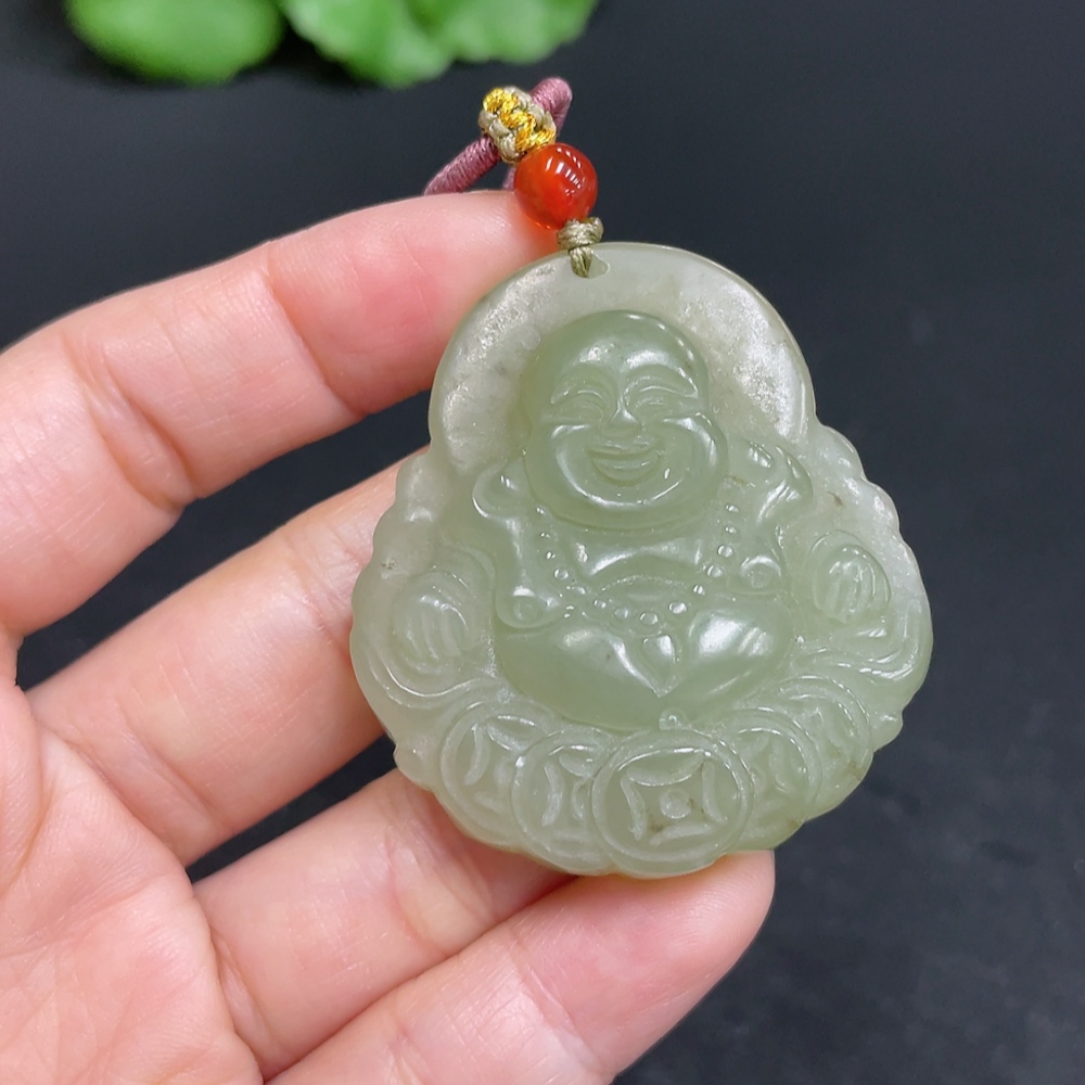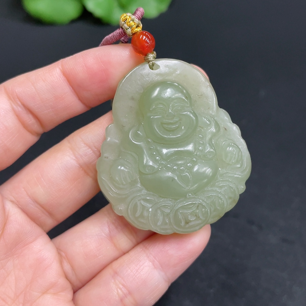 Hetian Jade Pendant Buddha Total Weight (including rope) 29.8g