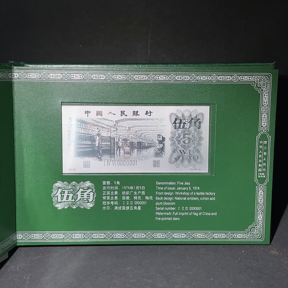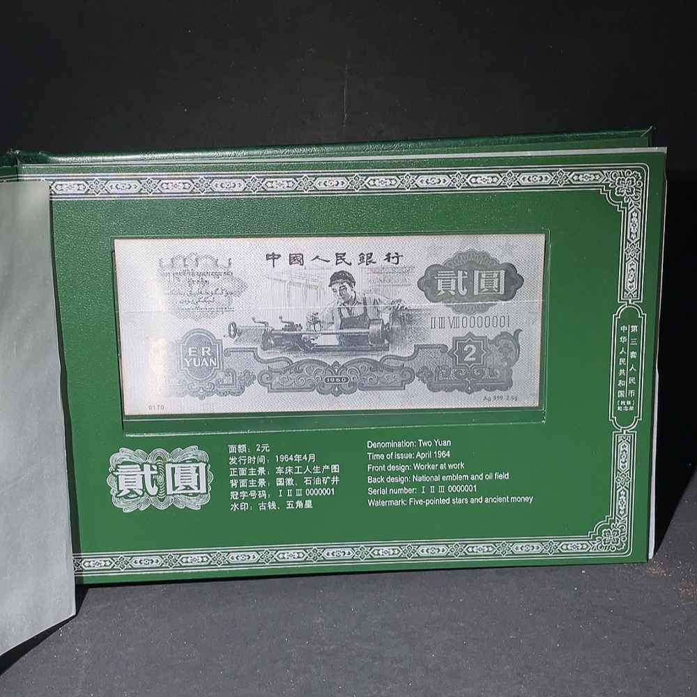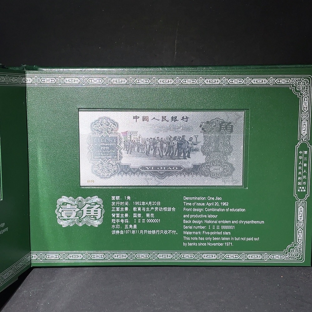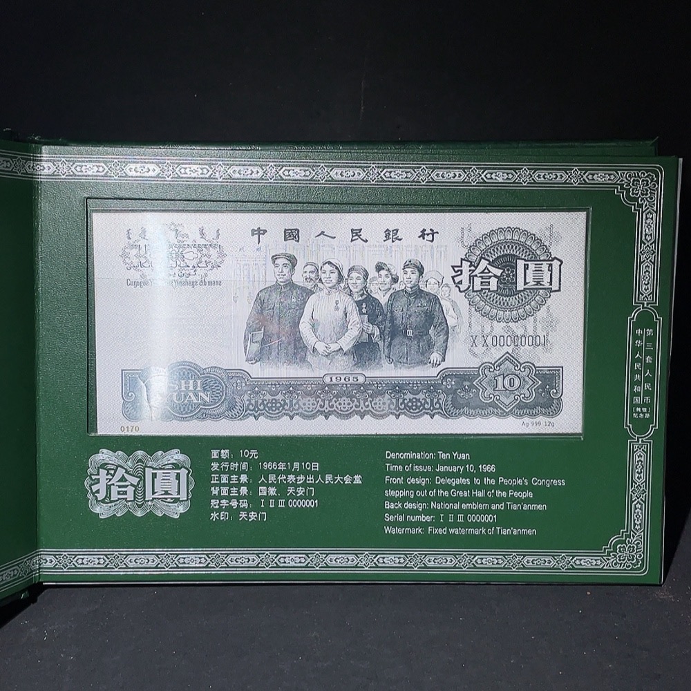 The Complete Set of the Third Series of RMB with 1 Yuan, 2 Yuan, 5 Yuan, 10 Yuan, 5 Jiao, 2 Jiao, and 1 Jiao Denomination Commemorative Album in Pure Silver (999, 28g) with Certificate