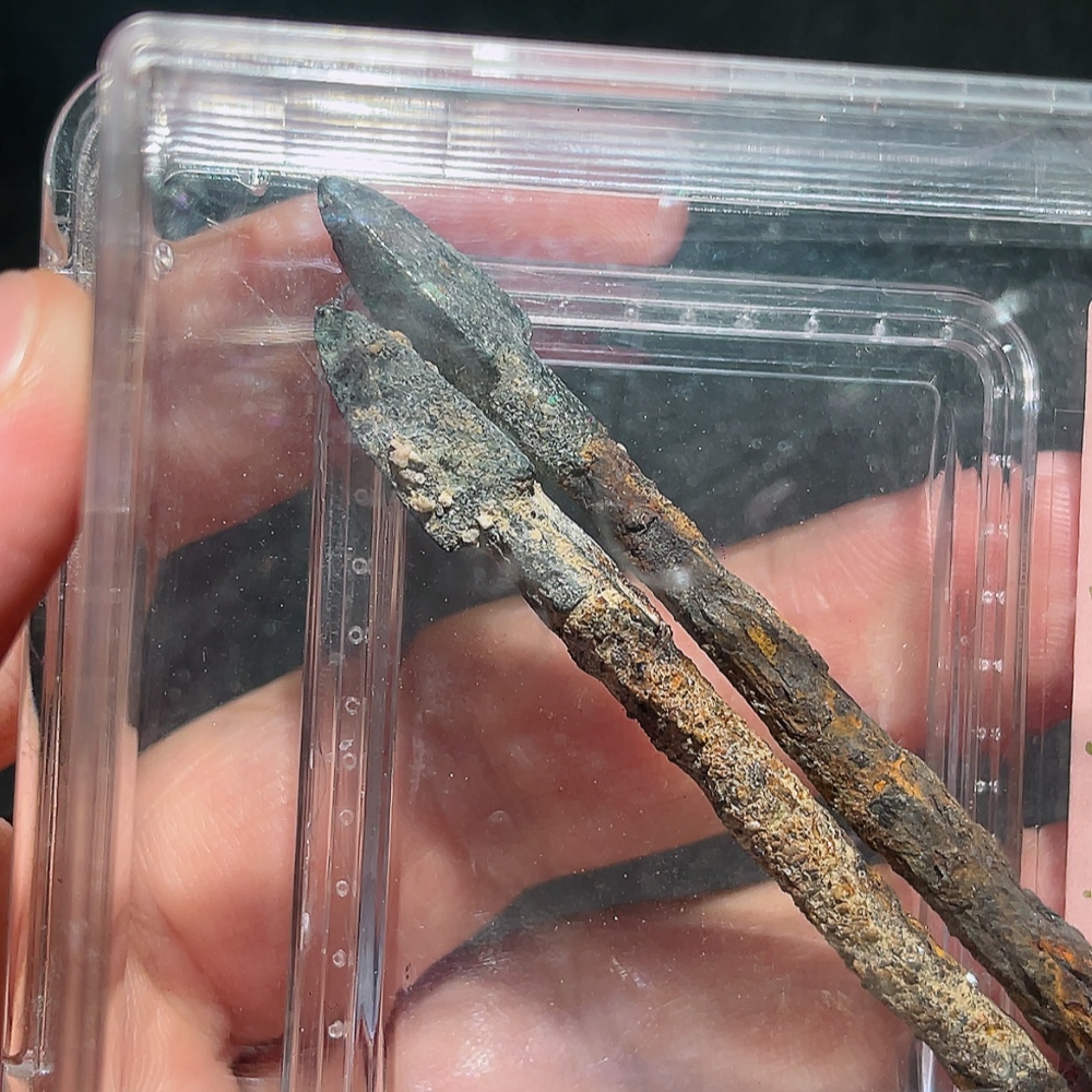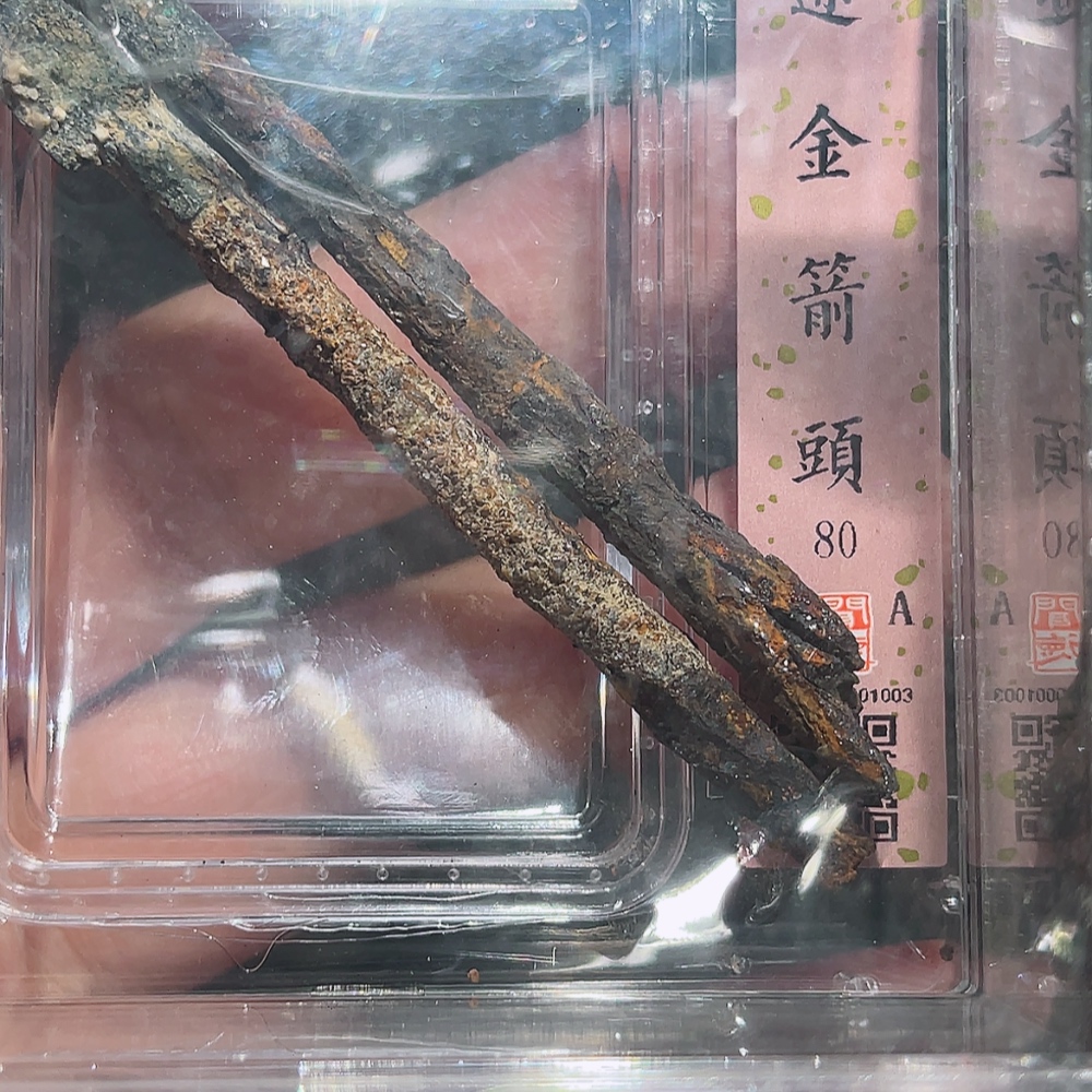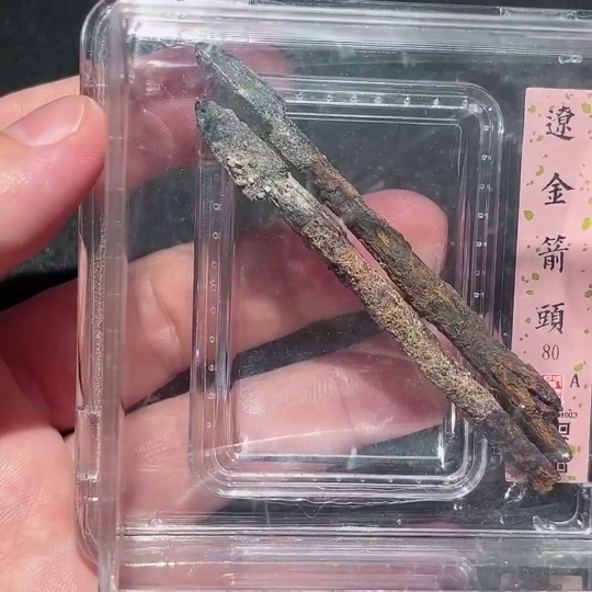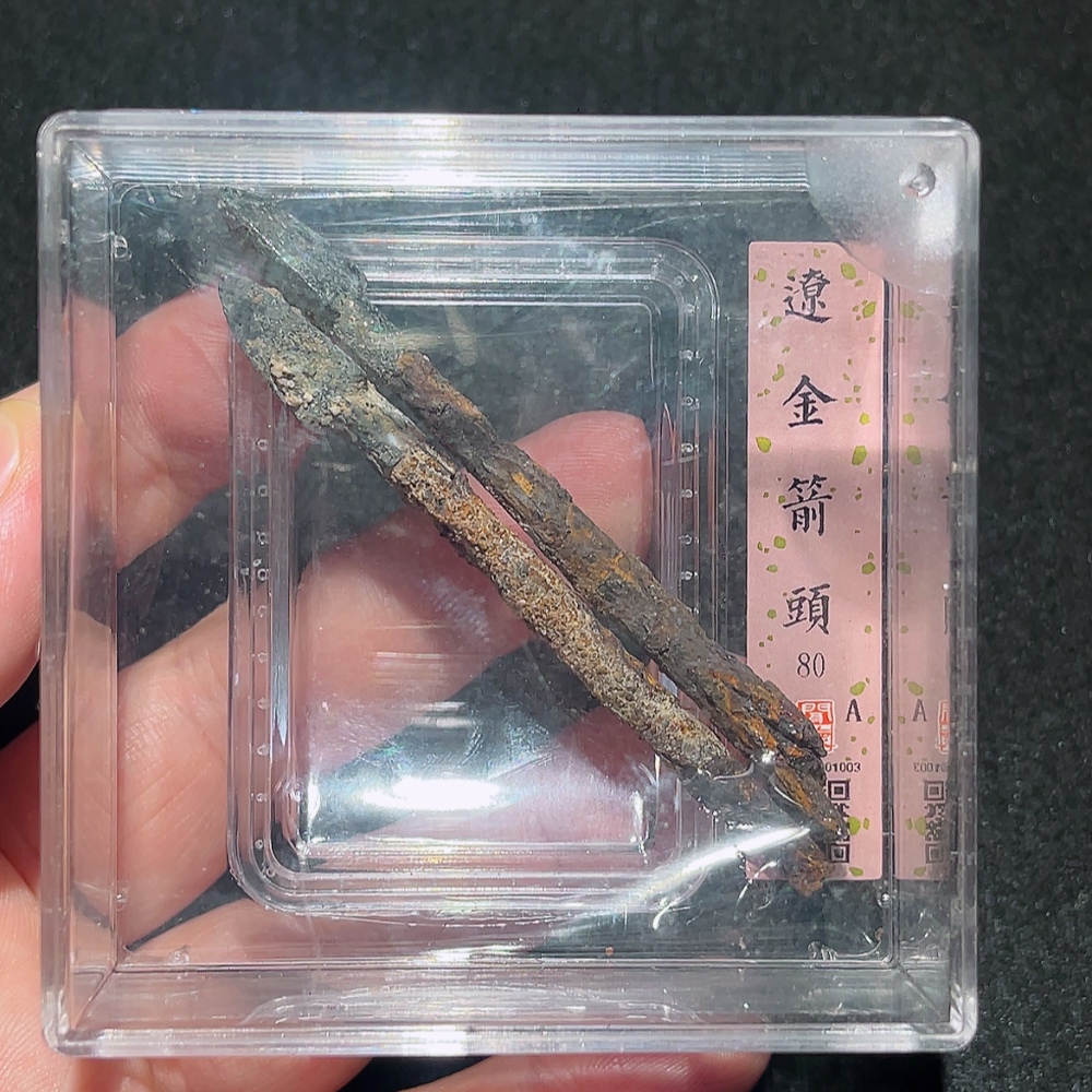 Liao-Jin Period Triangular Bronze Arrowhead with Long Shaft, Intact with Heavy Patina, Accompanied by Wendel Grading Box, Miscellaneous Category