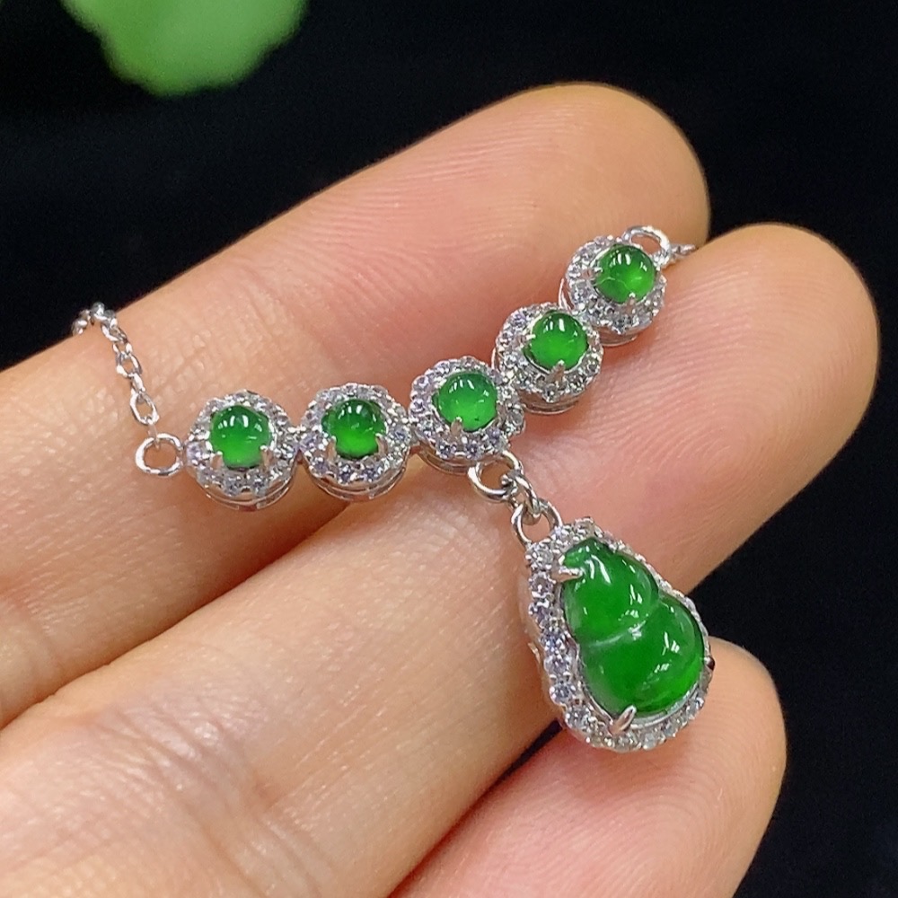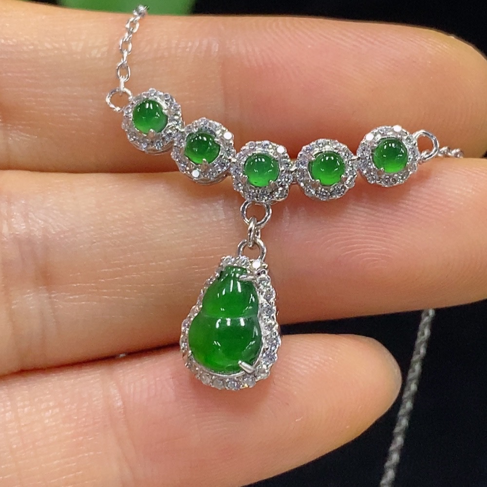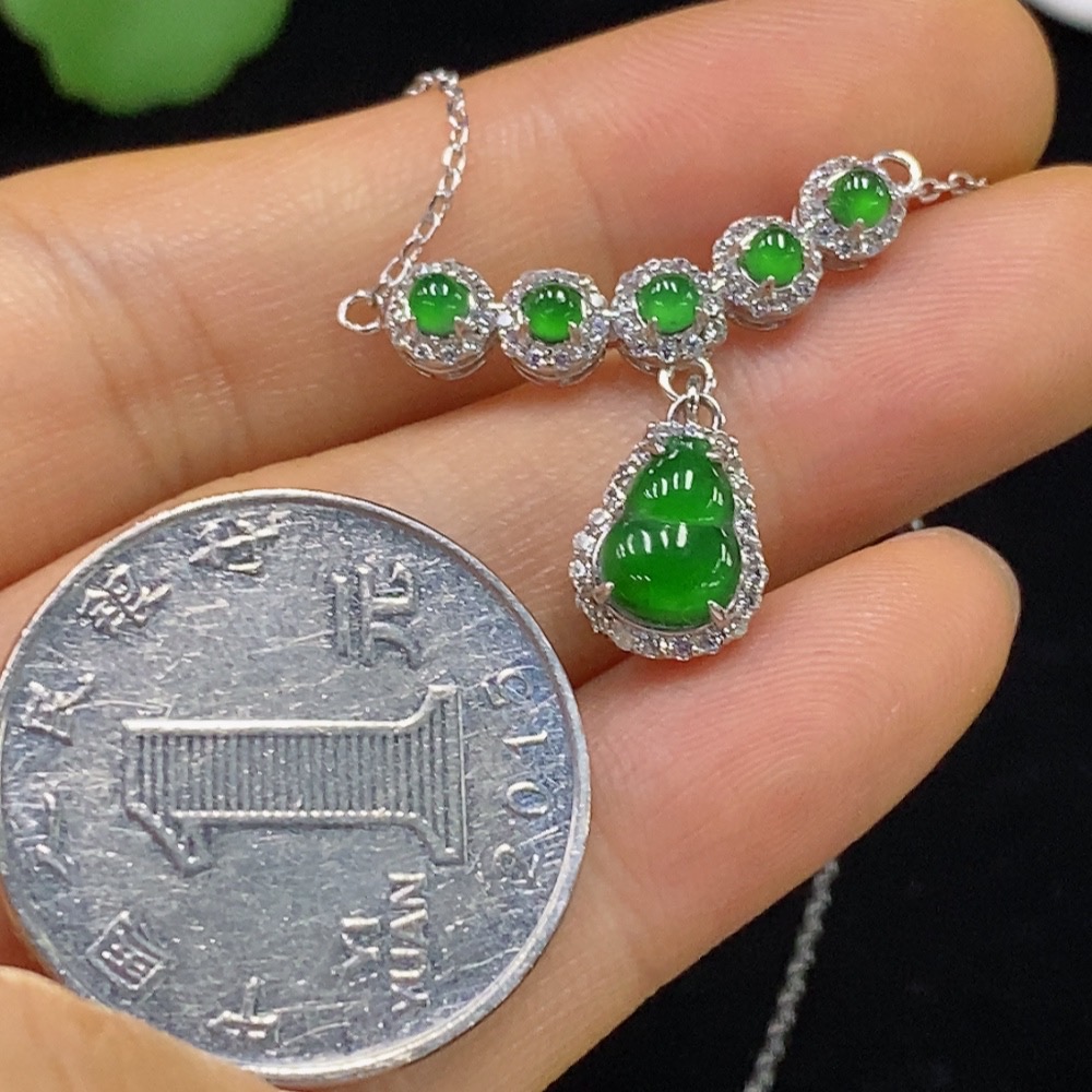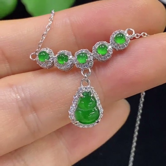 Jadeite Inlaid Necklace Non-Gold Total Weight Approx. 3.2g