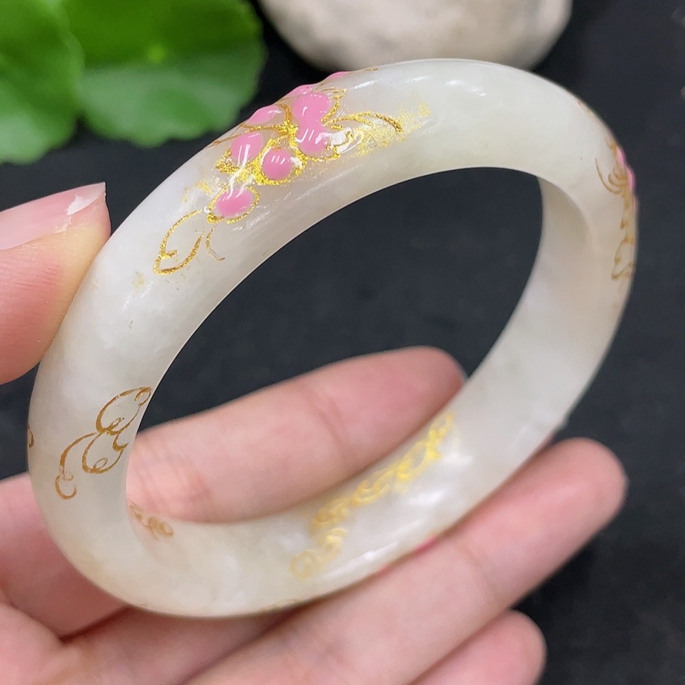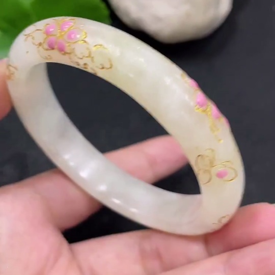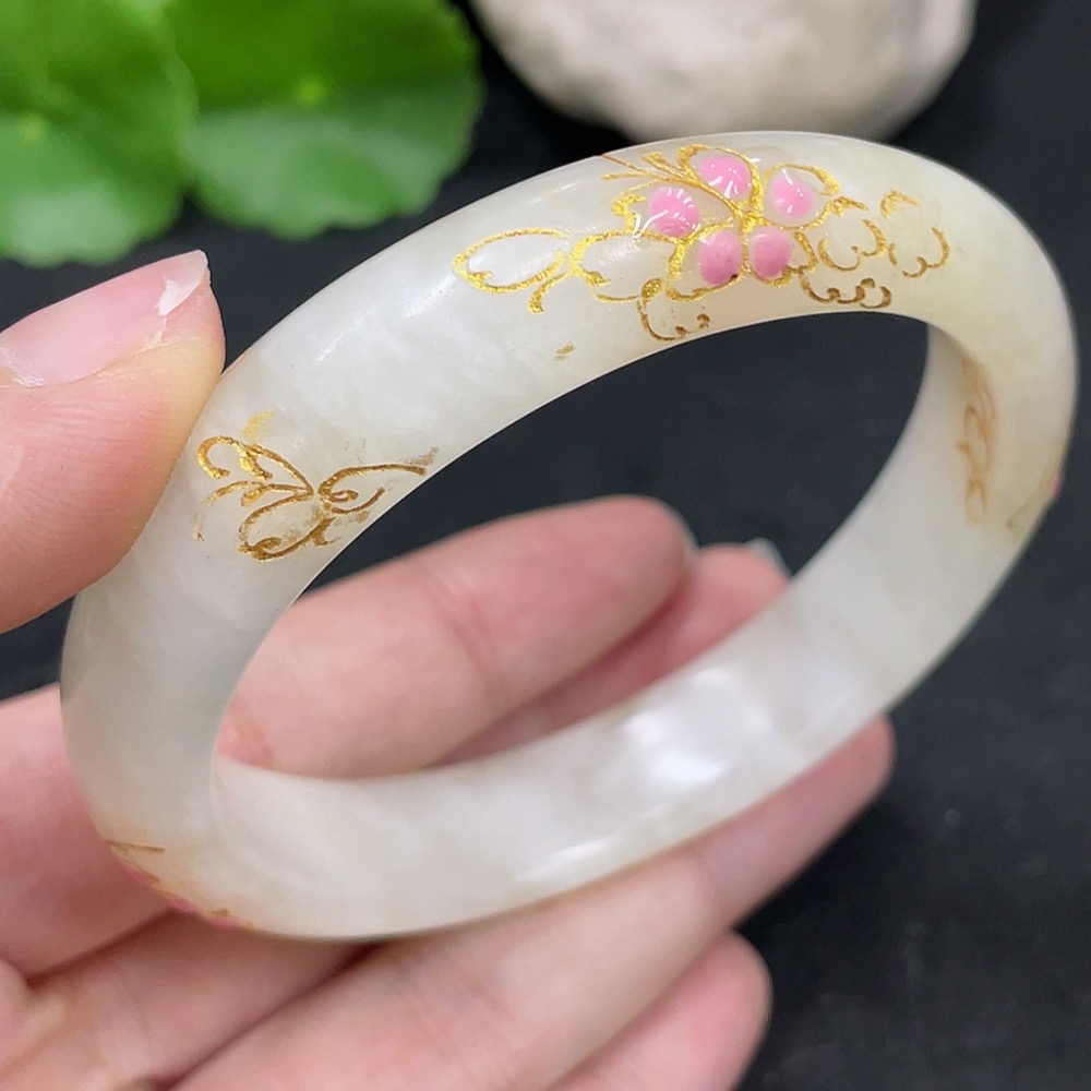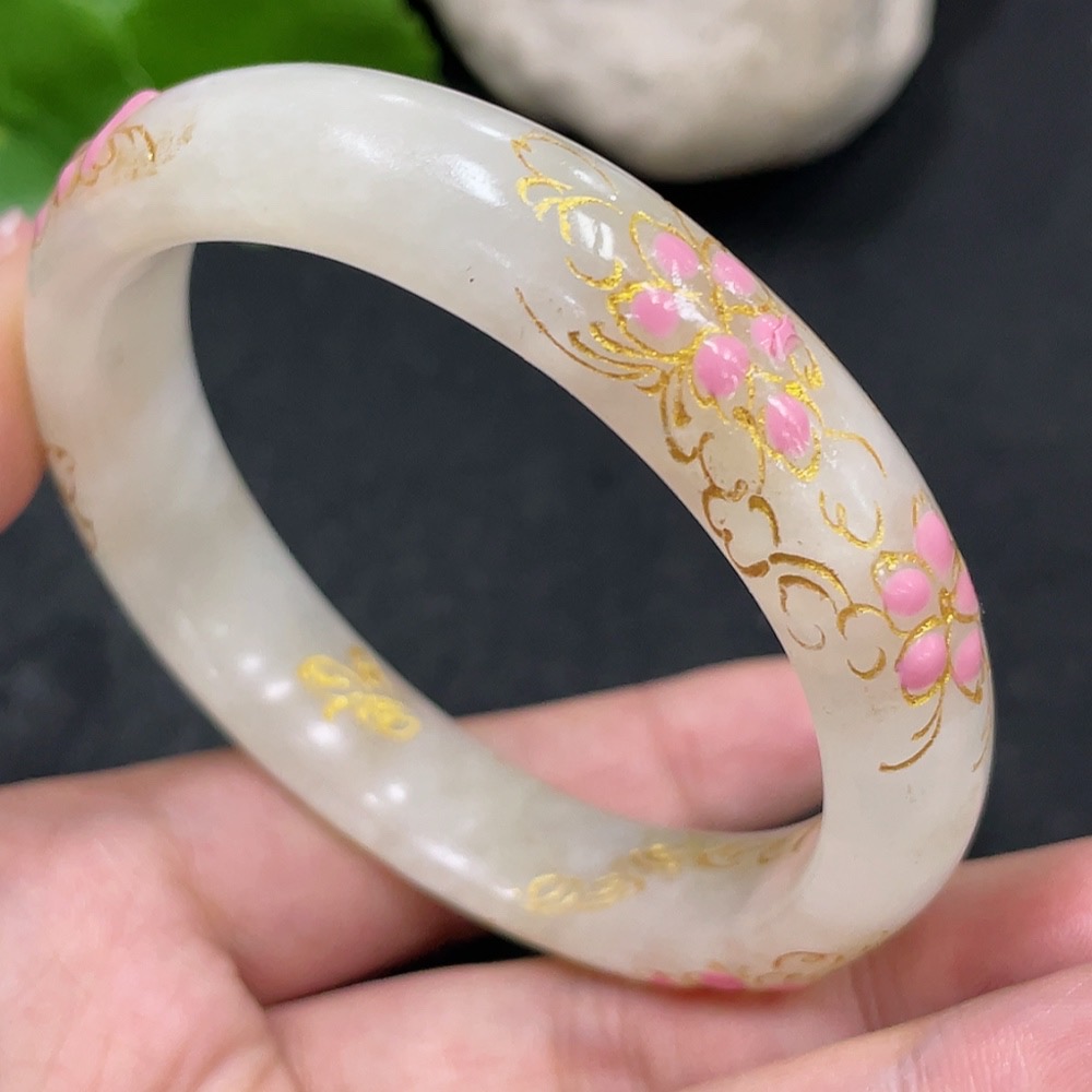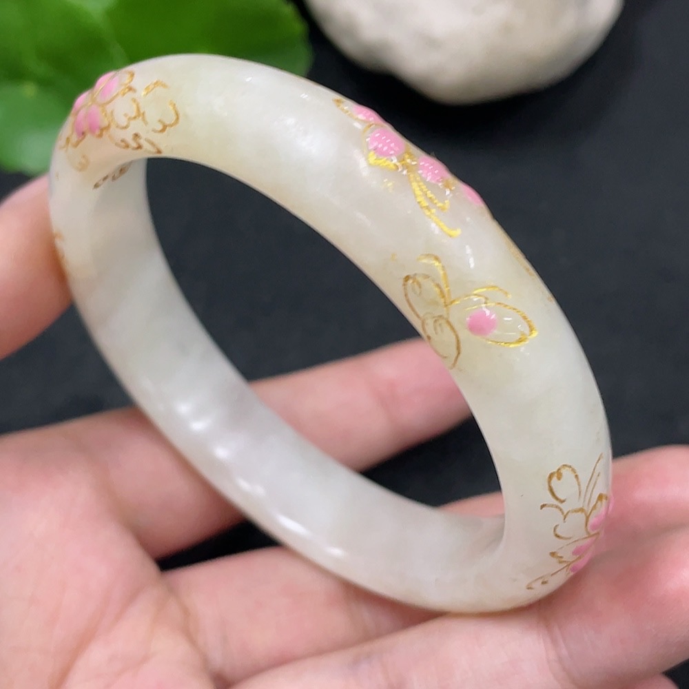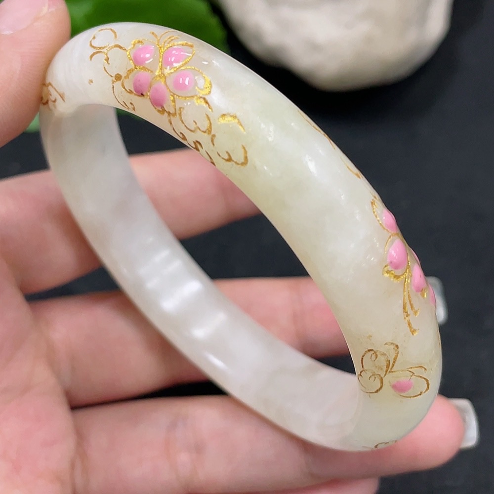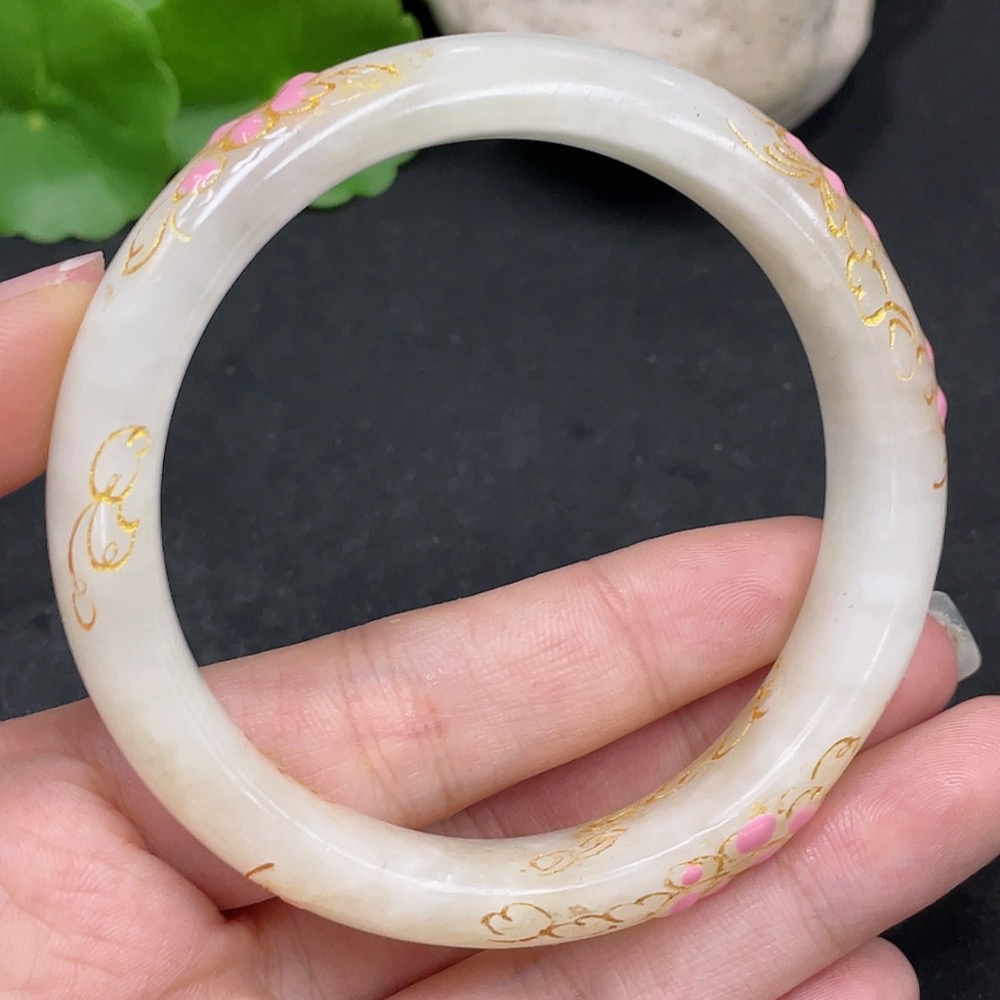 Hetian Jade Round Bracelet, Crafted with Adhesive Technique, Size 58.2, Total Weight Approximately 50.2g