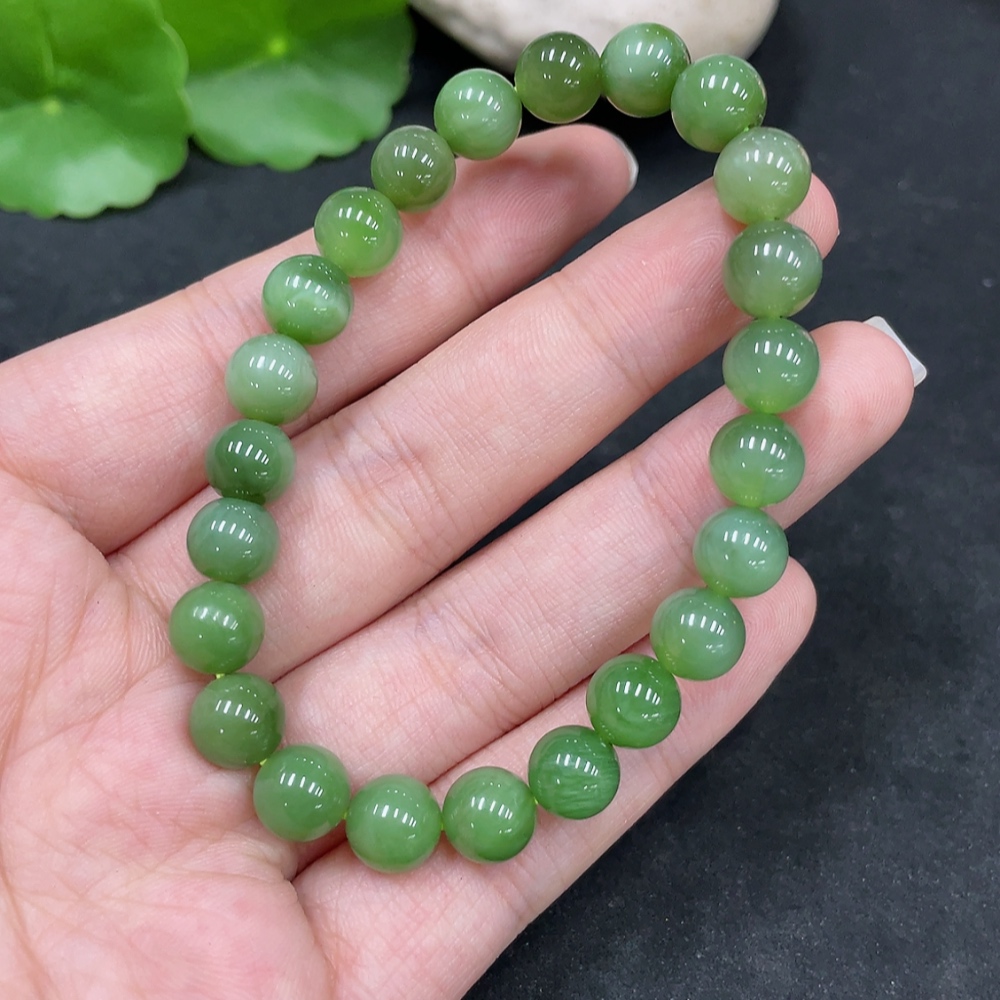 Hetian Jade Green Jade Bracelet Approx. 7.8mm Total Weight Approx. 18.3g