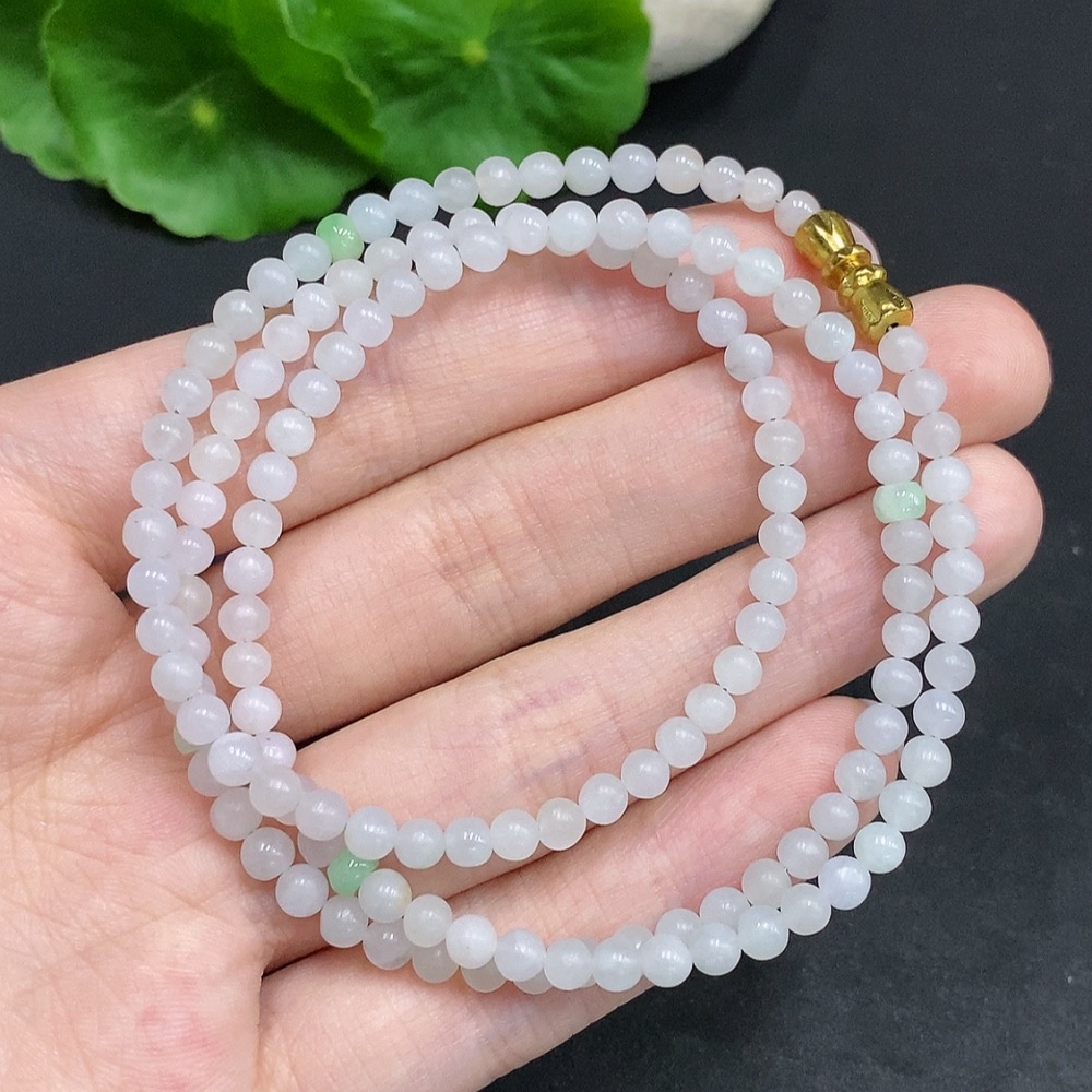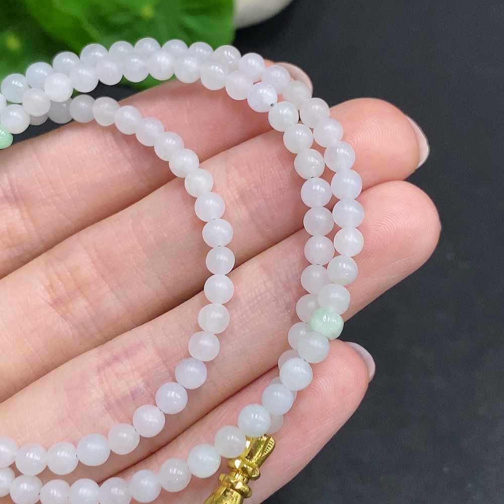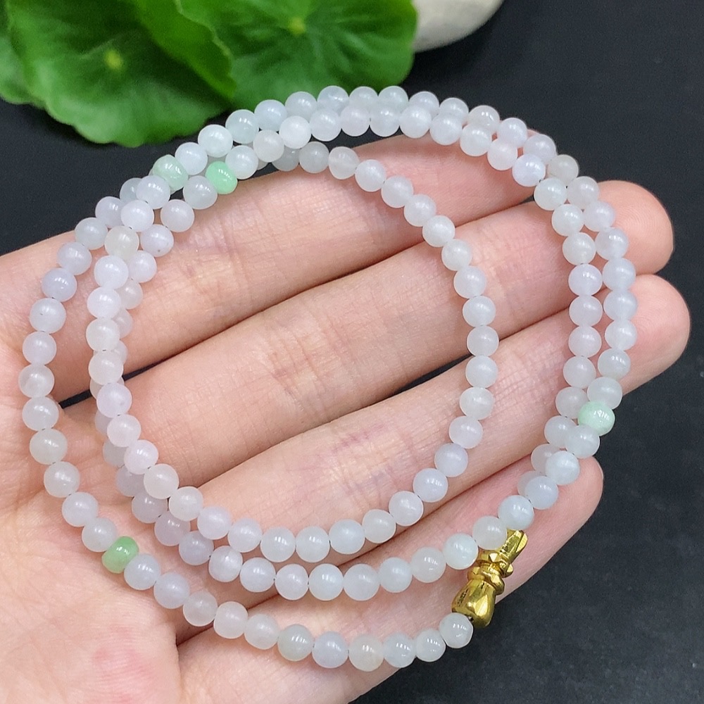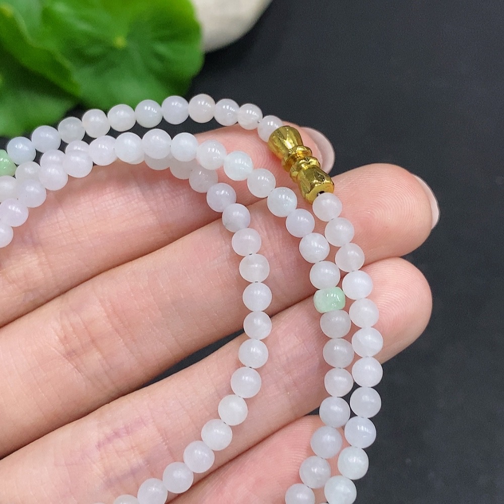 Jadeite Rough Bead Necklace Non-Gold Inlaid Total Weight Approximately 15g Size About 3.7mm