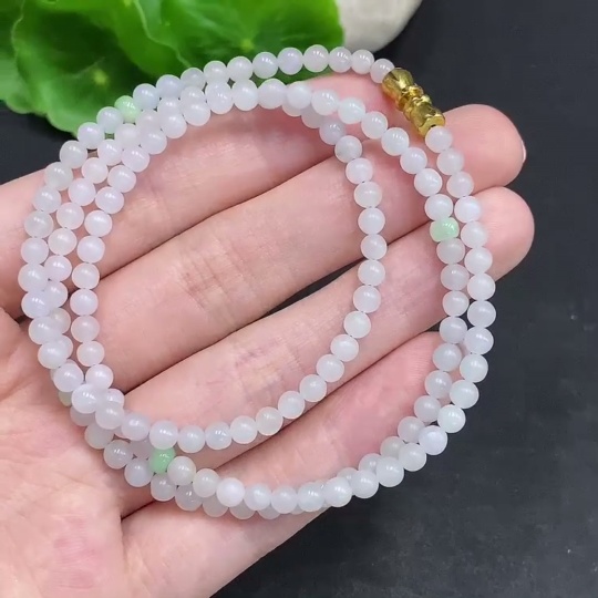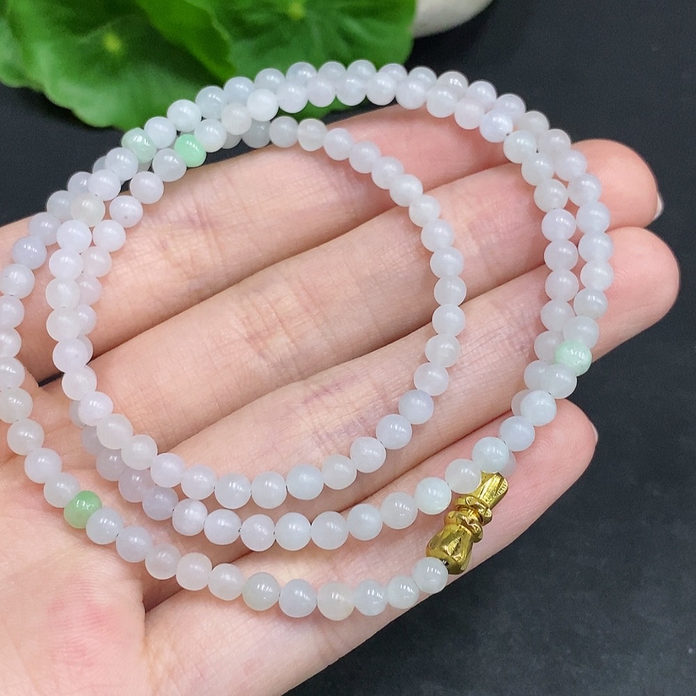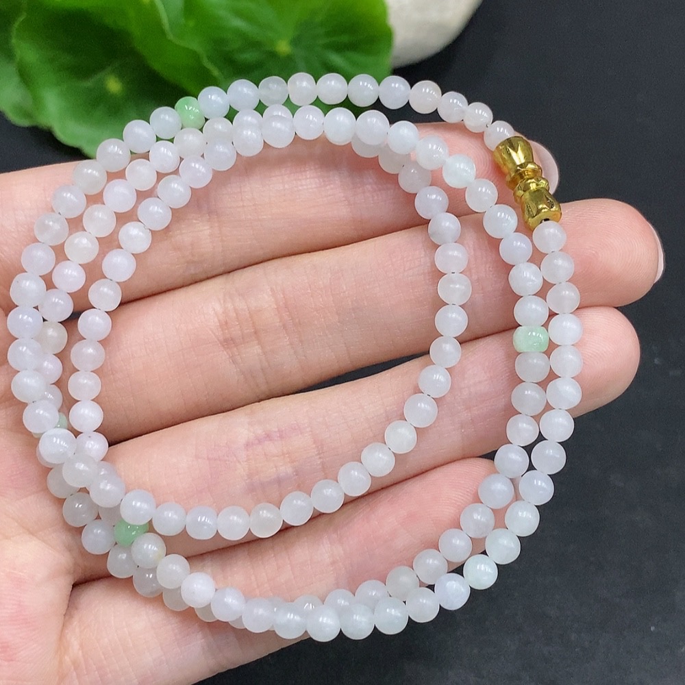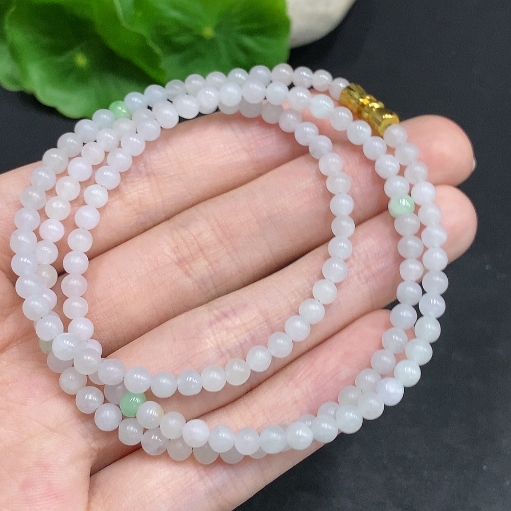 Jadeite Rough Bead Necklace Non-Gold Inlaid Total Weight Approximately 15g Size About 3.7mm