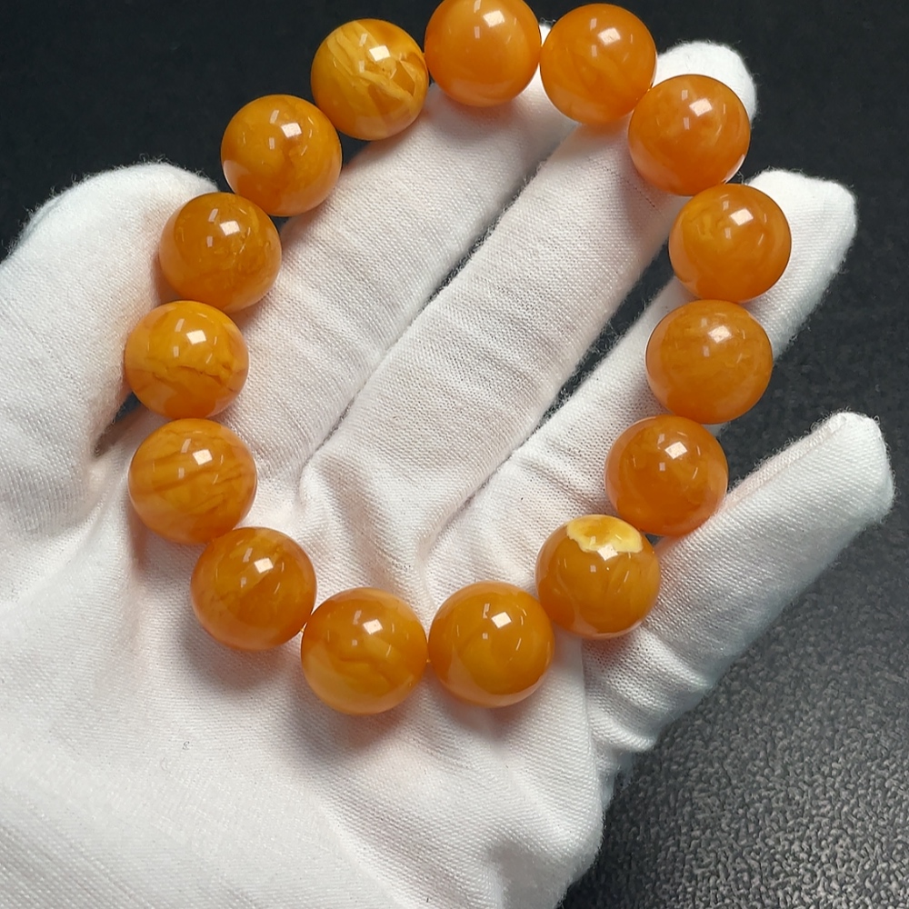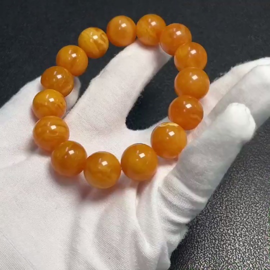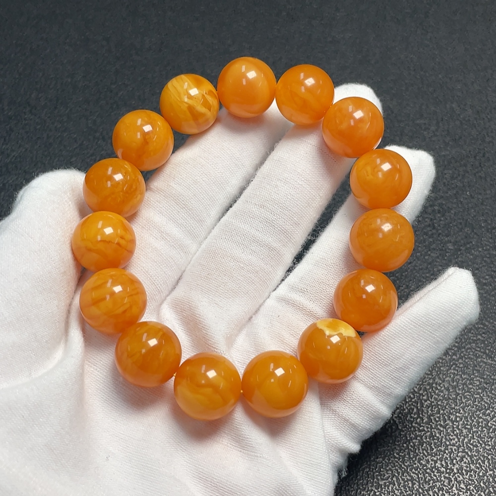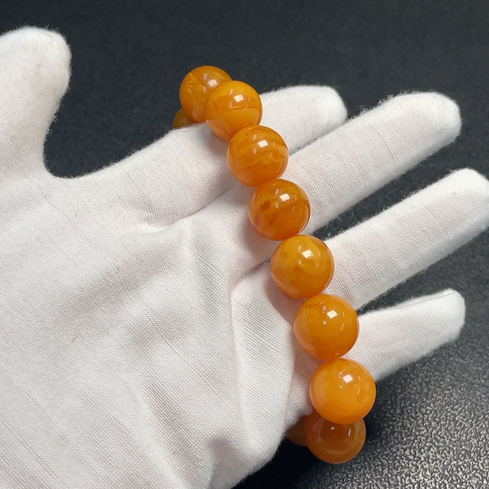 Amber Beeswax Bracelet, color origin undetermined, total weight approximately 23.71g, size about 13.9mm