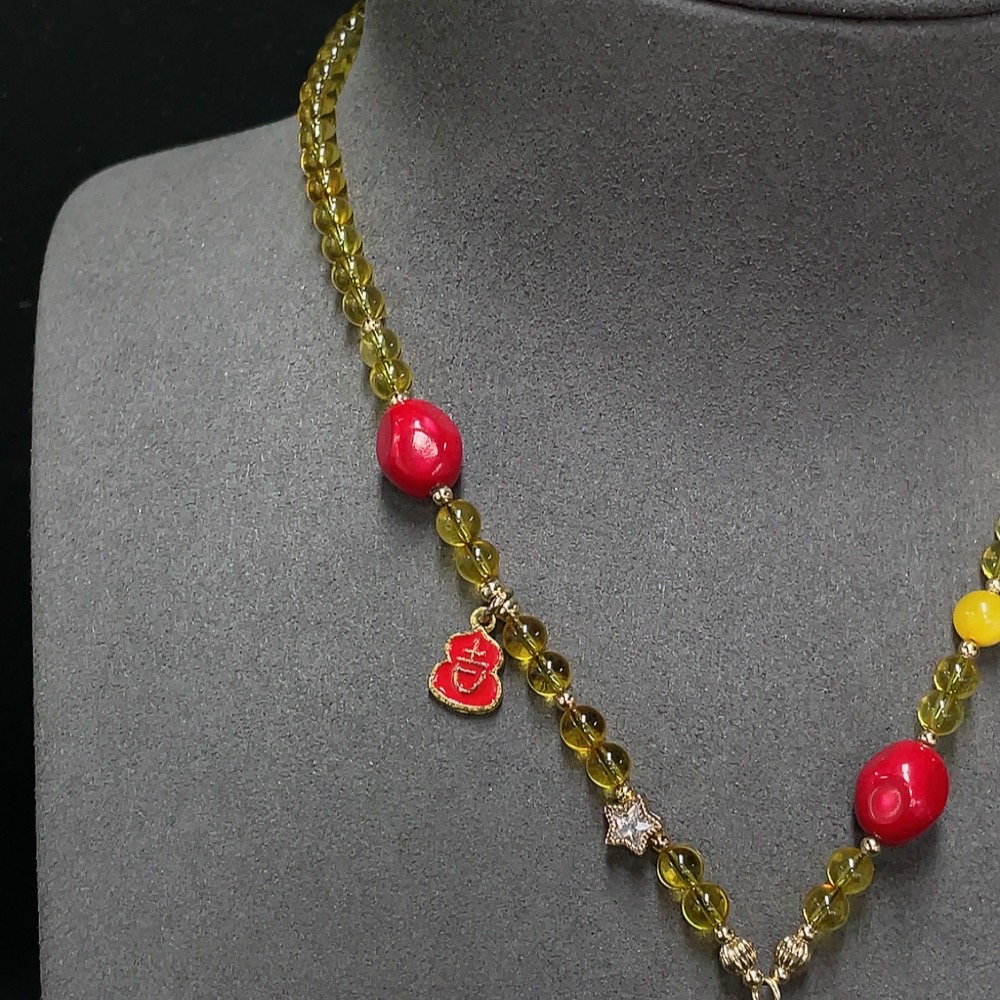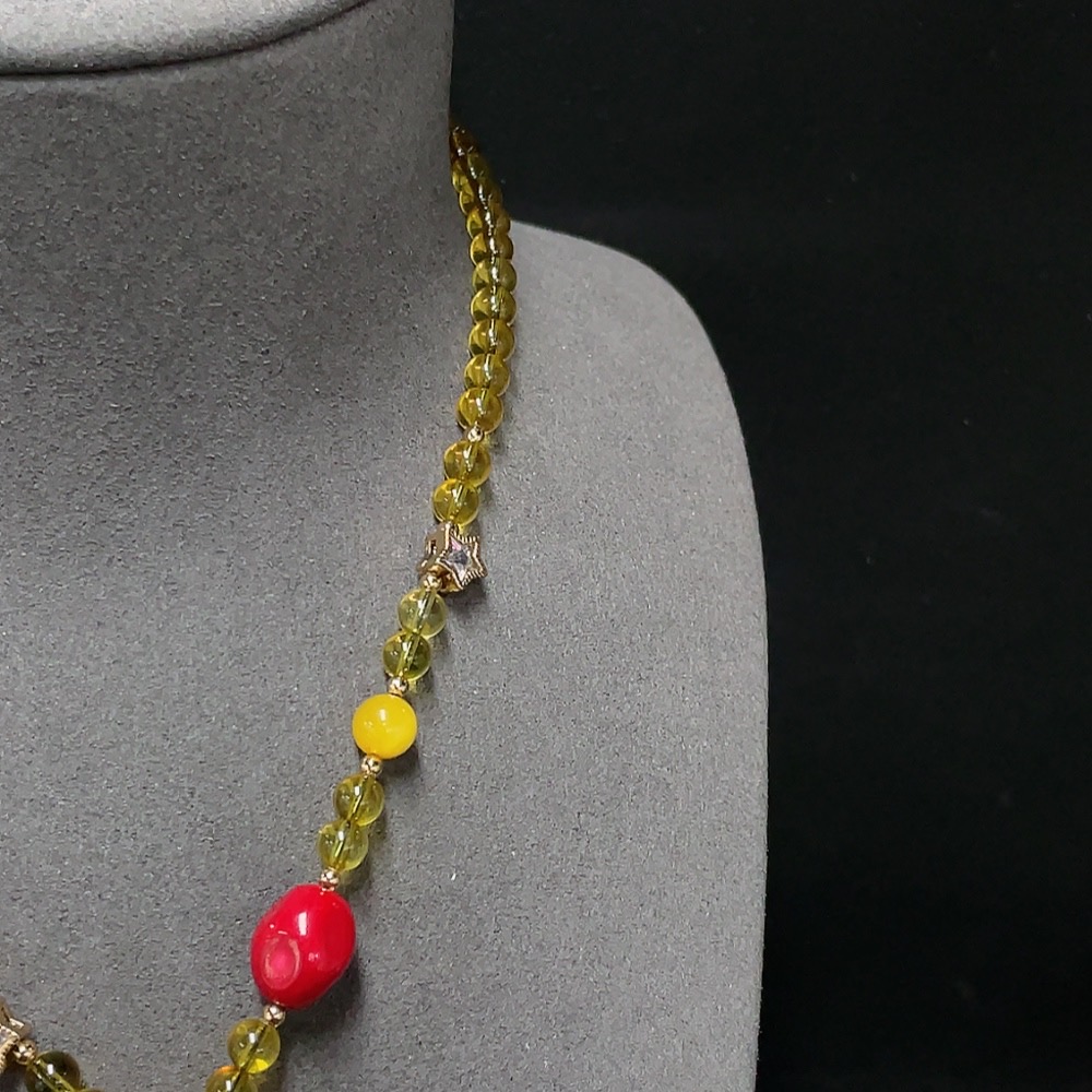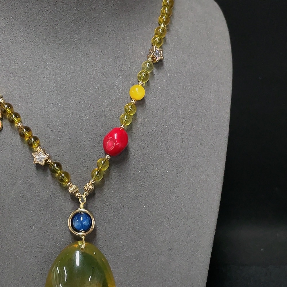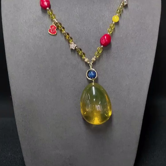 Amber Beeswax Pendant with Non-Natural Accent Stones, Non-Gold, Total Weight Approx. 30.16g Including Chain