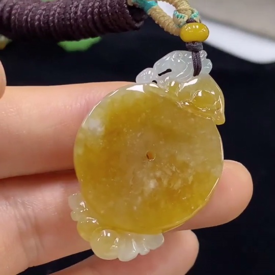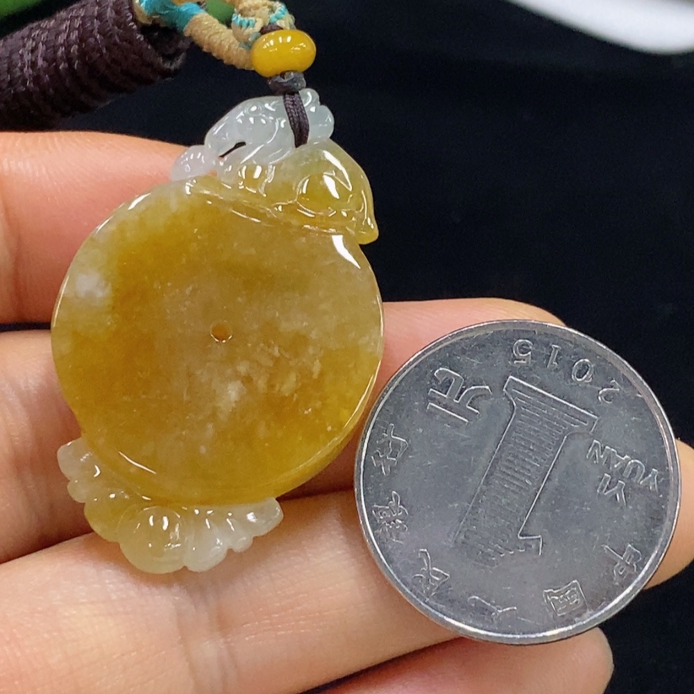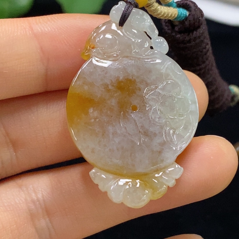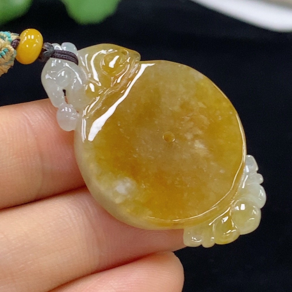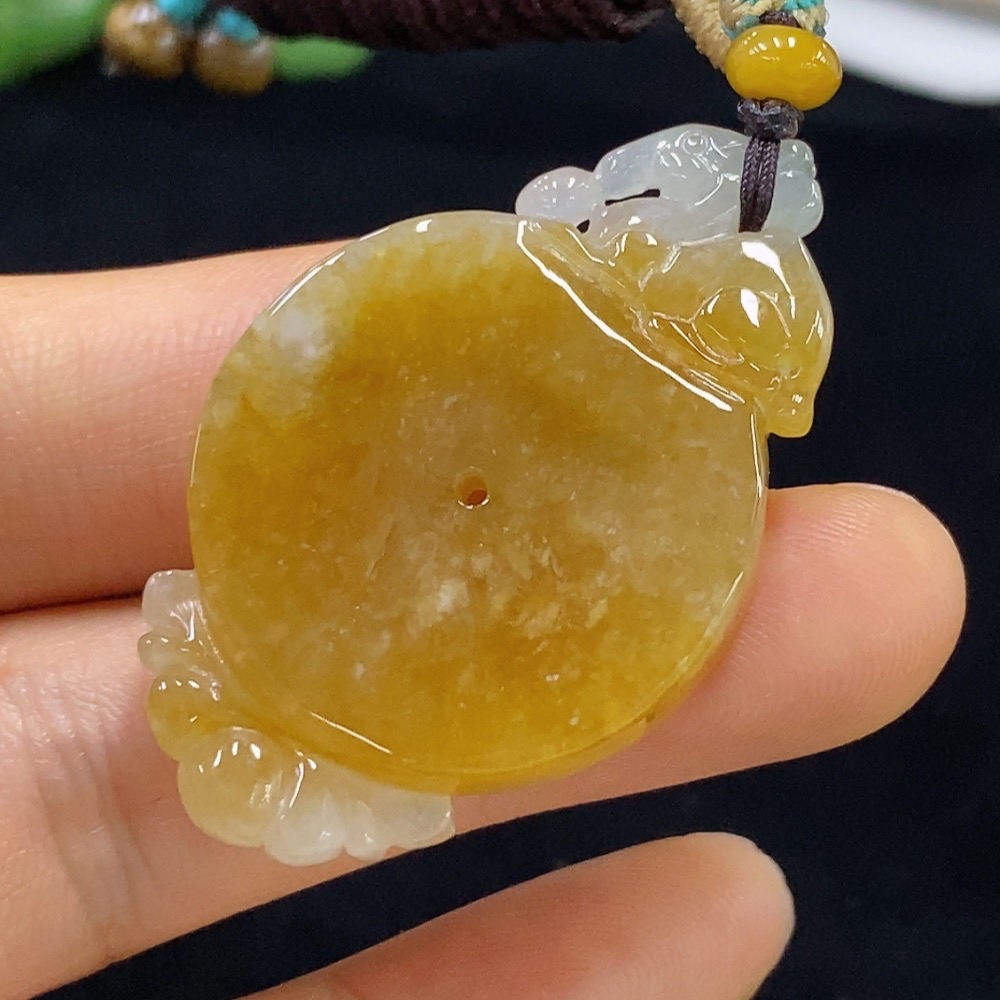 Jadeite Pendant, Total Weight Approx. 12.9g, Yellow Part Color Origin Undetermined