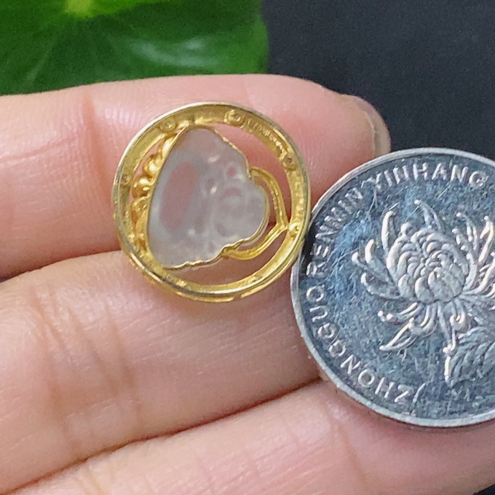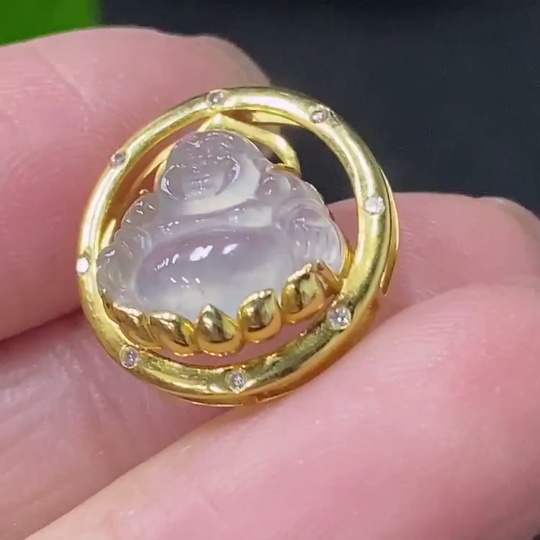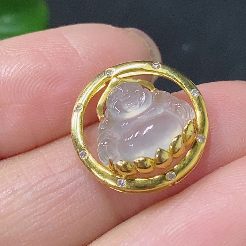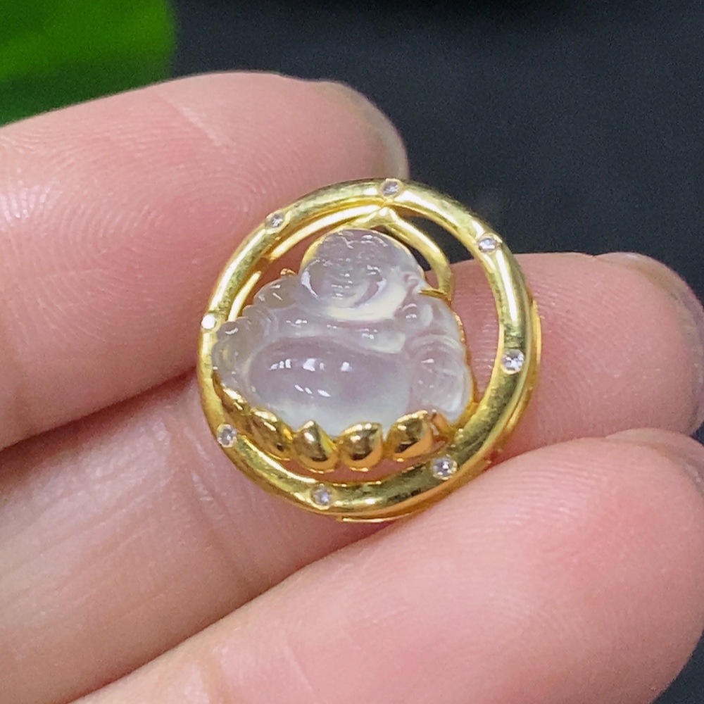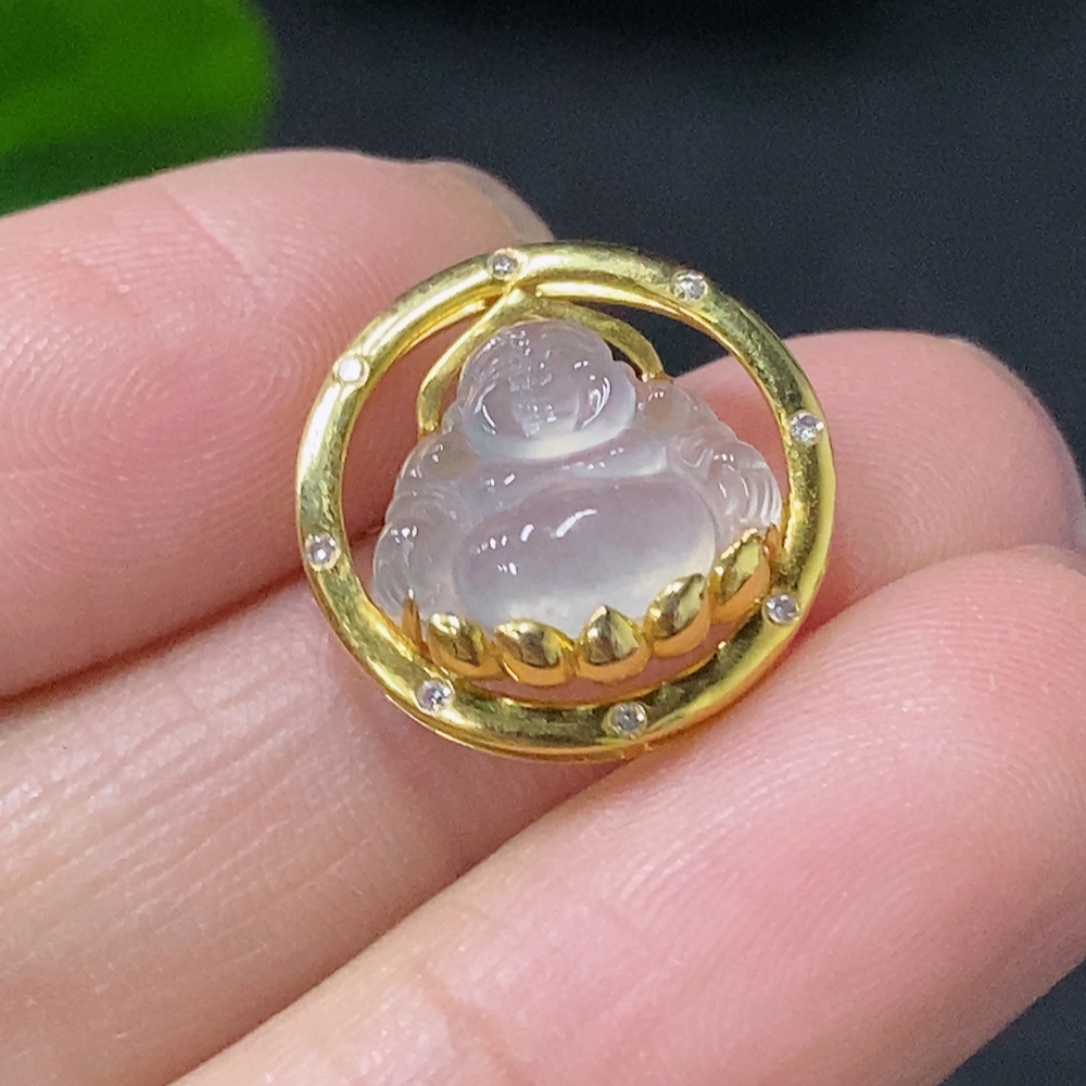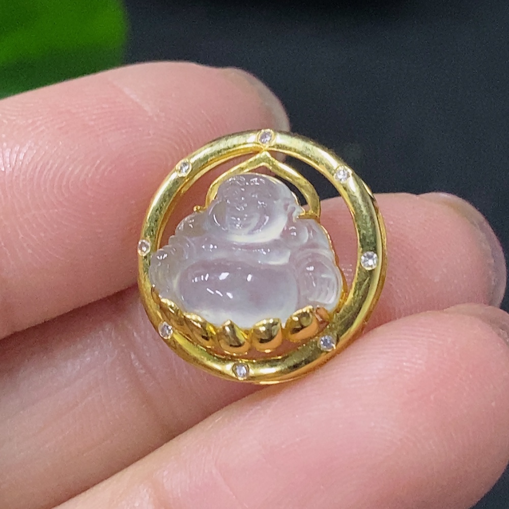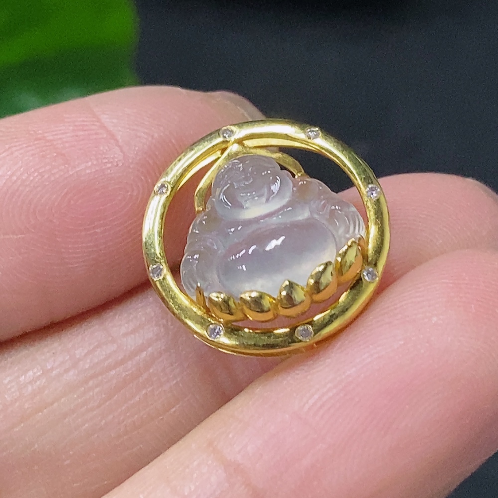 Jadeite Inlaid Buddha Pendant 18k with Diamond Accent Total Weight Approximately 1.52g