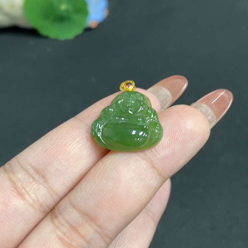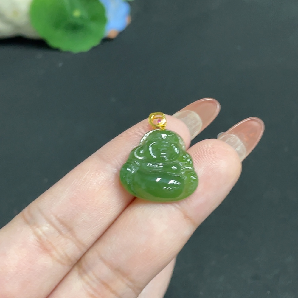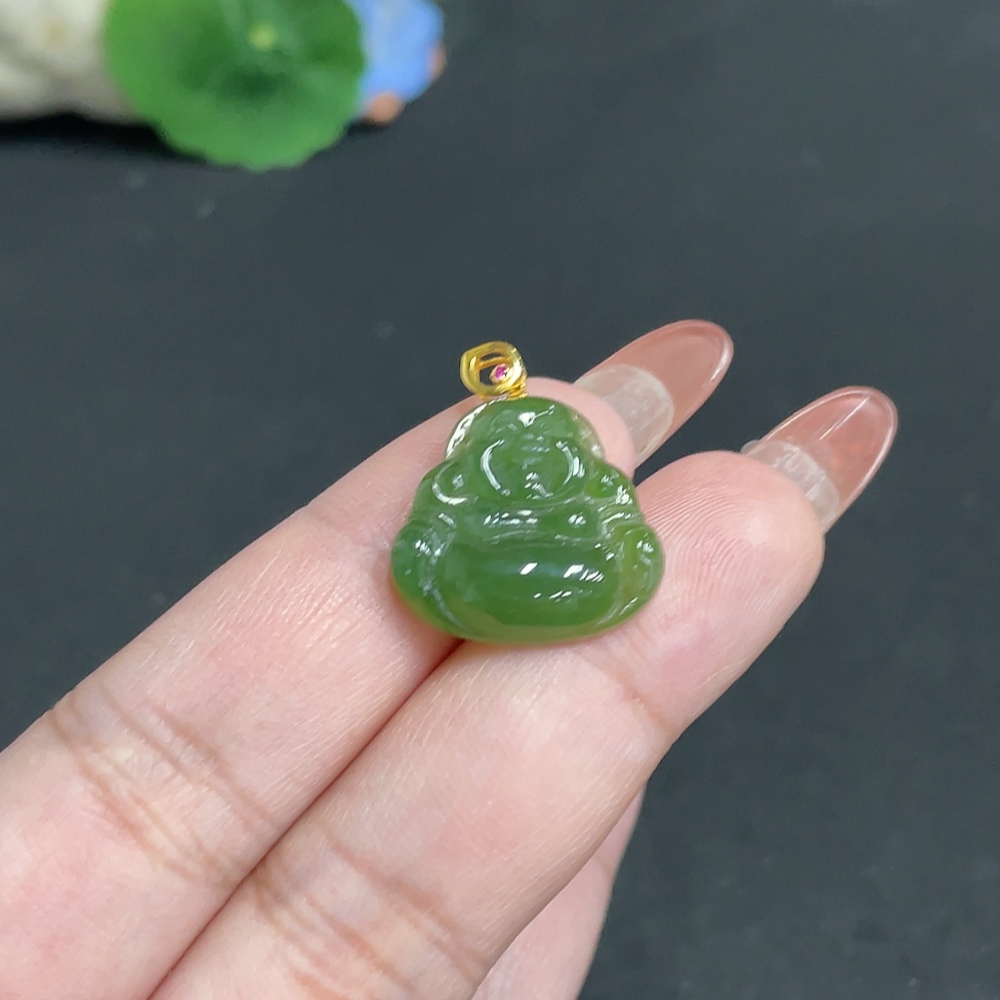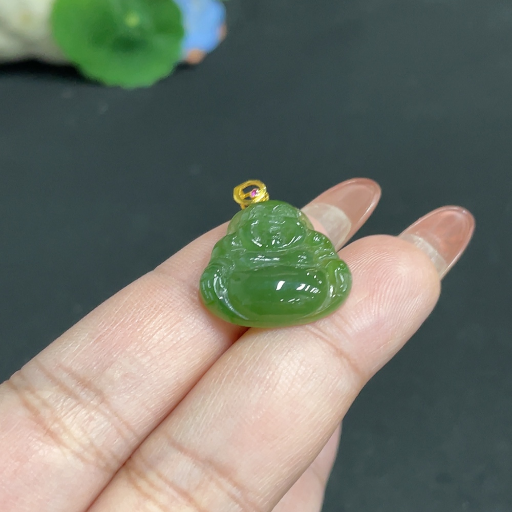 Hetian Jade Inlaid Pendant Buddha 18k Total Weight Approx. 2.8g
