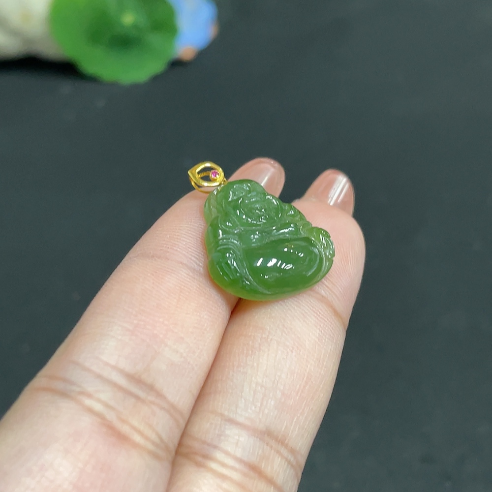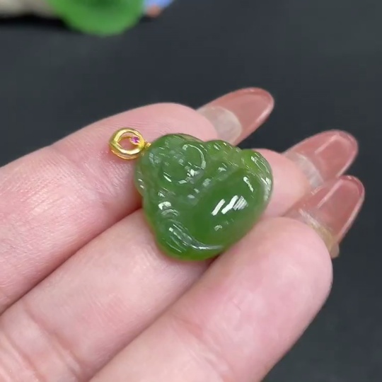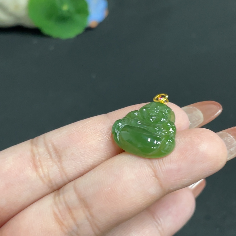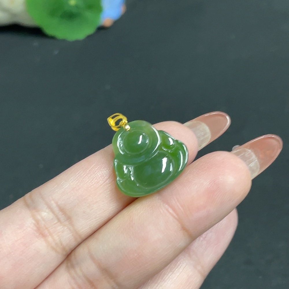 Hetian Jade Inlaid Pendant Buddha 18k Total Weight Approx. 2.8g