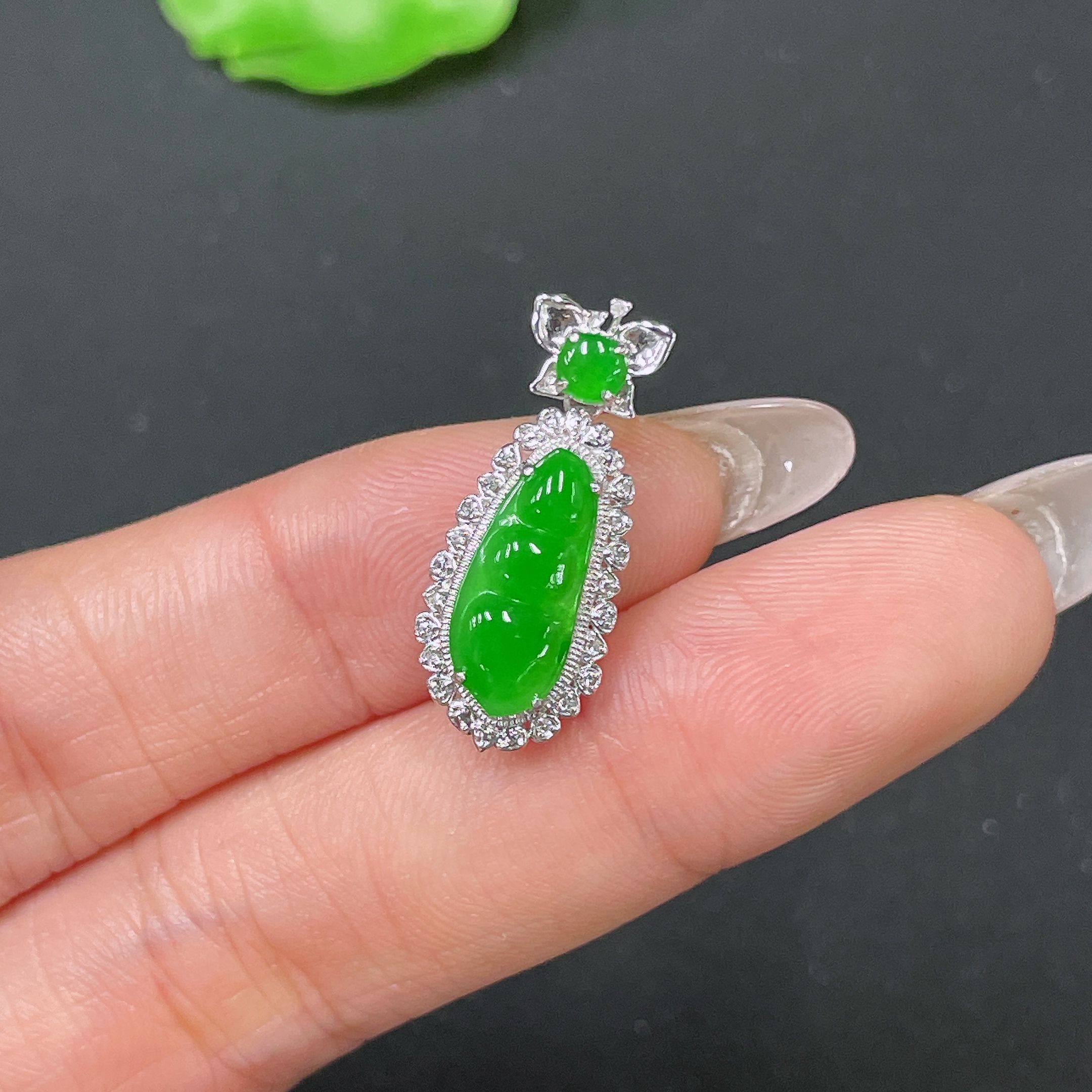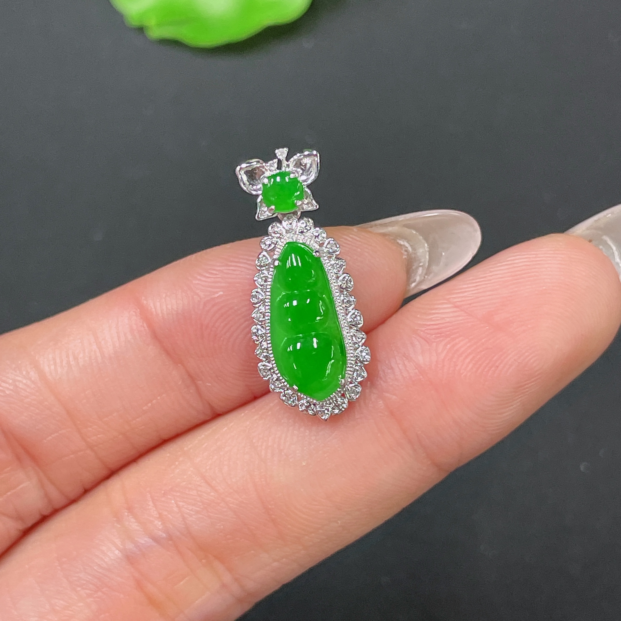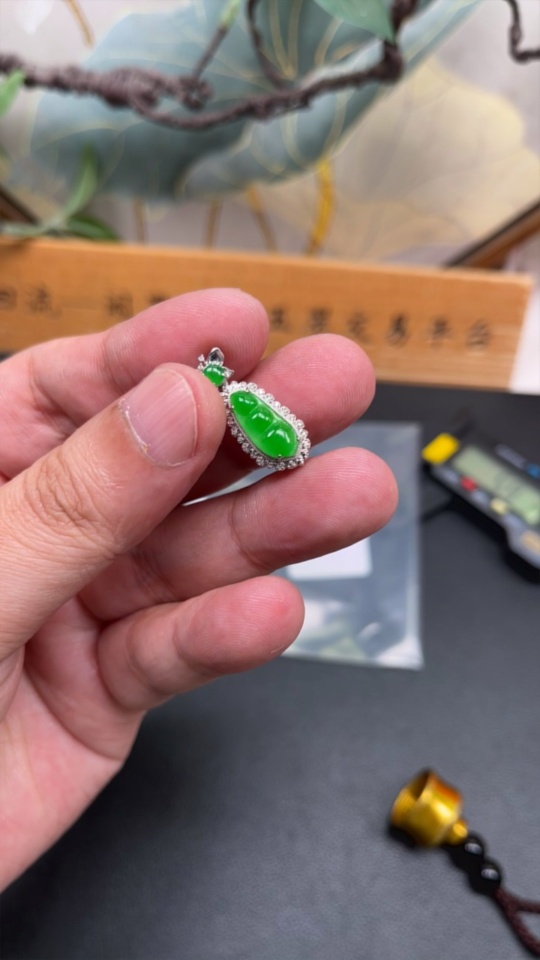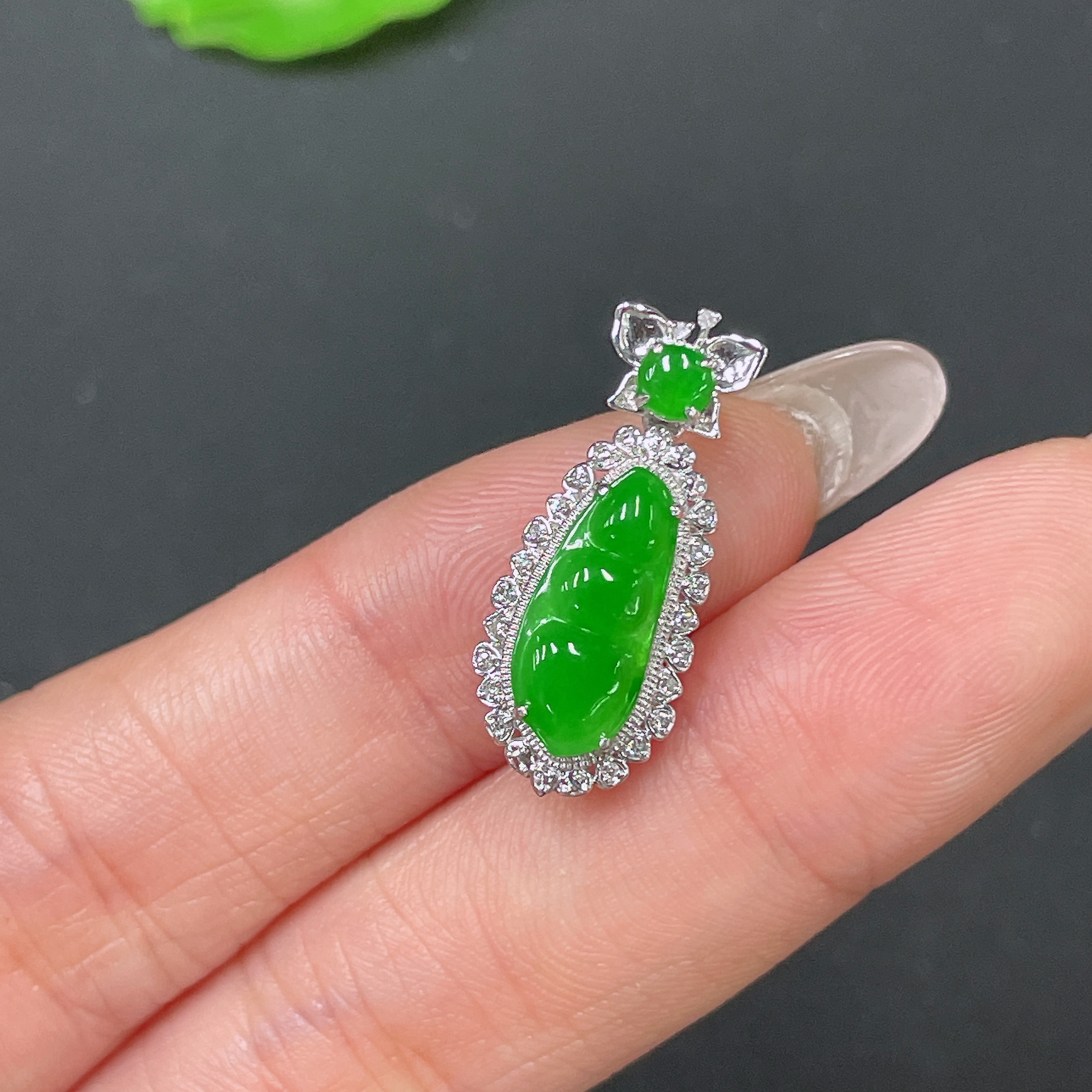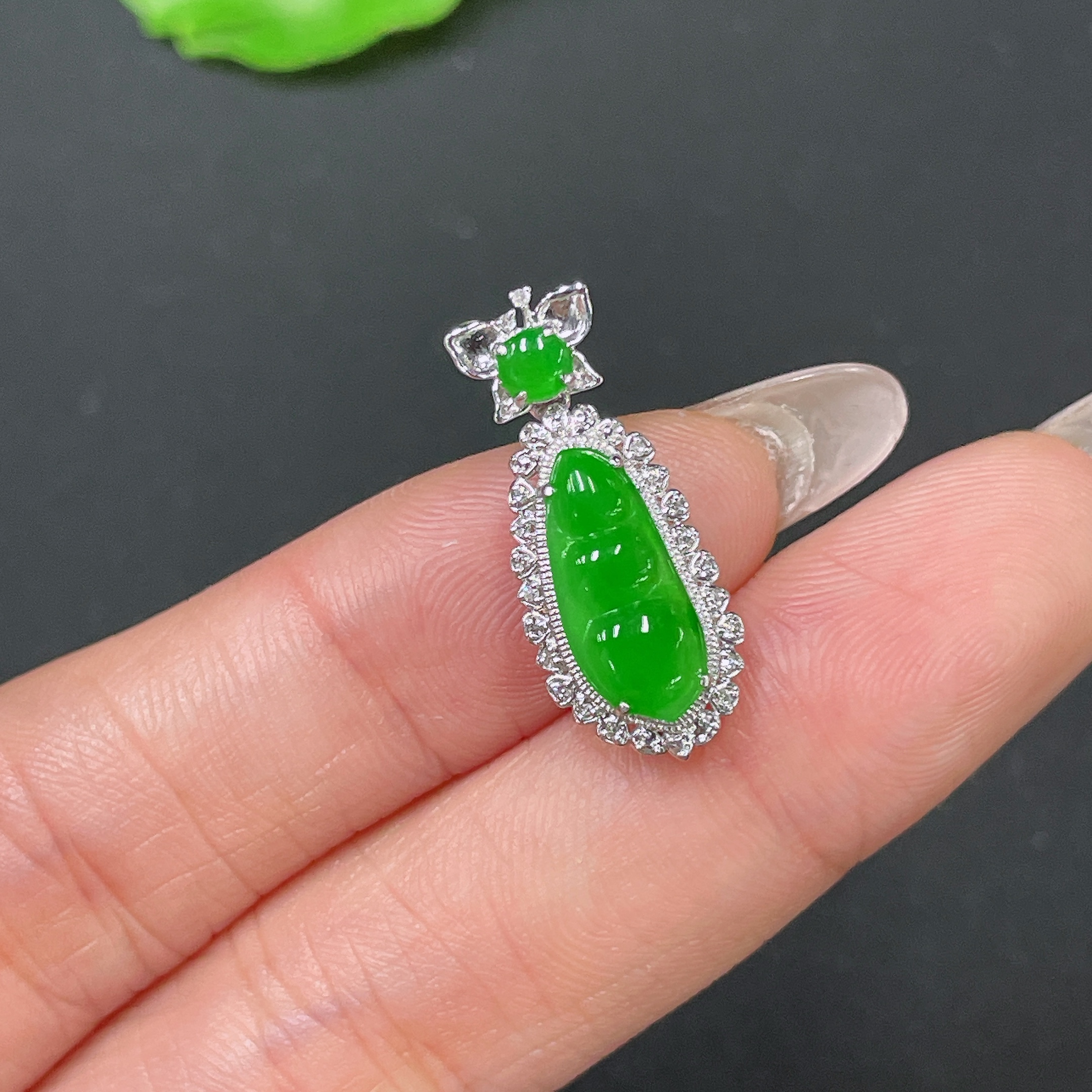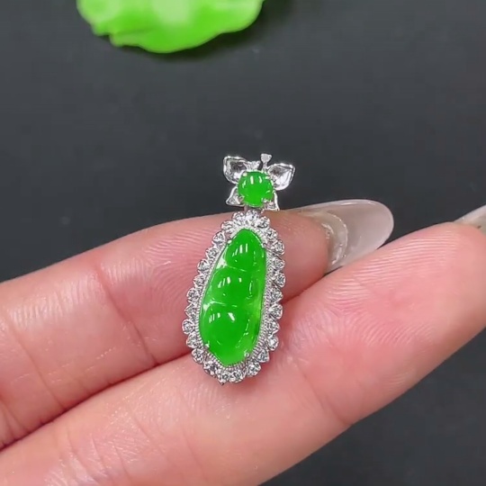 Jadeite Bean Pendant 18k Gold Set with Diamond, Total Weight Approx. 1.7g