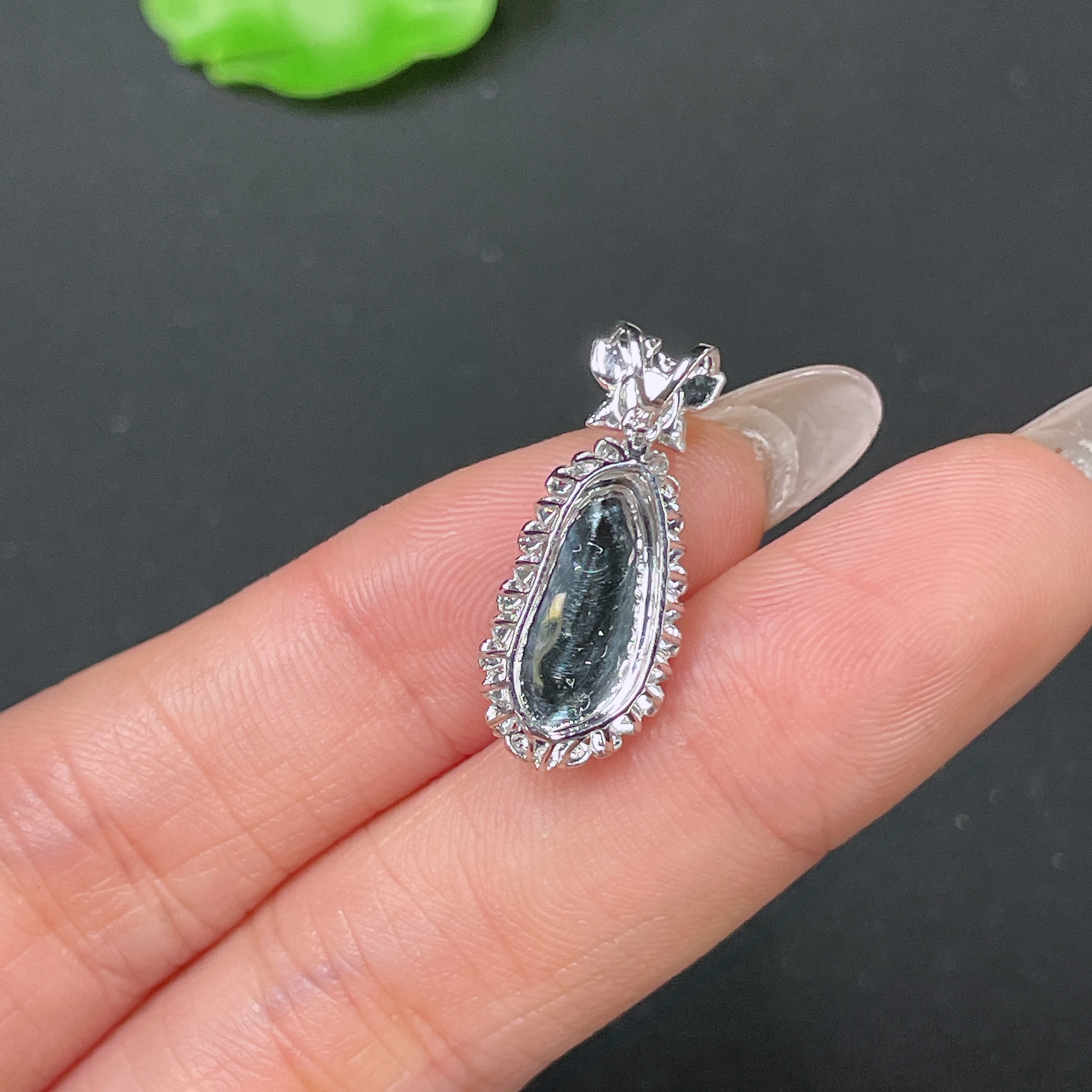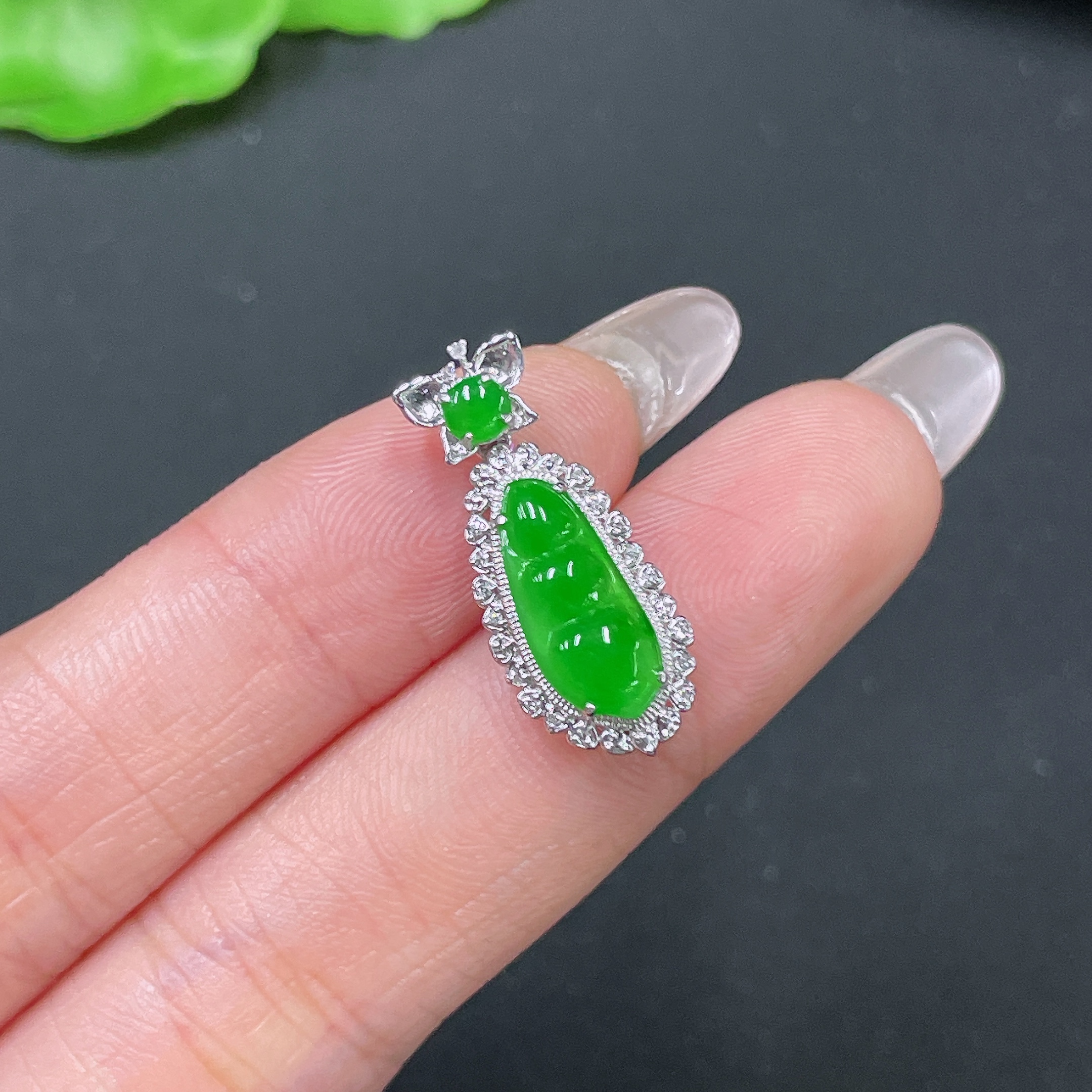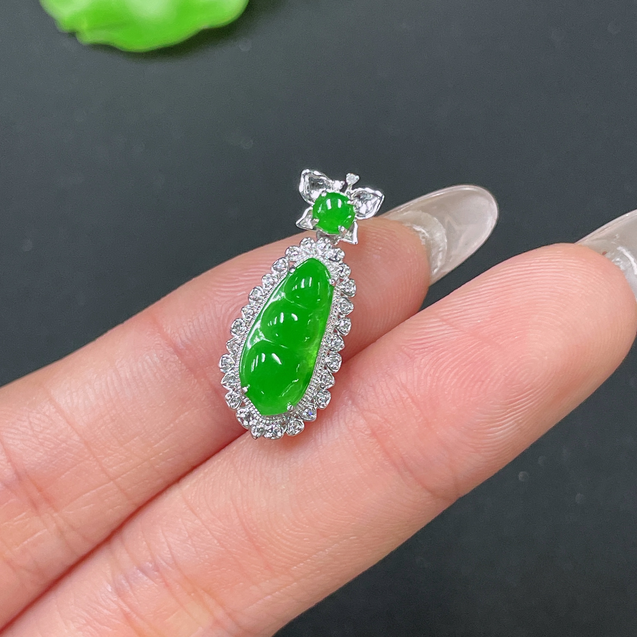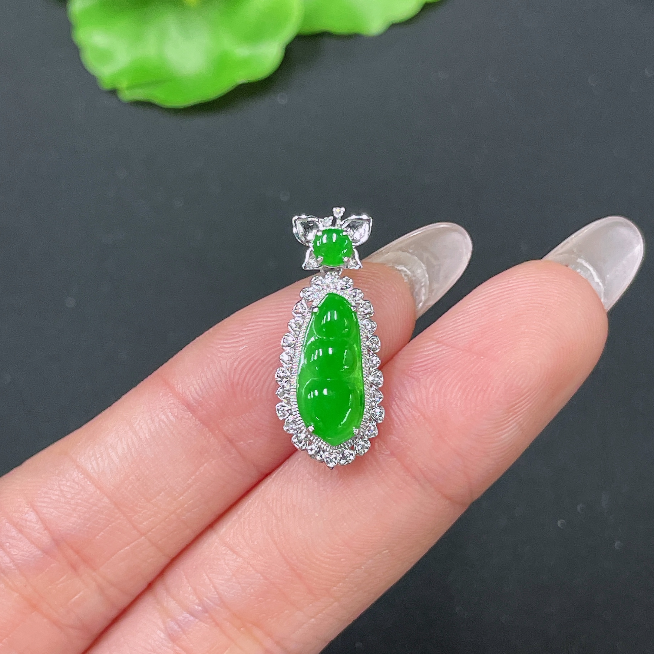 Jadeite Bean Pendant 18k Gold Set with Diamond, Total Weight Approx. 1.7g