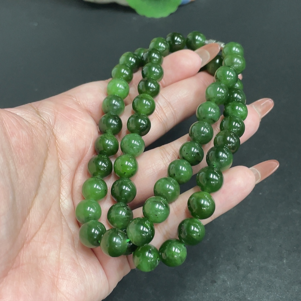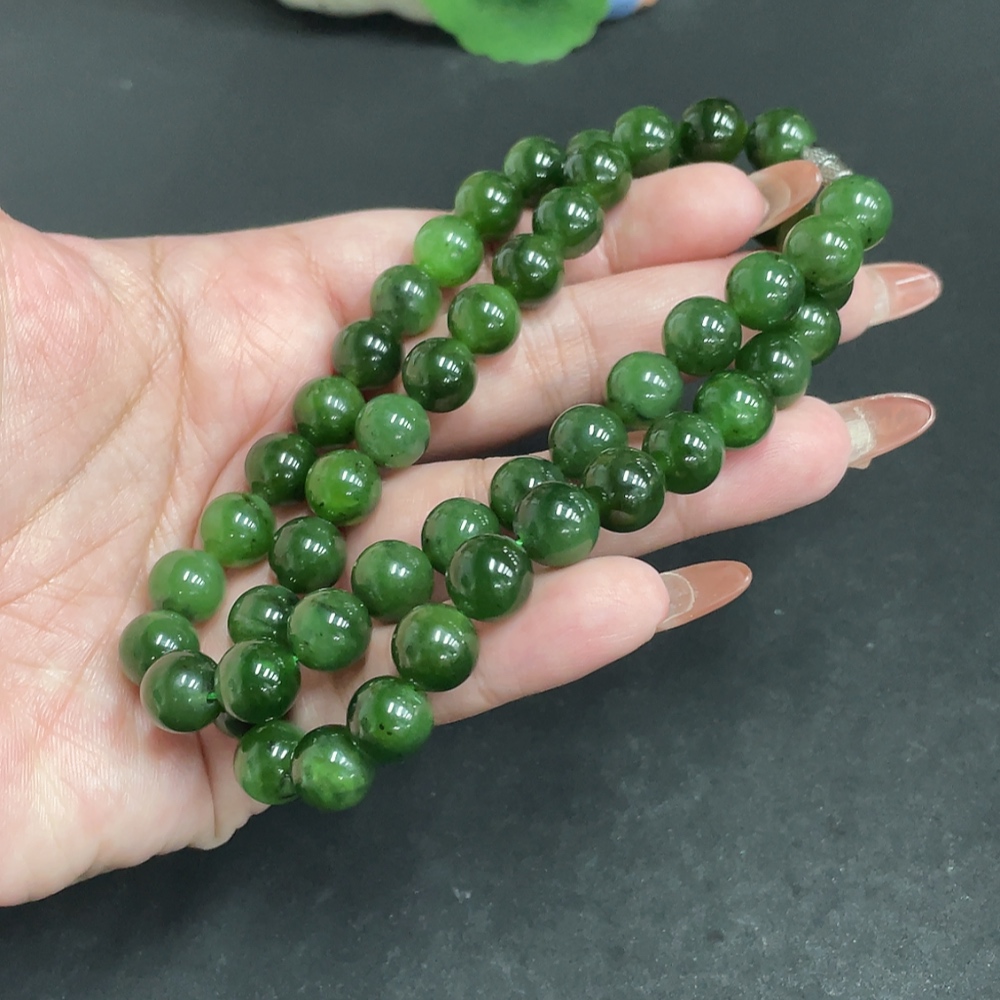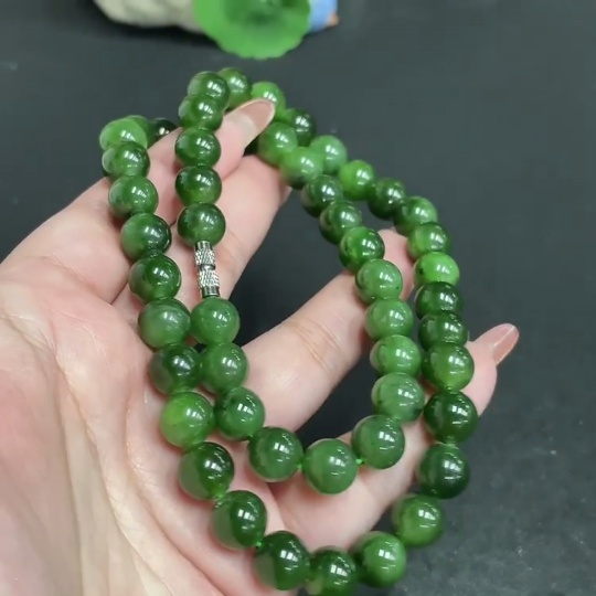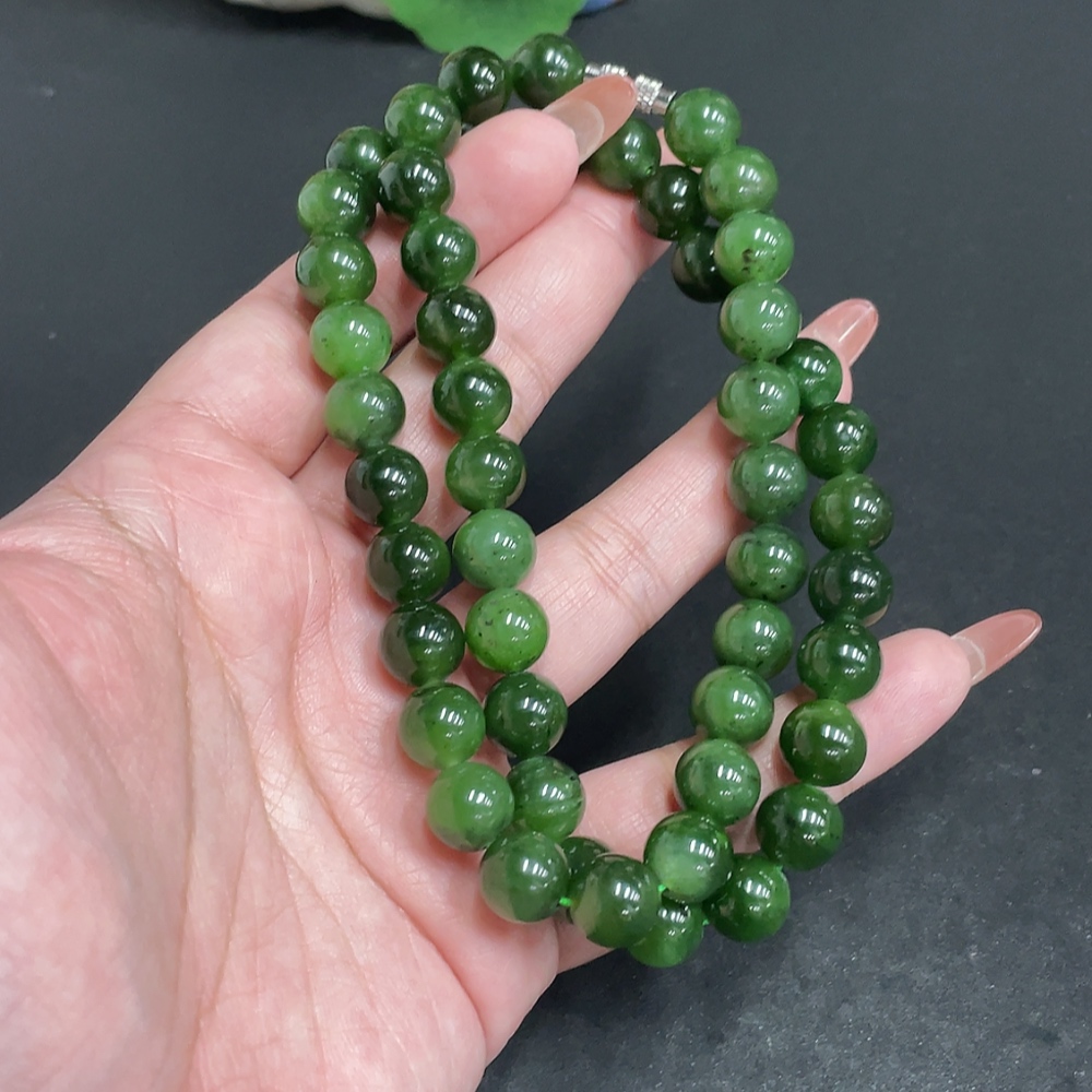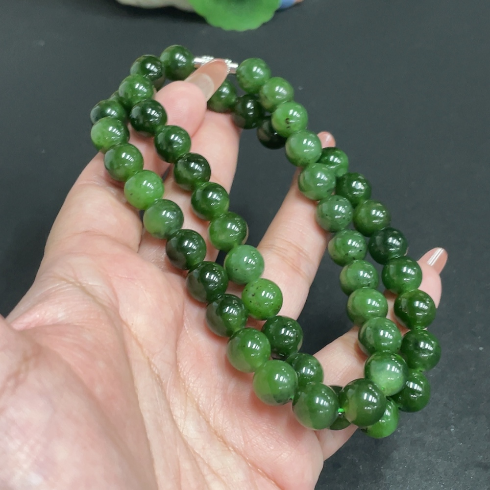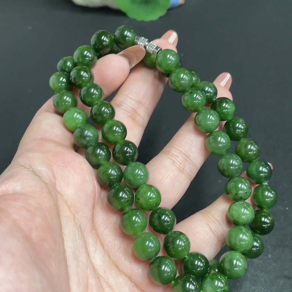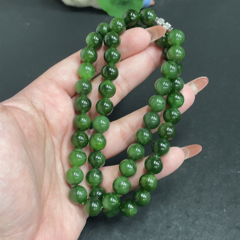 Hetian Jade Jasper Bead Necklace, Approx. 9.6 mm, Total Weight Approx. 80.7g