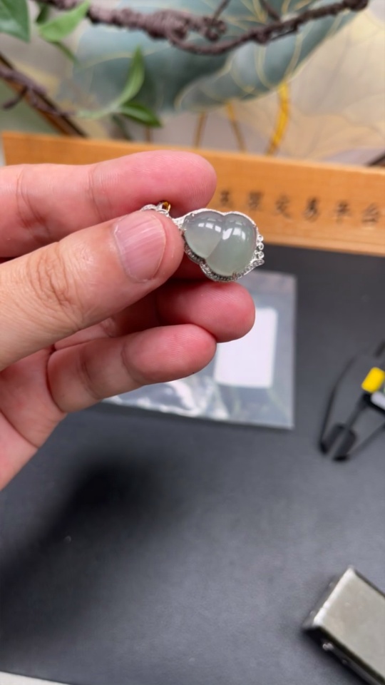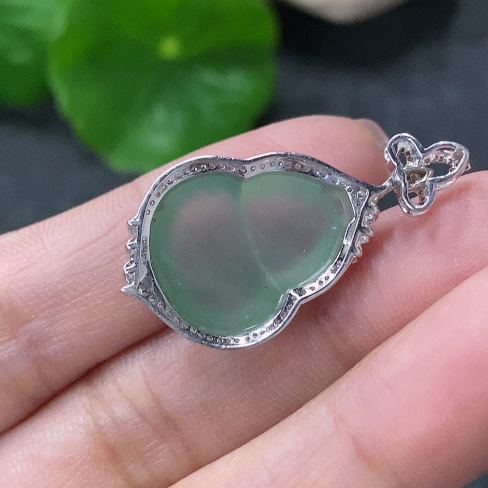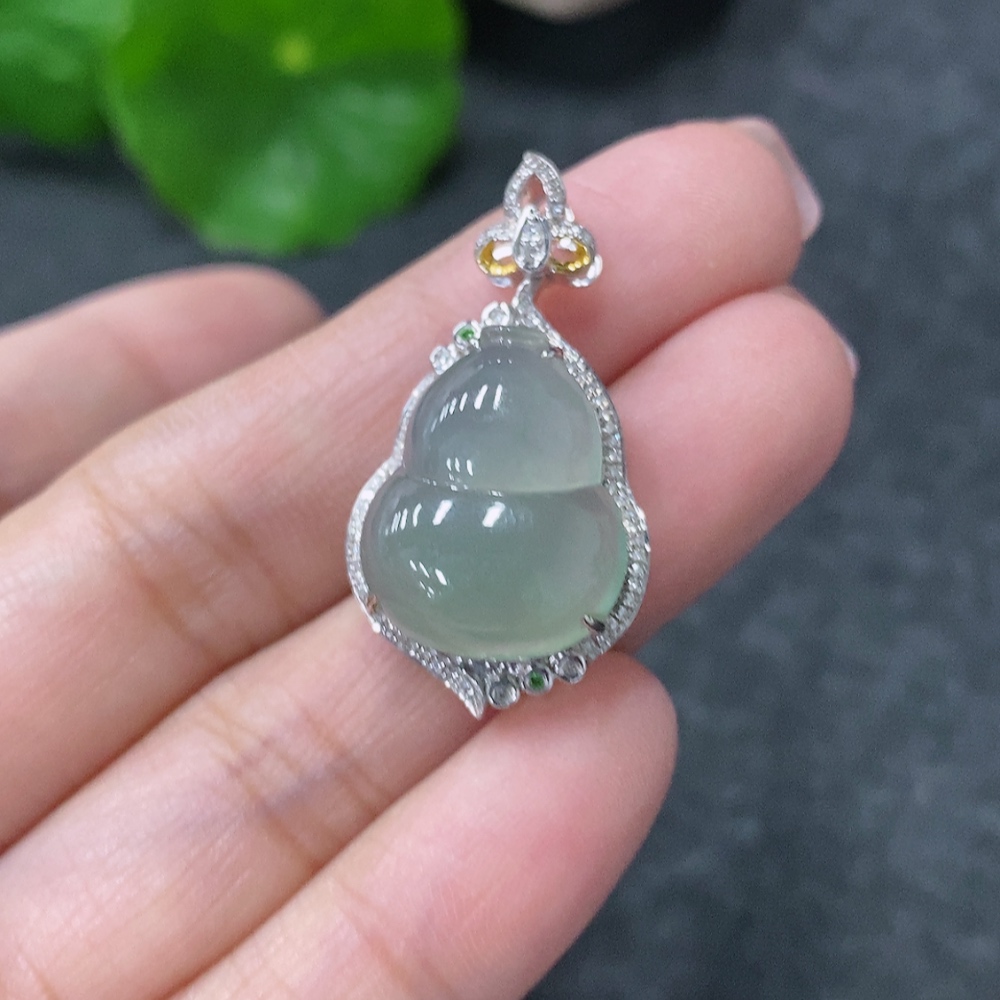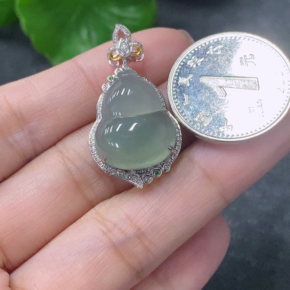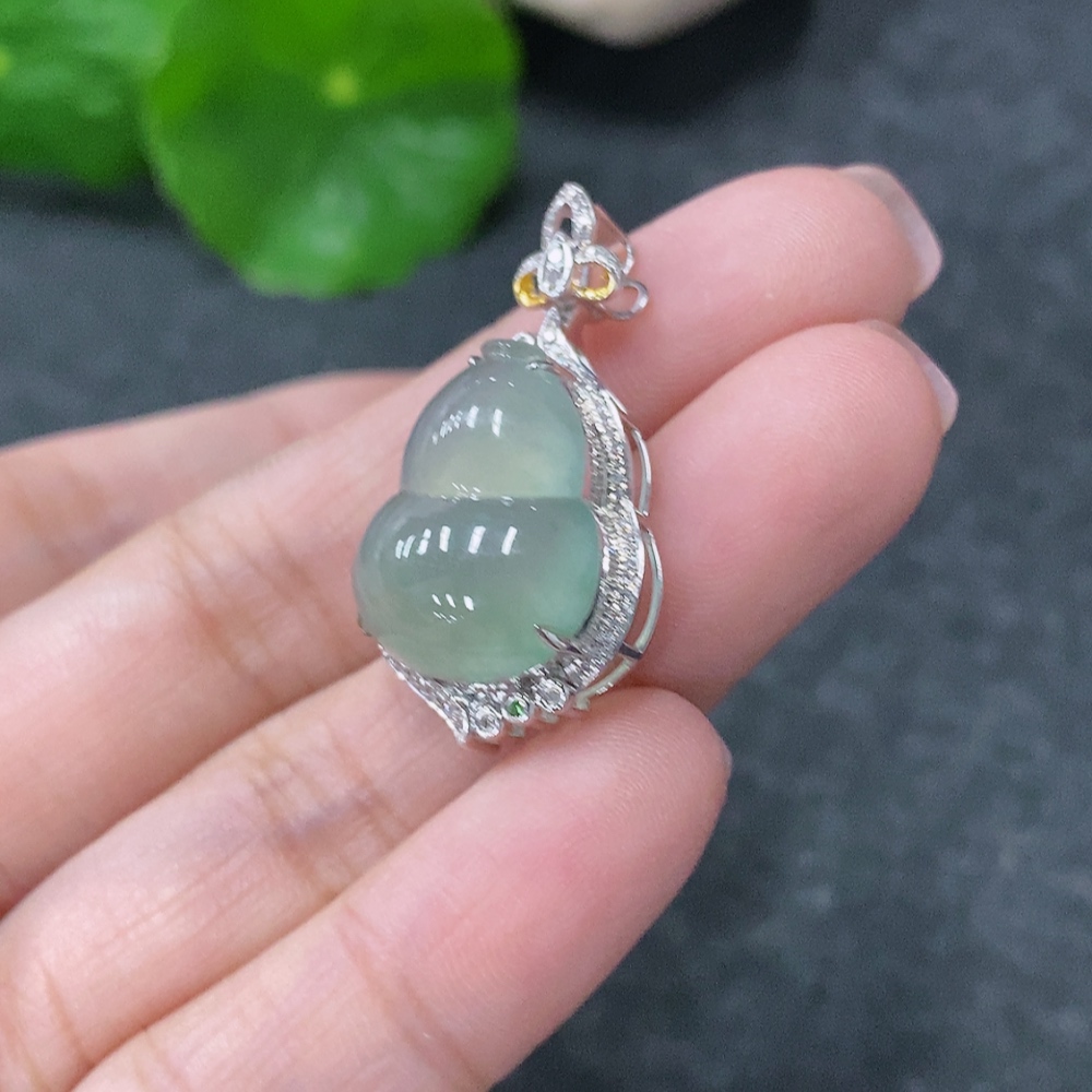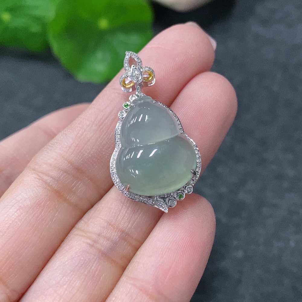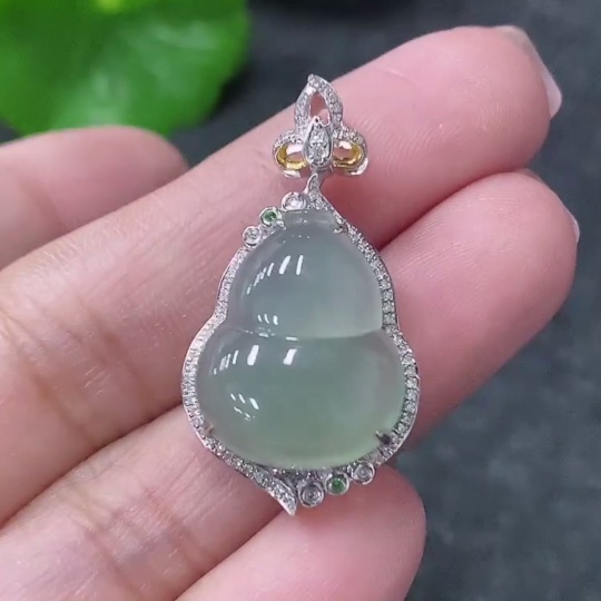 Jadeite Inlaid Gourd Pendant 18k with Diamond Accents Colorless Total Weight Approx. 3.62g