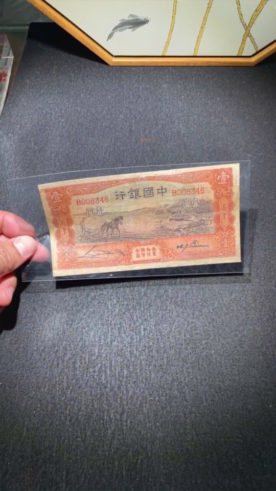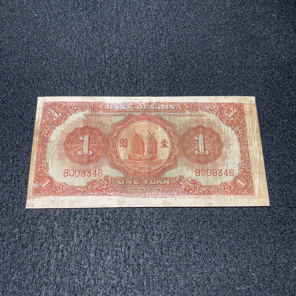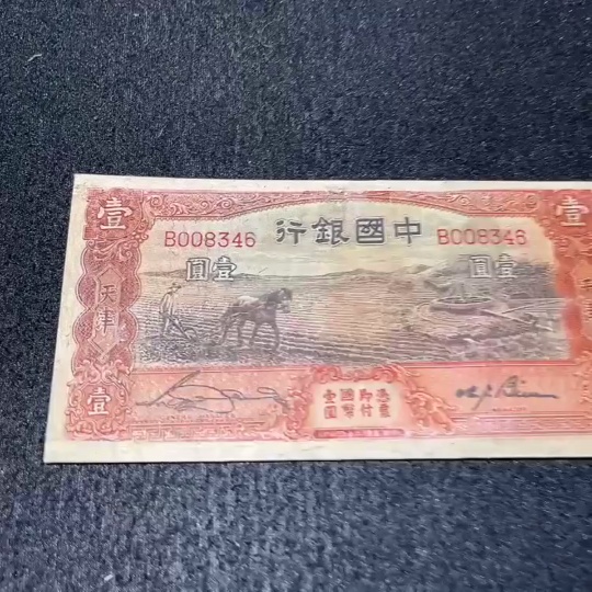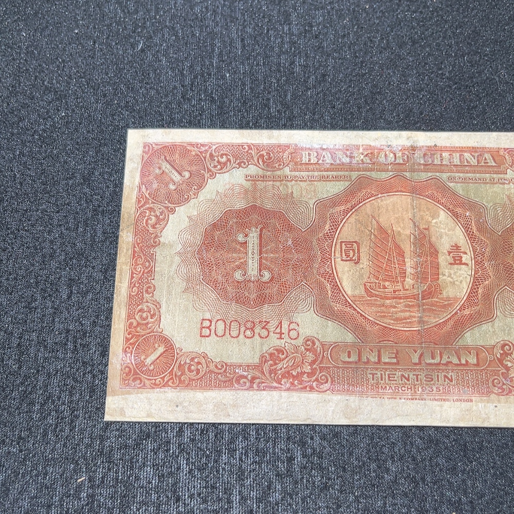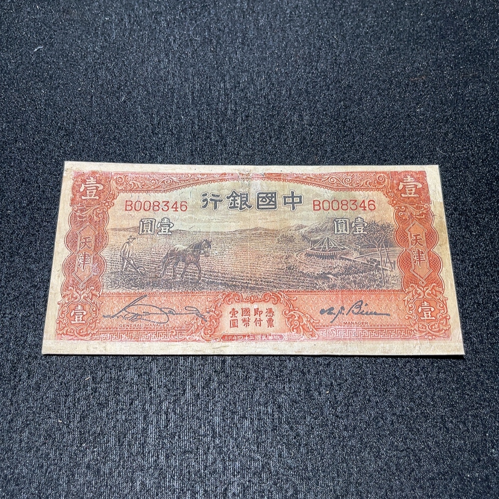 Trezaar - Bank of China One Yuan - Plowing with Horse - 1935 De La Rue Printed Banknote