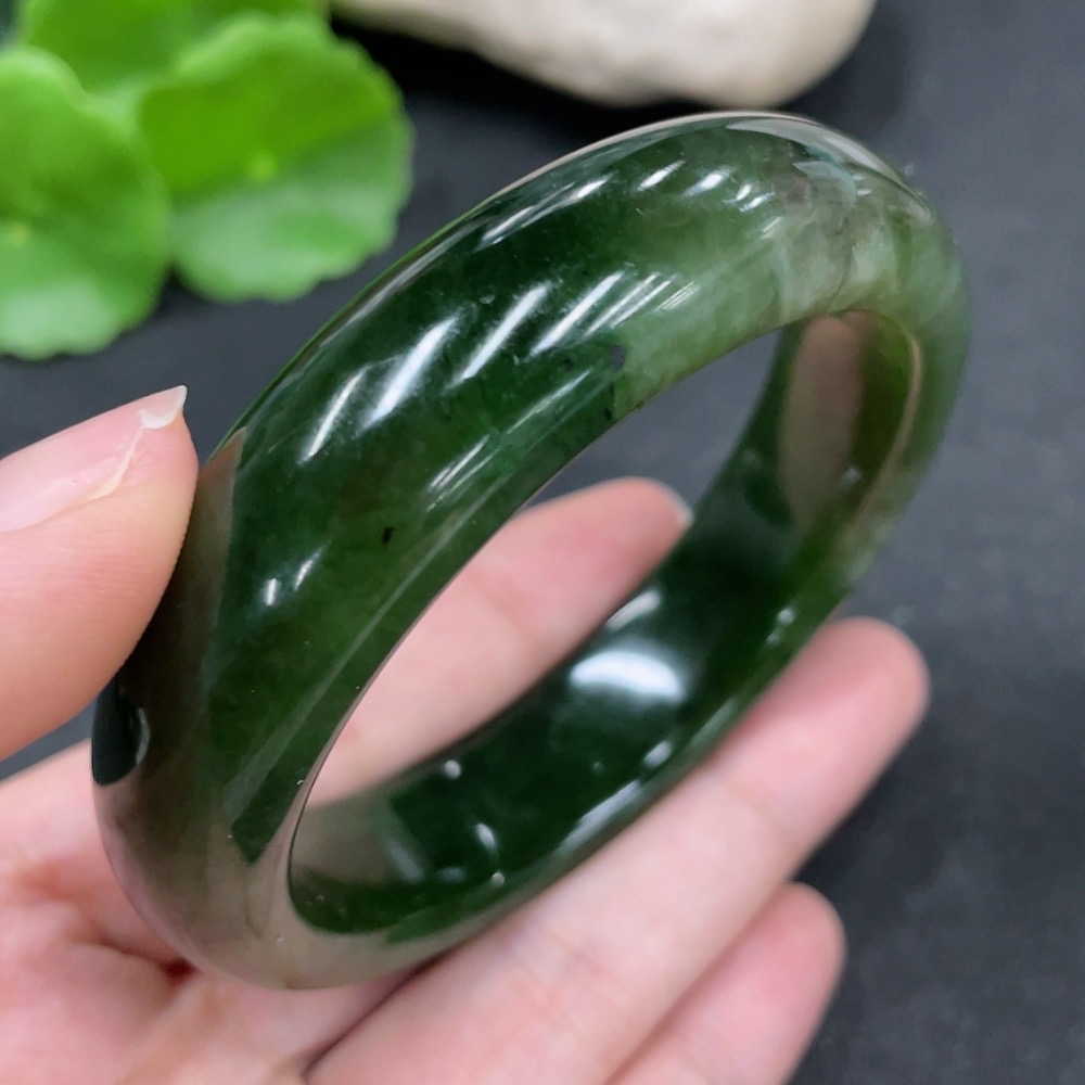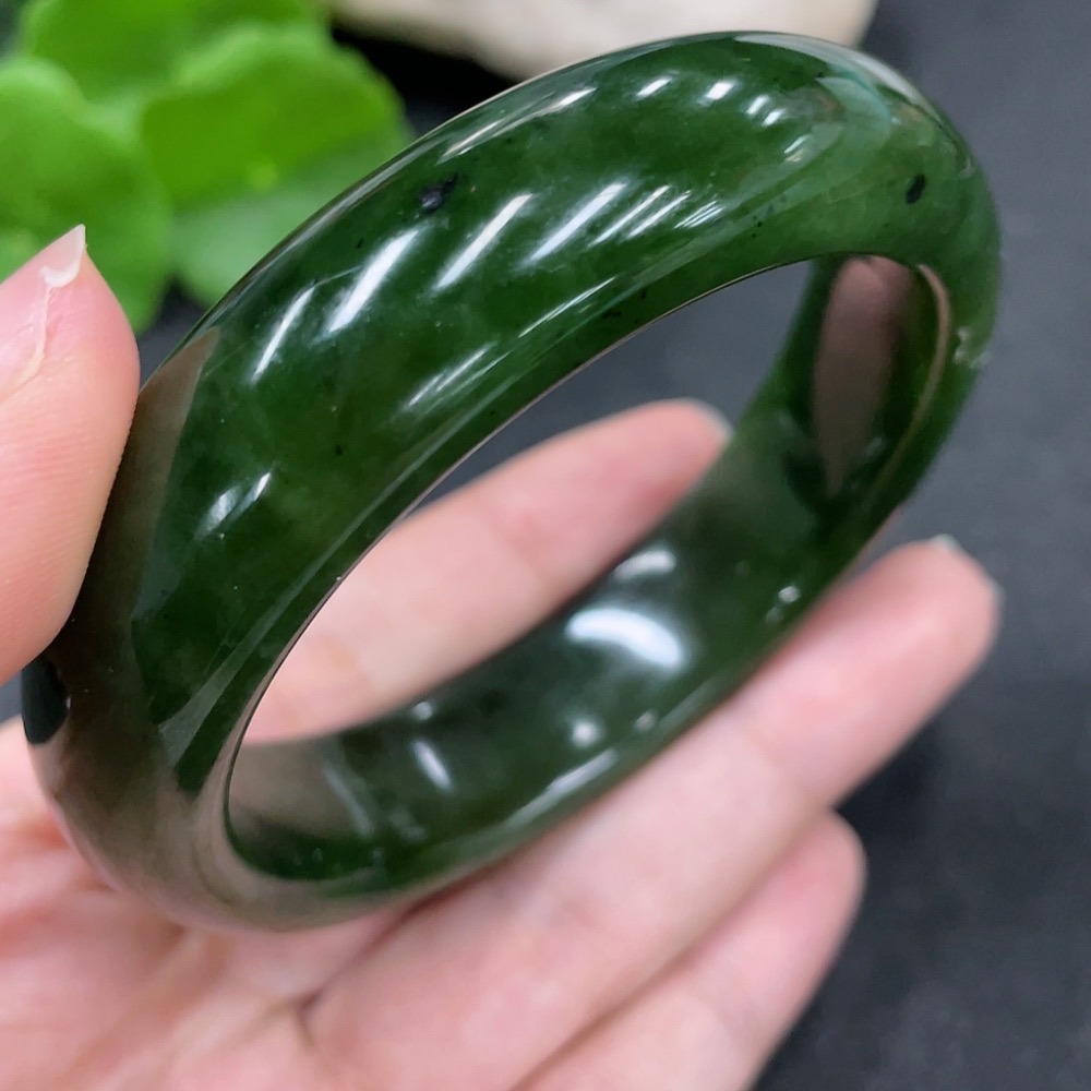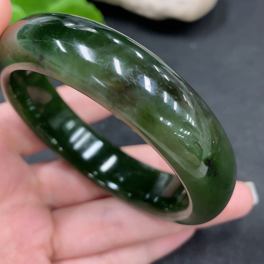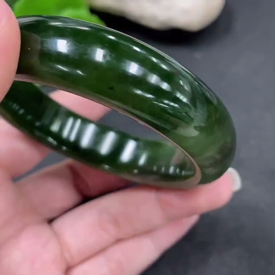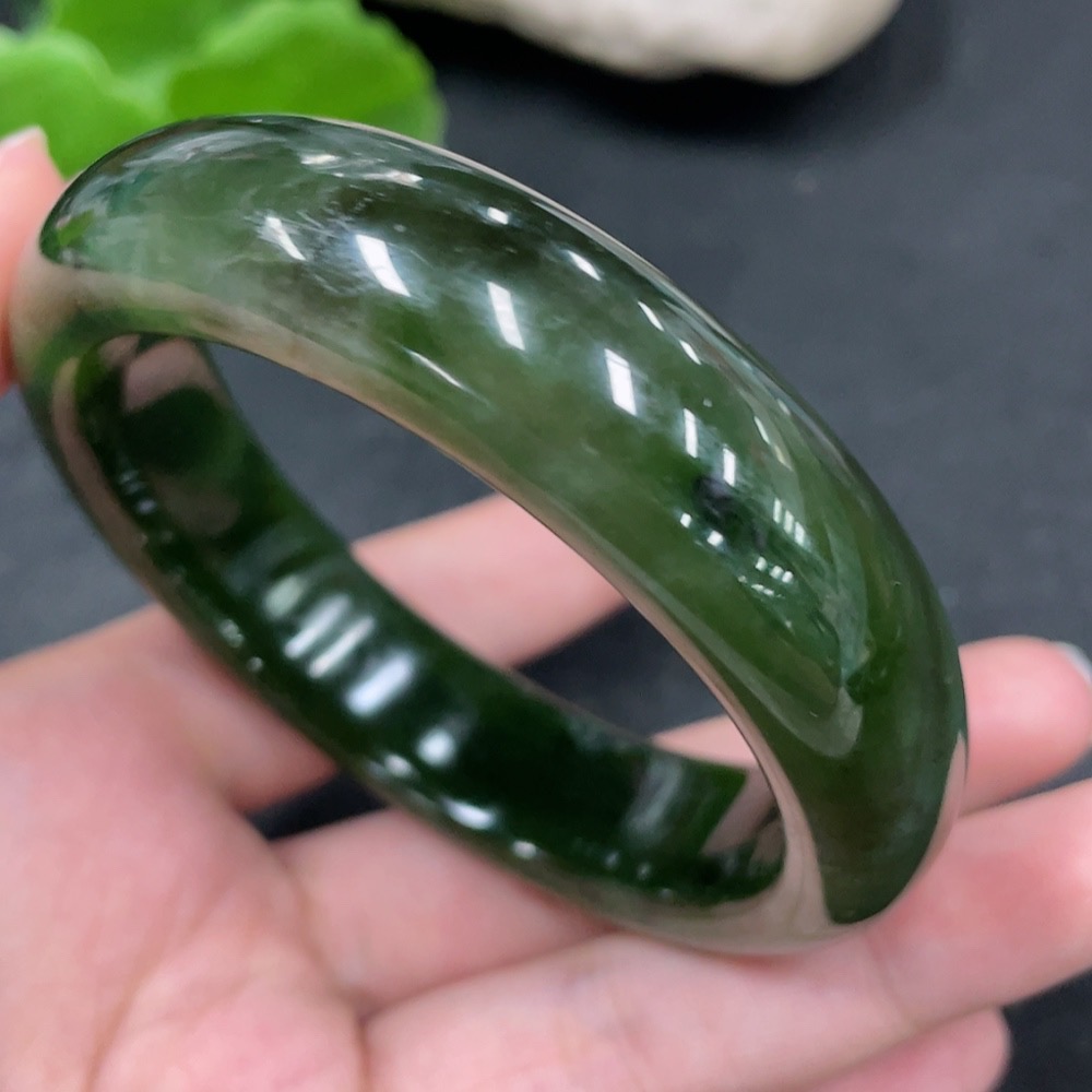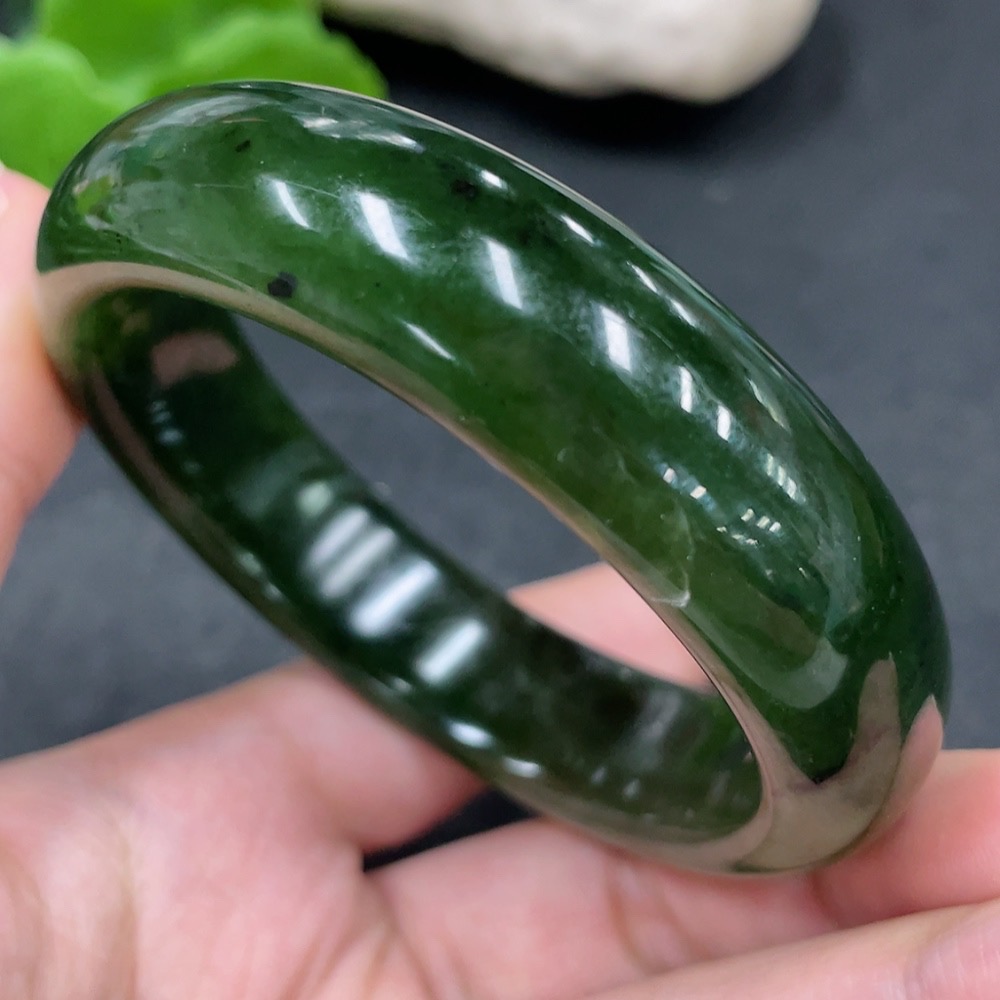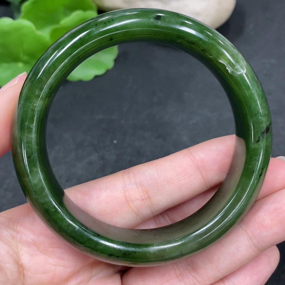 Hetian Jade Green Jade Round Bracelet Size 58.1 Total Weight Approx. 76g