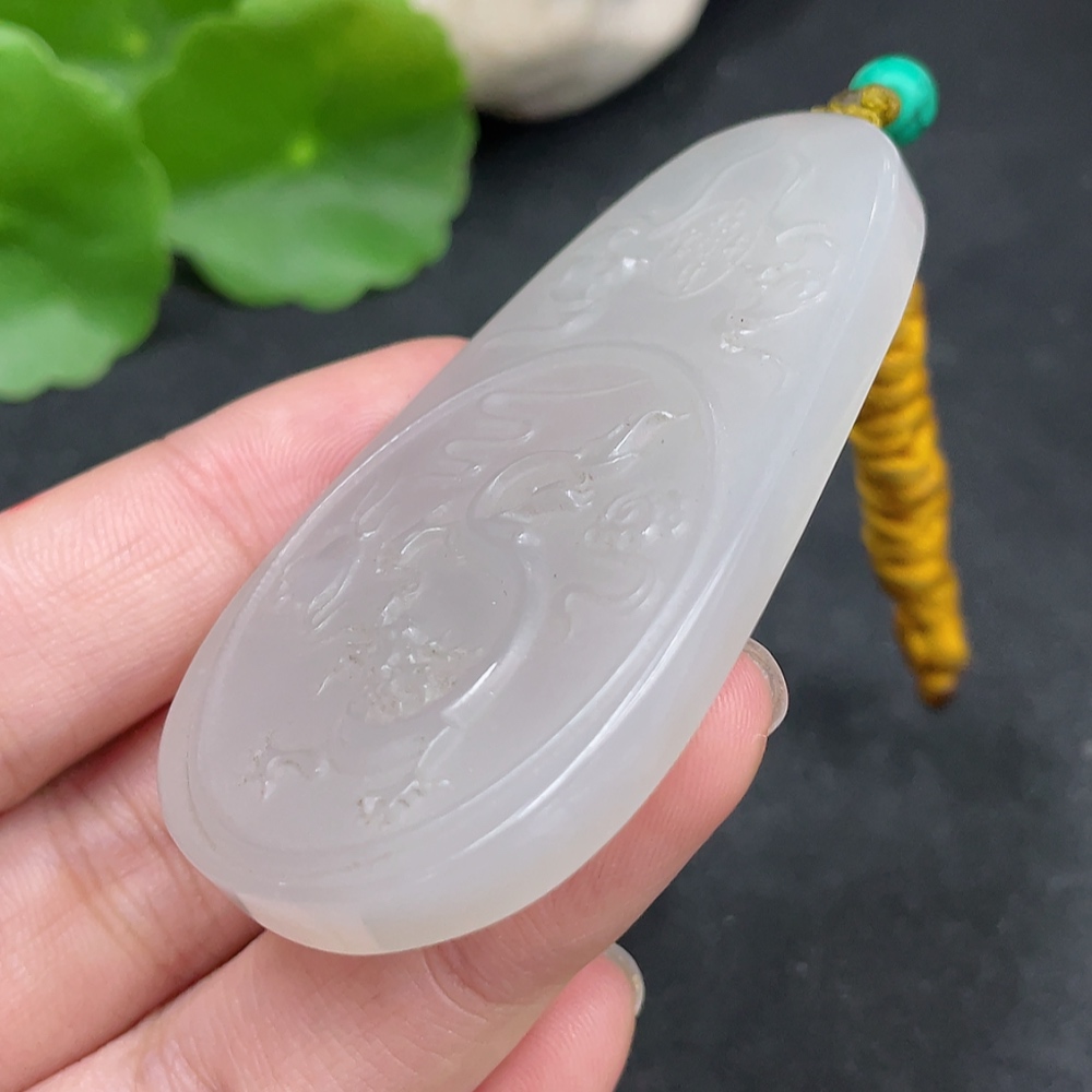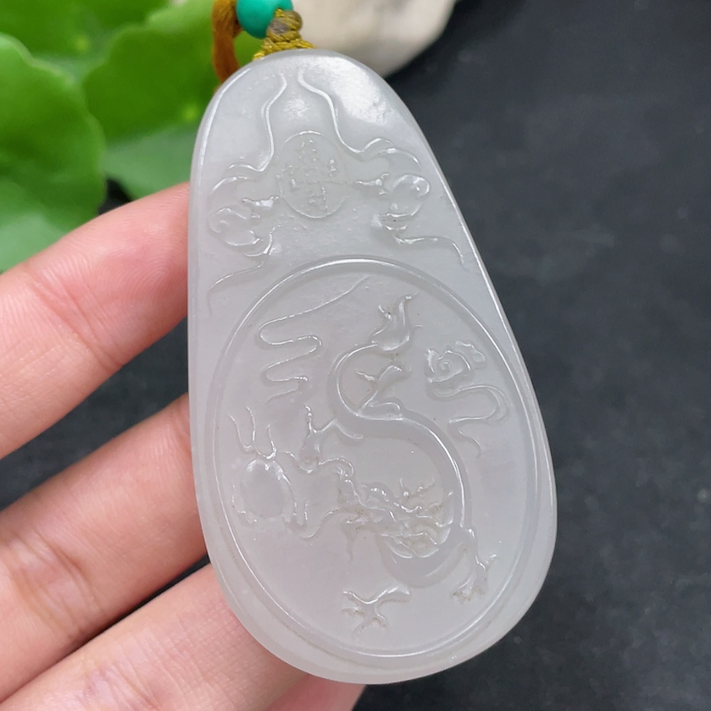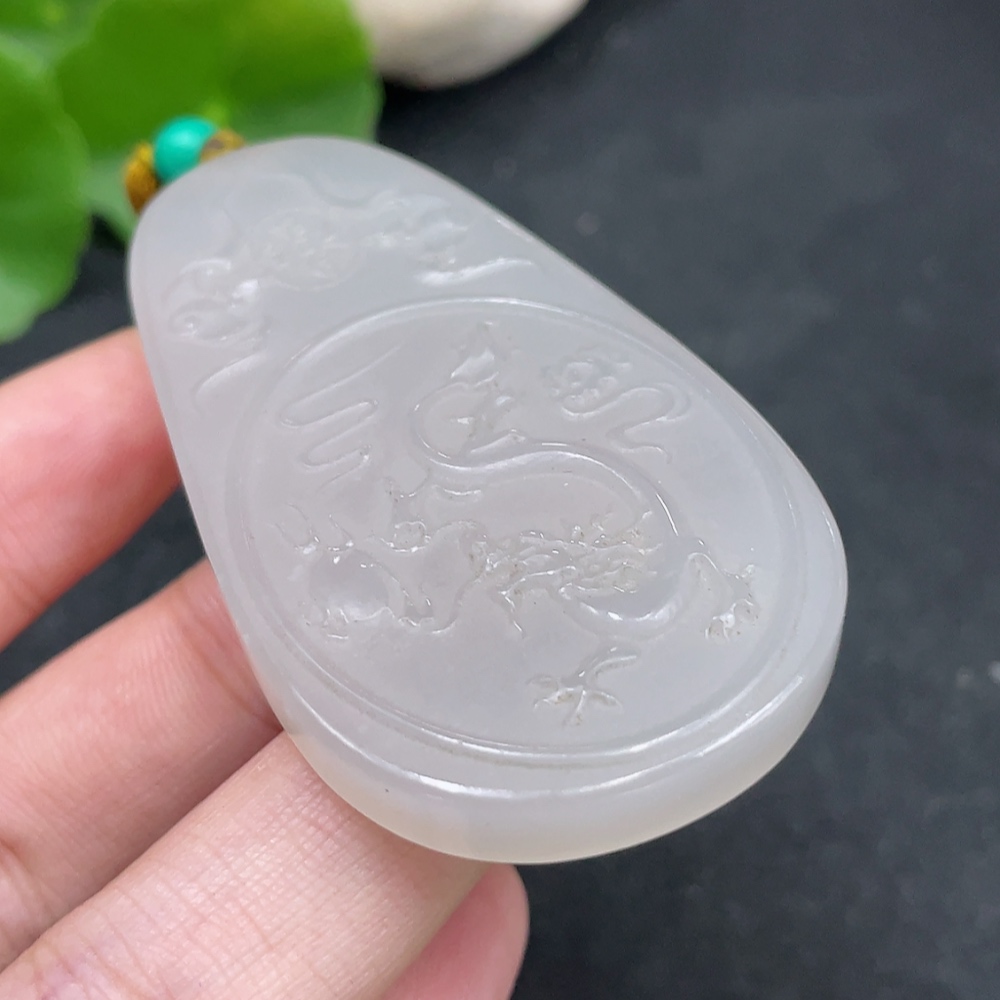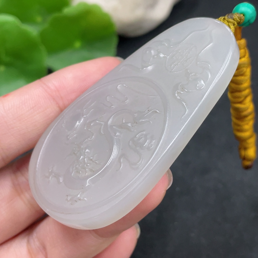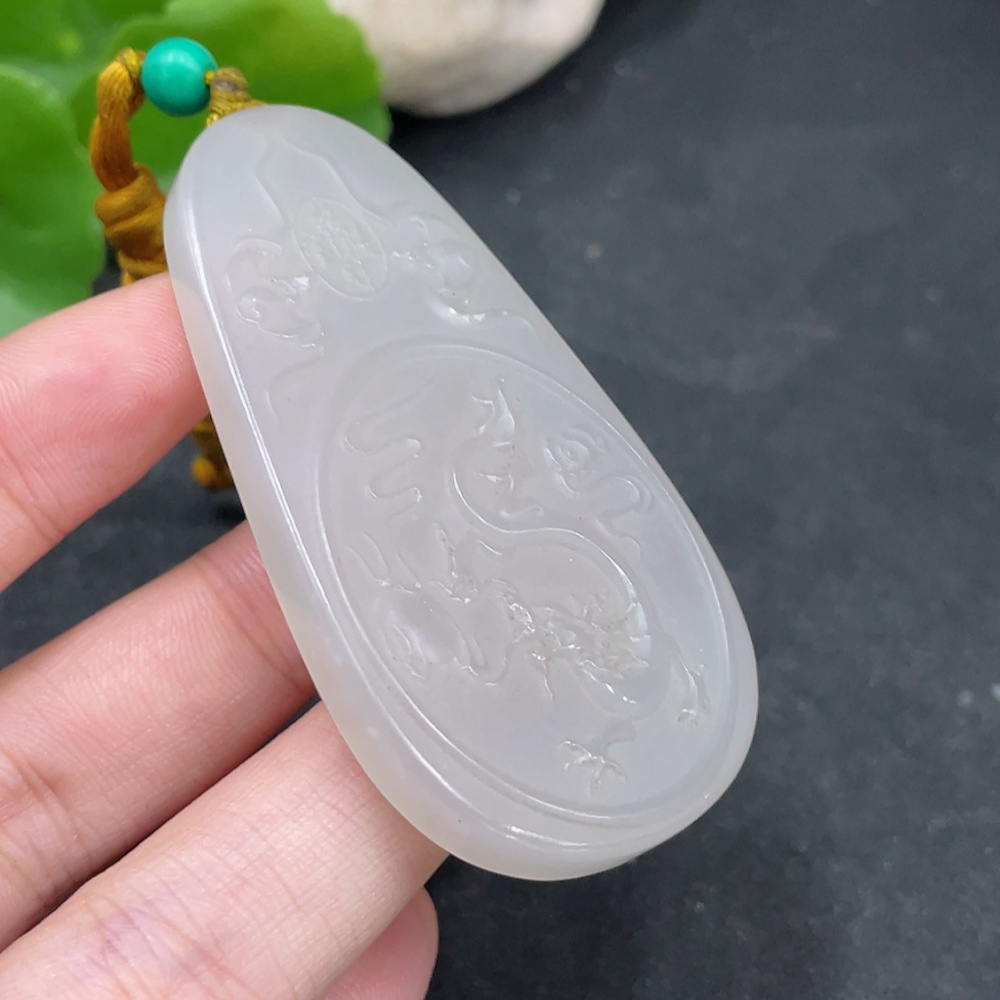 Hetian Jade Pendant, Dragon Plaque, Total Weight (including rope) 32.3g