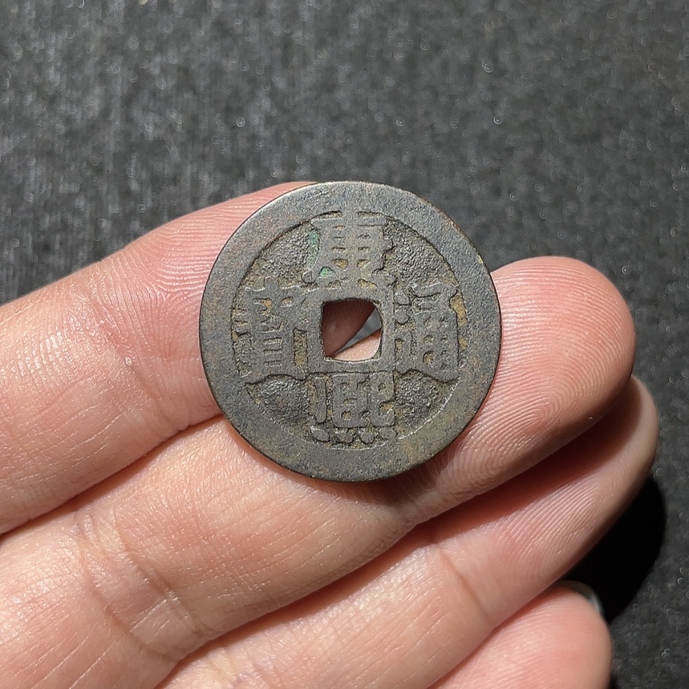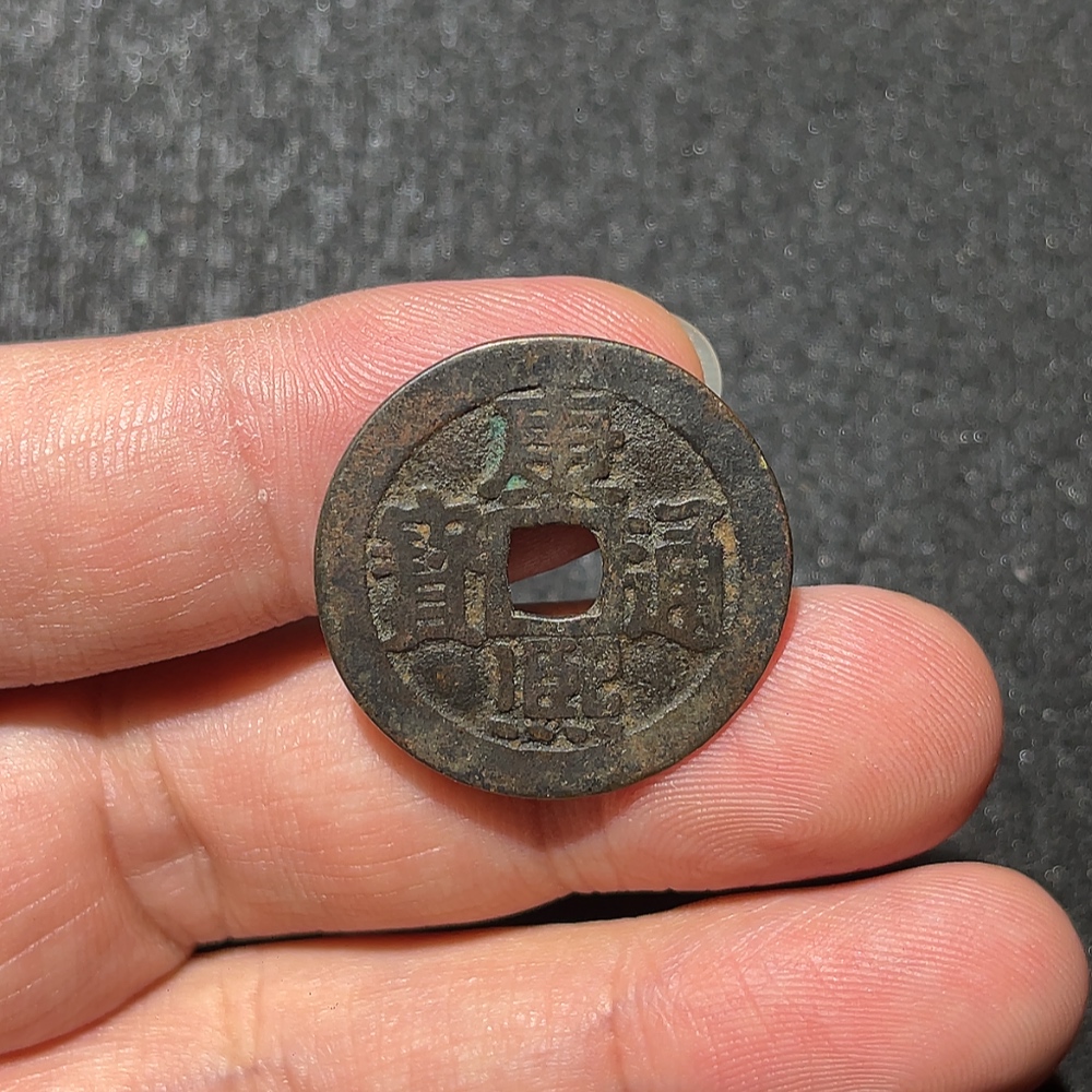 Qing Dynasty Kangxi Tongbao with Manchu and Han 'Ning' Character, No Leakage or Cracks, Unrestored Antique Coin