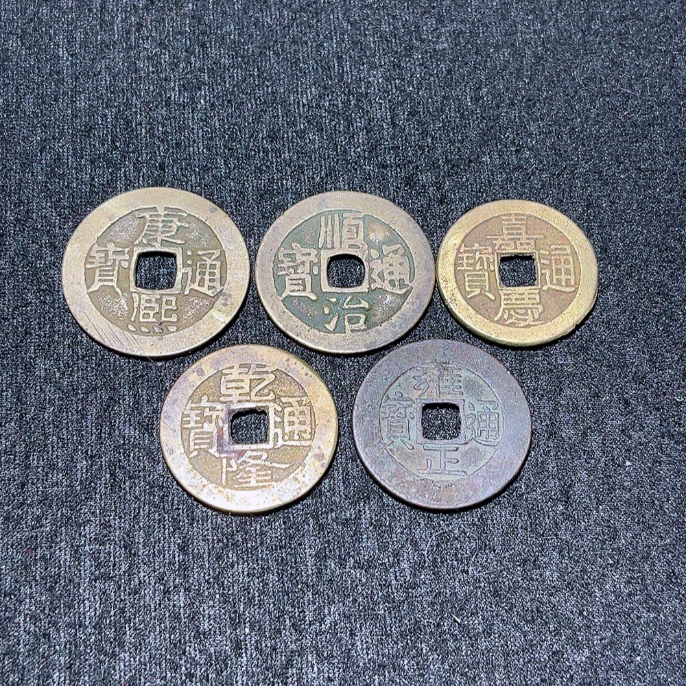 Qing Dynasty Five Emperor Coins - Exquisite Set of Ancient House Blessing Coins with Clear Inscriptions, Heritage Five Emperor Coin Collection