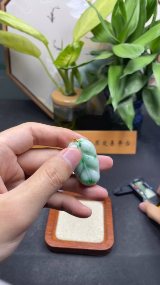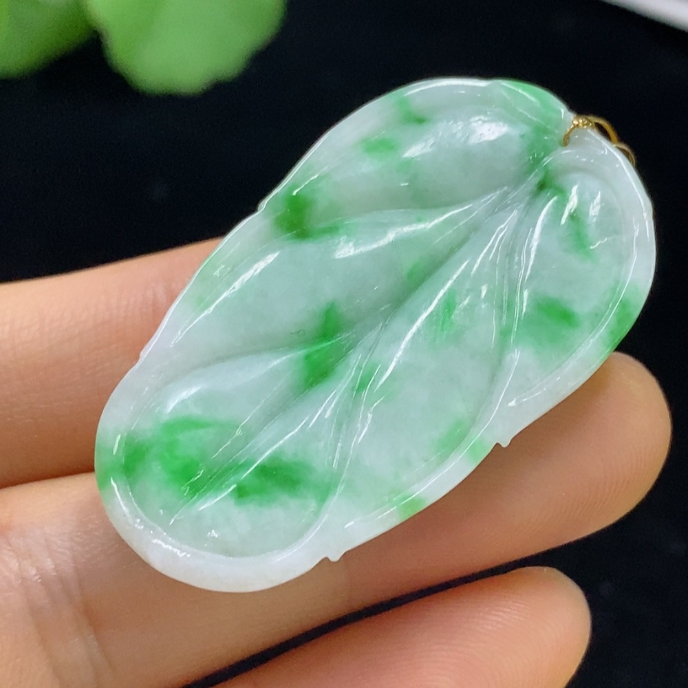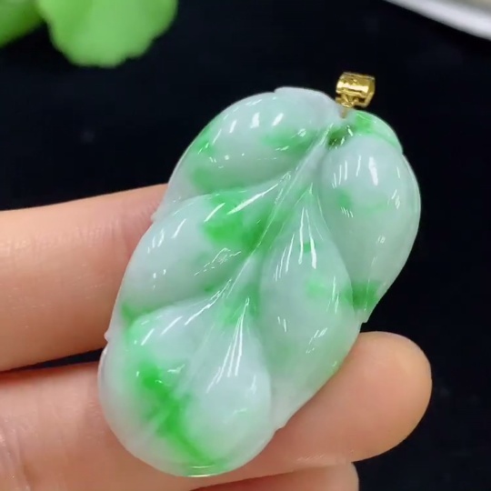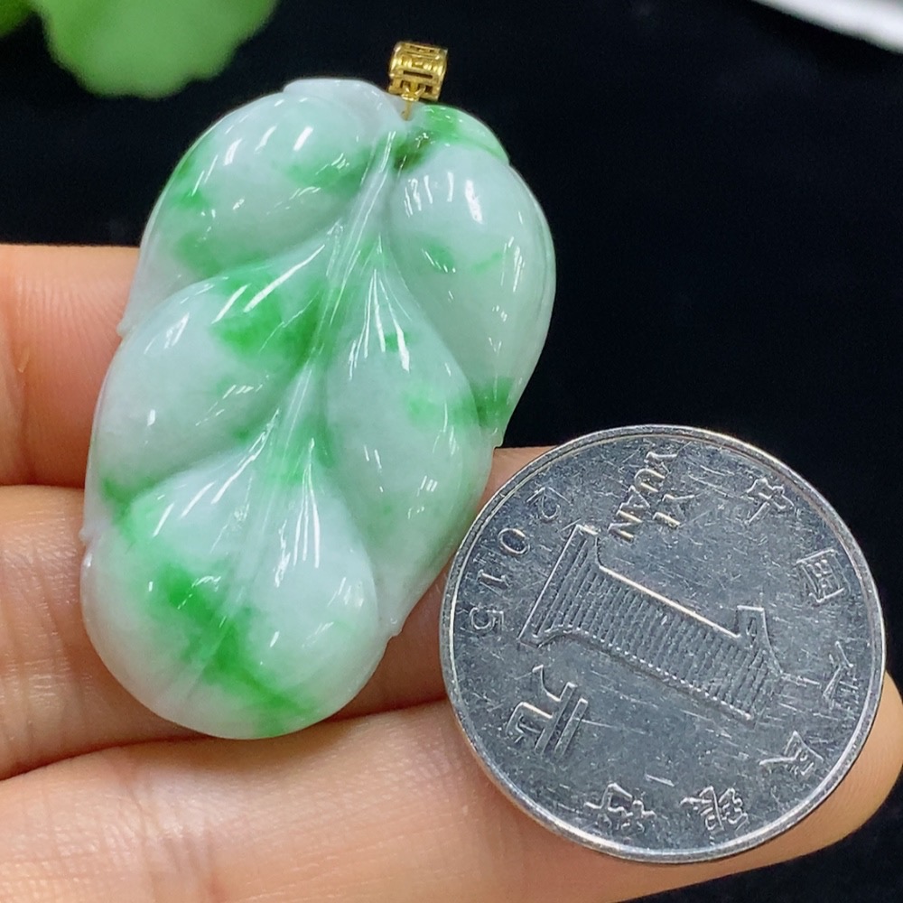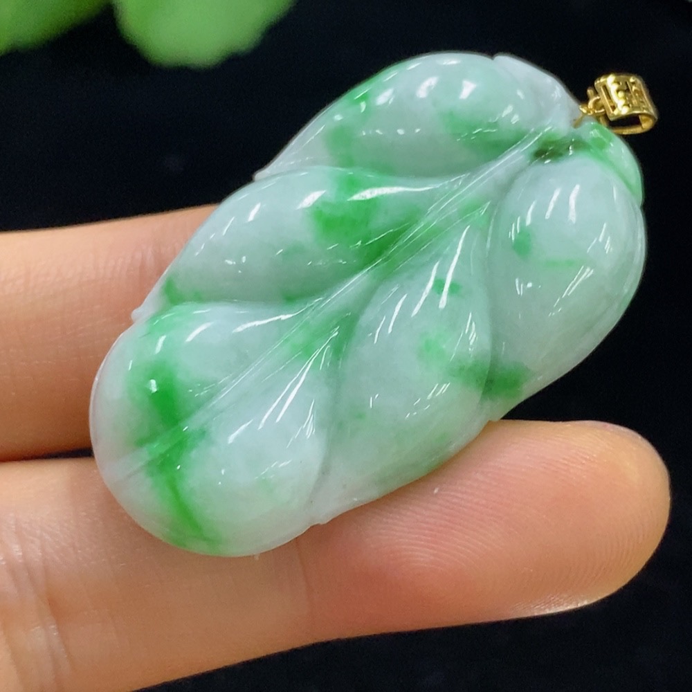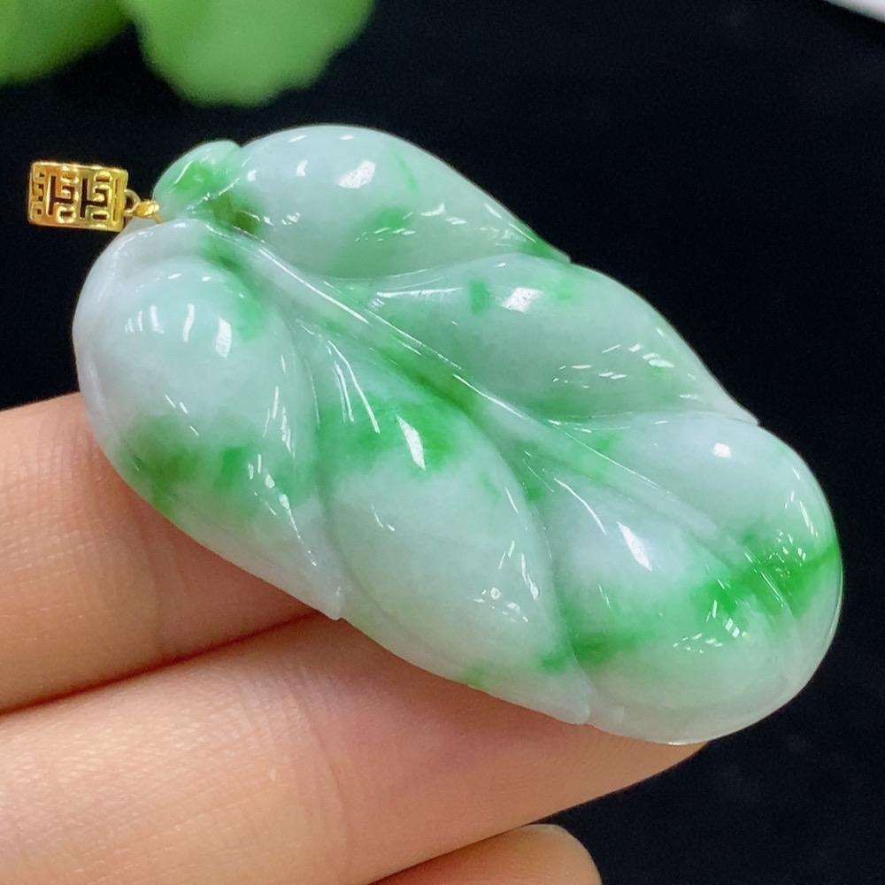 Jadeite Leaf Pendant 18k Total Weight Approx. 11.2g