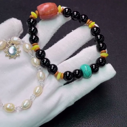 Pearl Bracelet with Non-Natural Gemstones + Red Agate Bracelet with Non-Natural Gemstones, Visible Organic Matter, Non-Gold, Total Weight Approx. 48.05g, Sell as a Lot