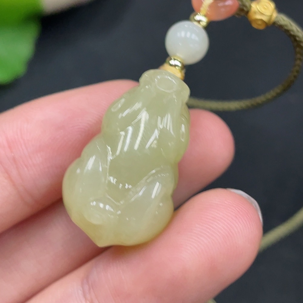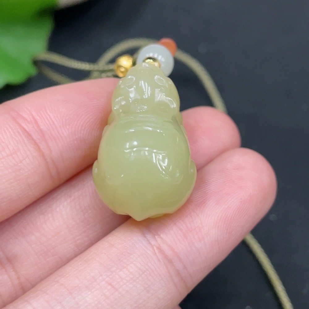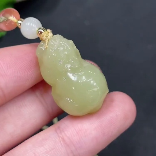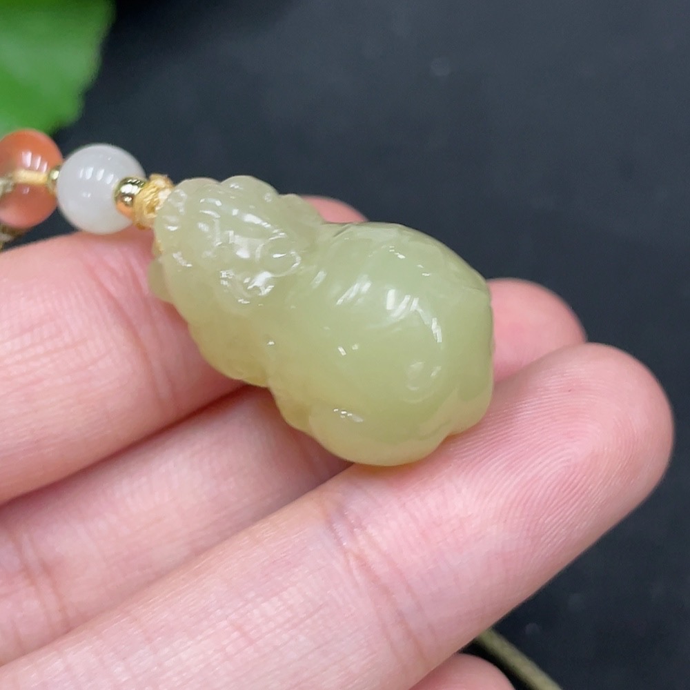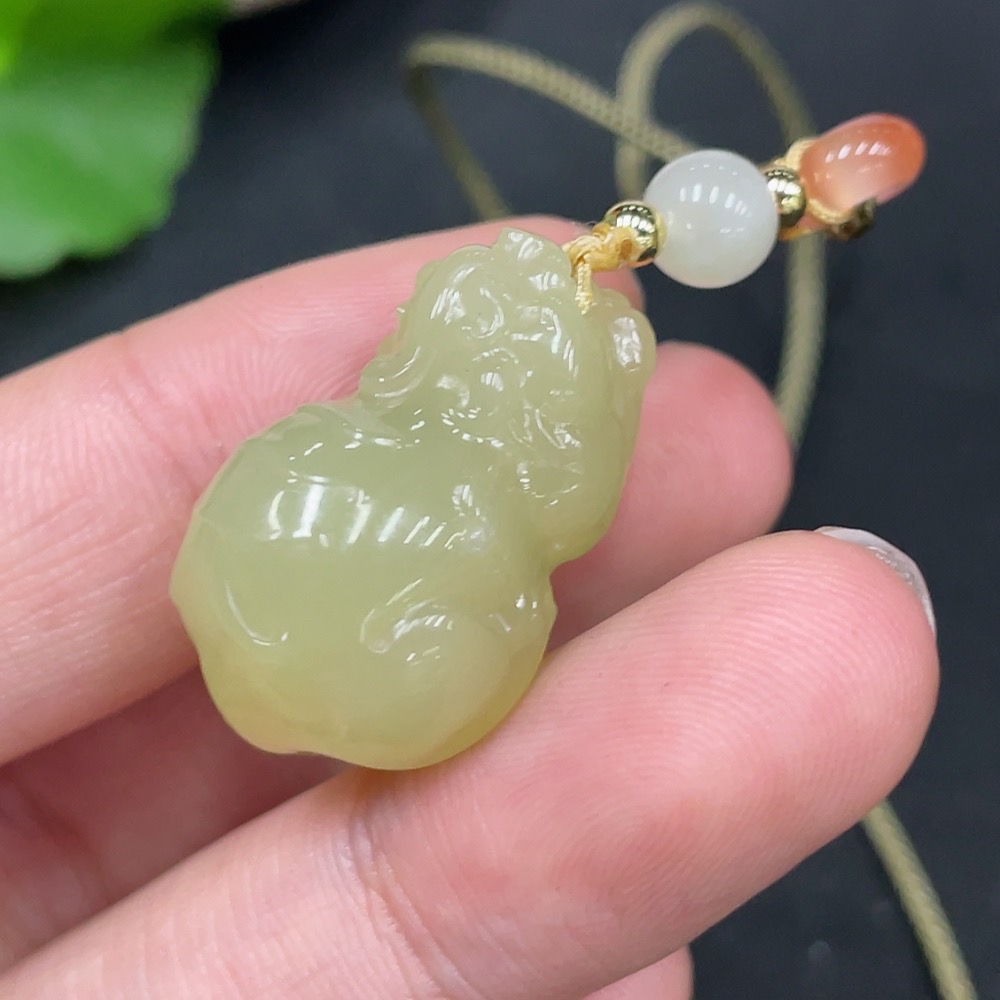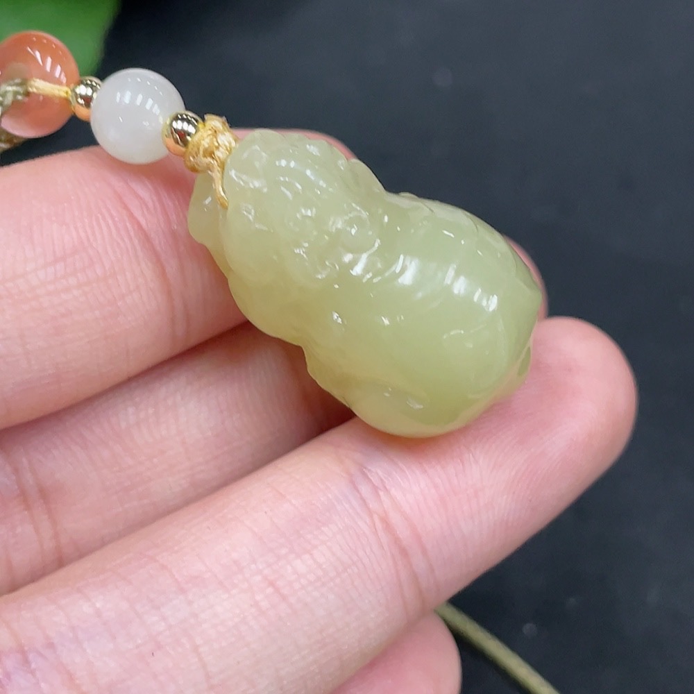 Hetian Jade Pendant Pixiu with Non-Hetian Jade Beads, Total Weight (Including Cord) Approx. 10.2g