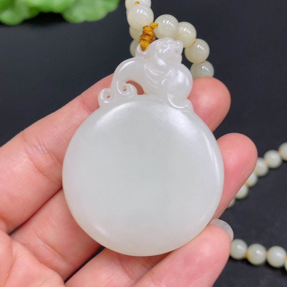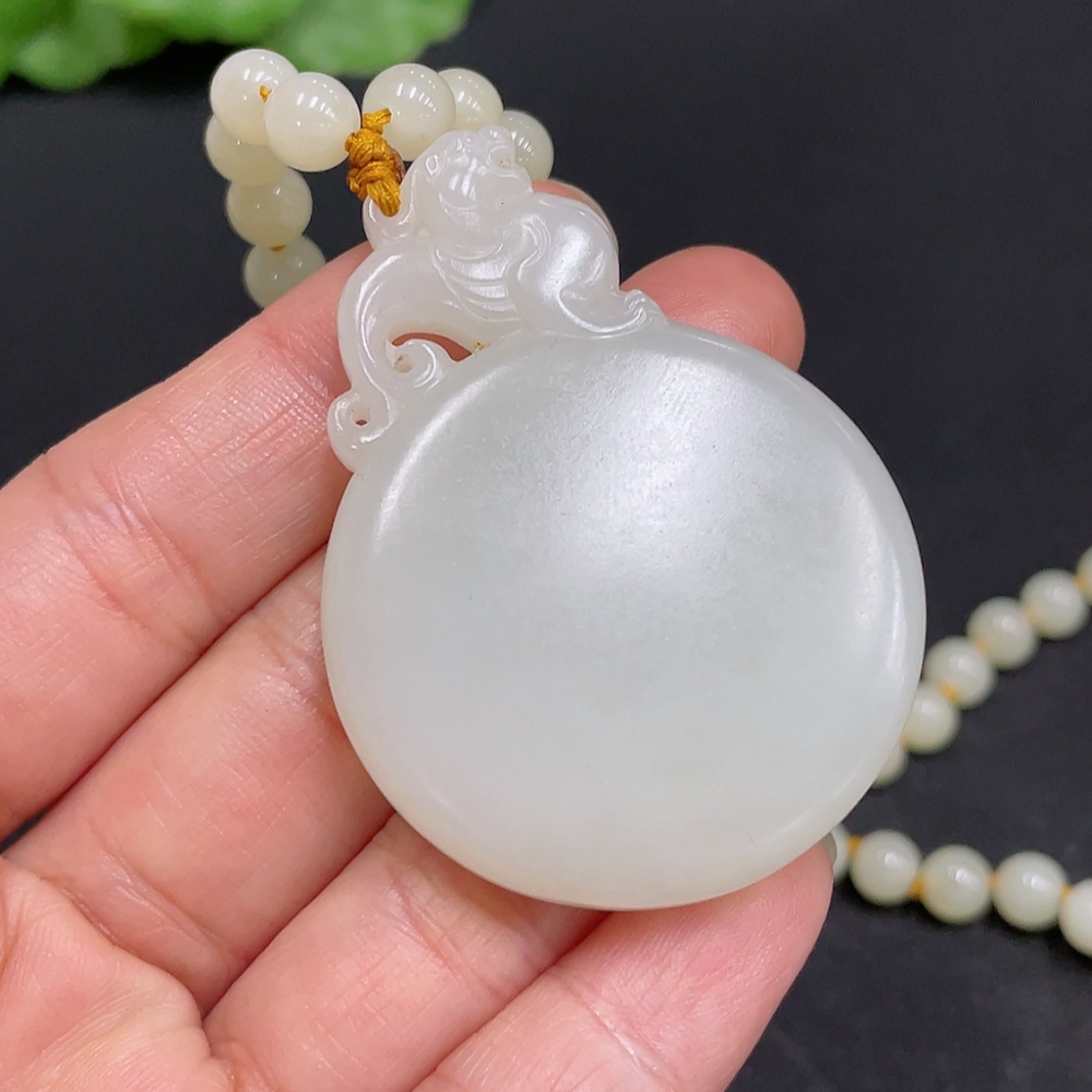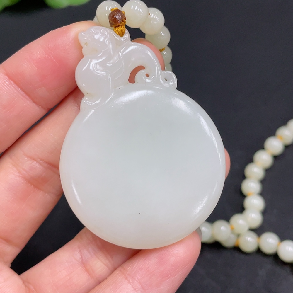 Hetian Jade Pendant Antique Plaque Total Weight Approx. (Including Chain) 60.4g