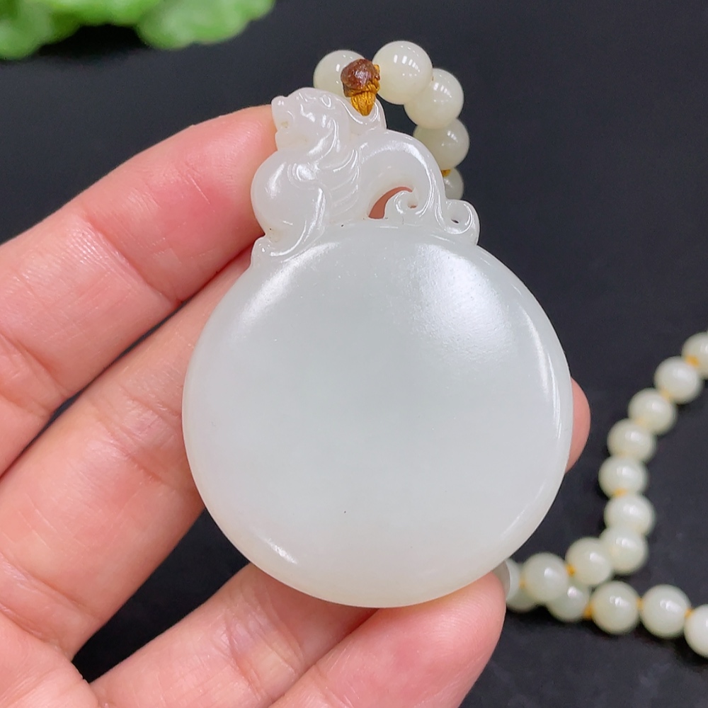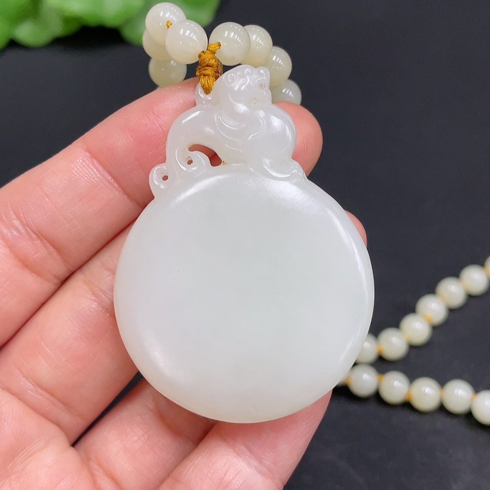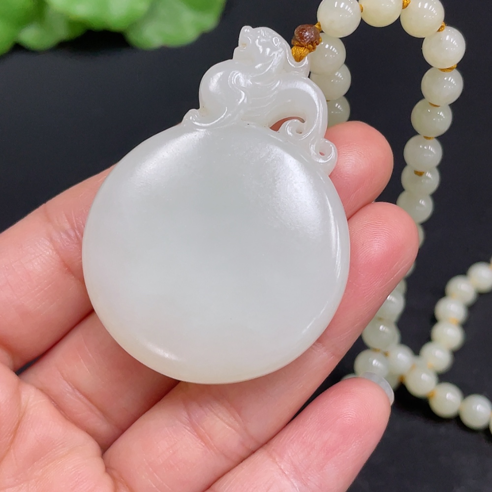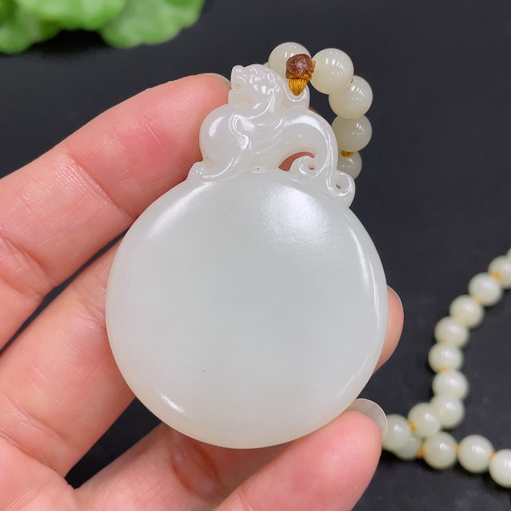 Hetian Jade Pendant Antique Plaque Total Weight Approx. (Including Chain) 60.4g