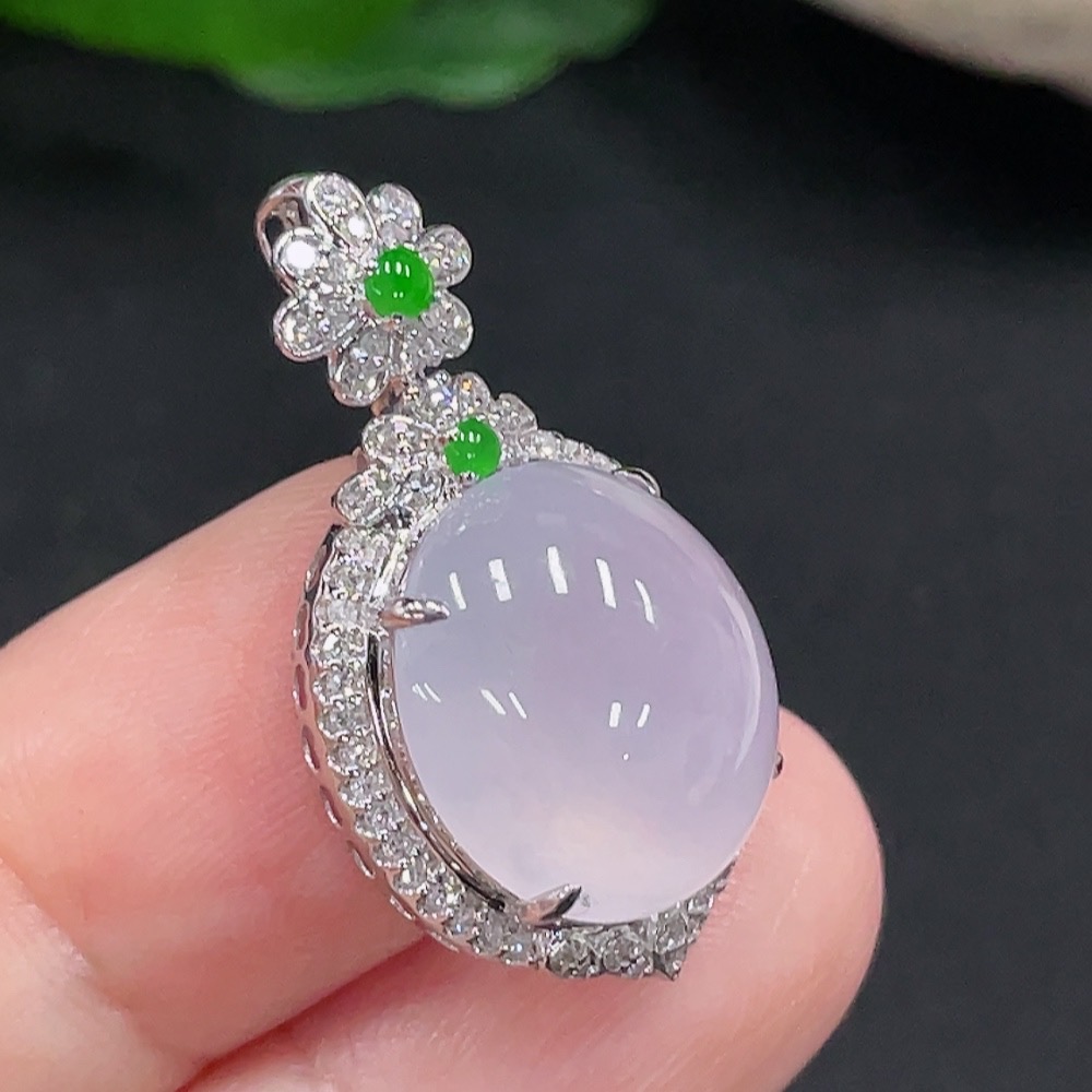 Jadeite Pendant with 18K Gold Setting, Total Weight Approx. 4.4g (Accented with Diamonds)